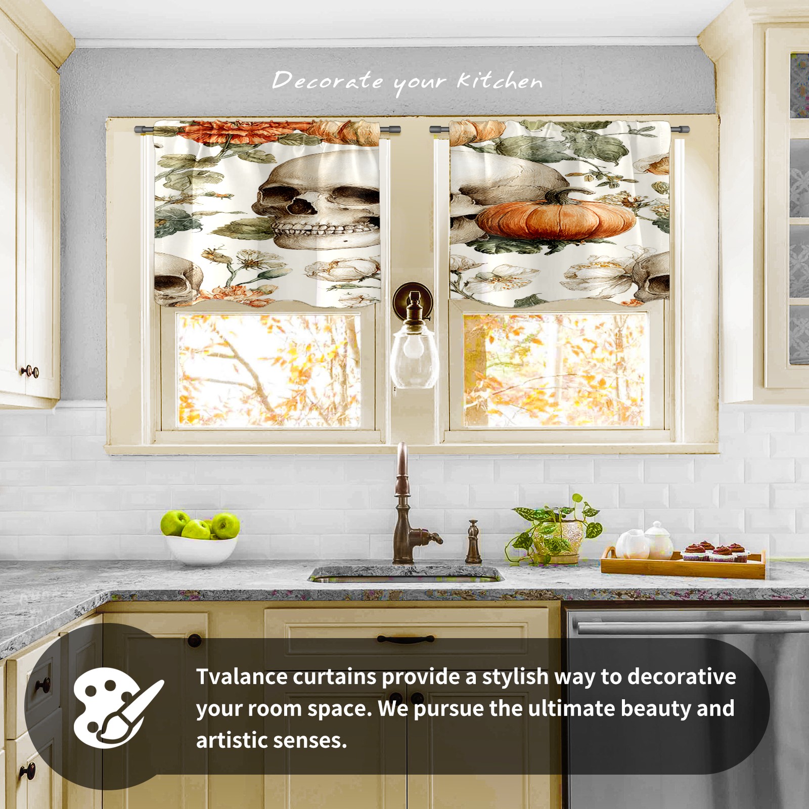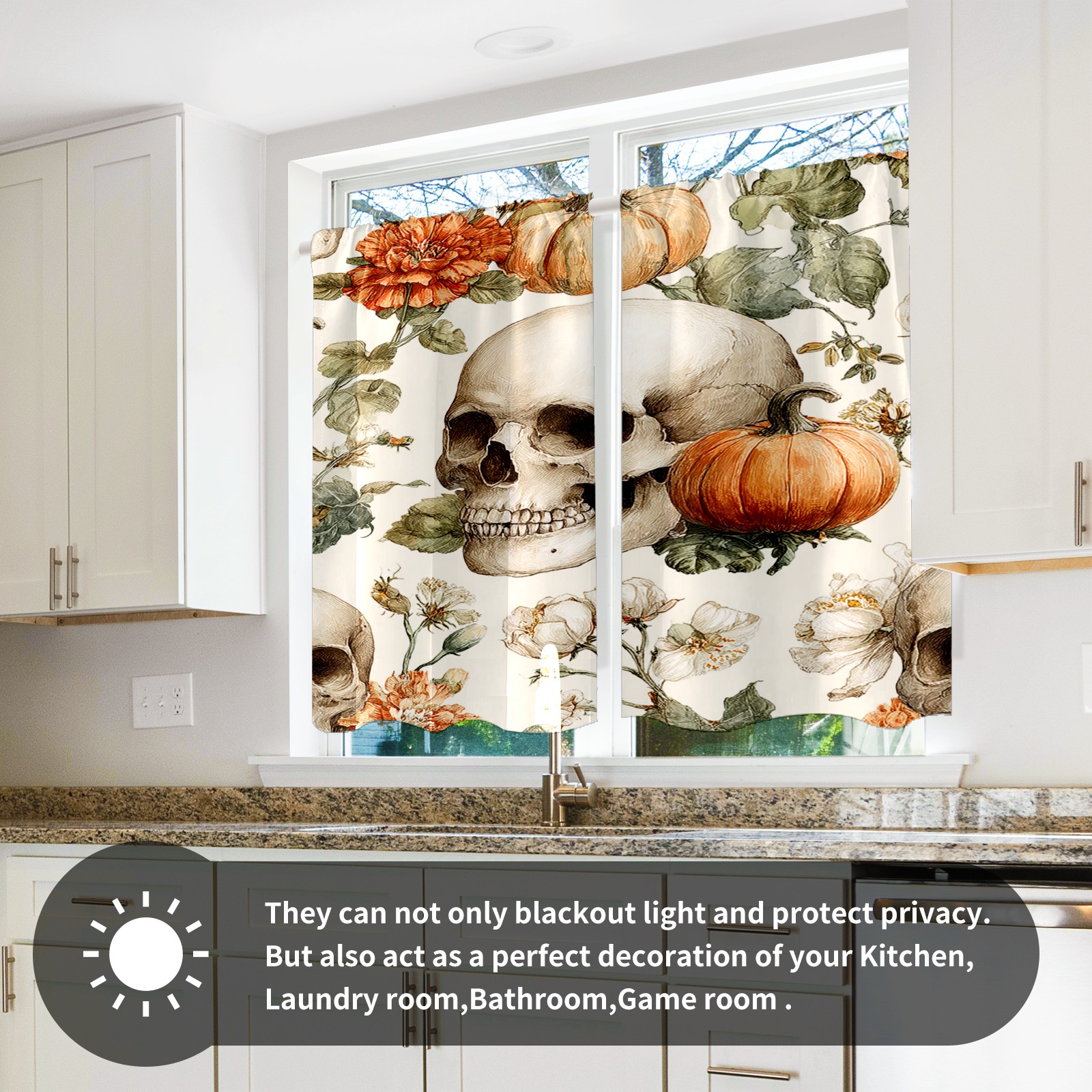 Шторы-панно для дома, декоративные драпировки для гостиной и спальни, легкие и прочные, Beige Skulls Pumpkins