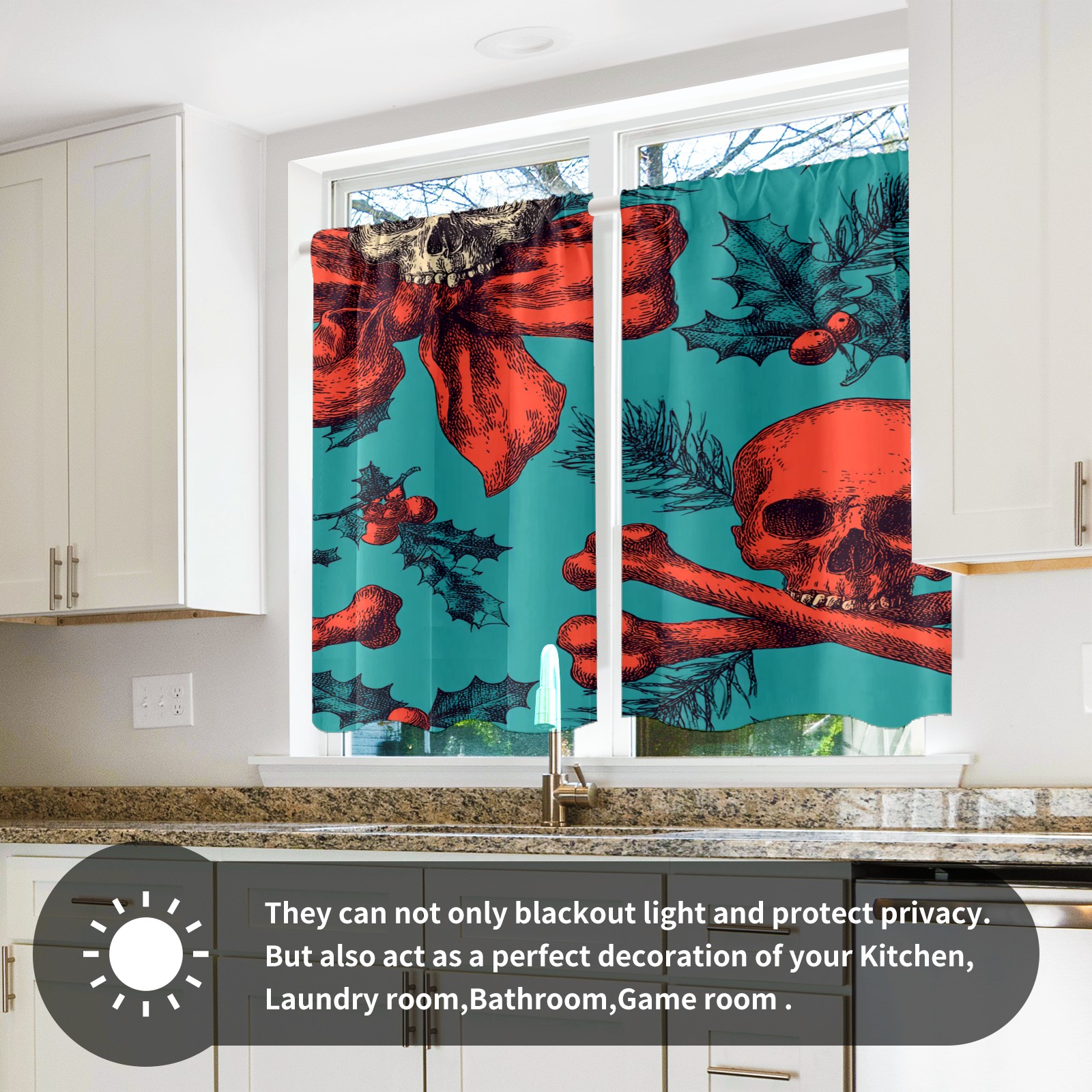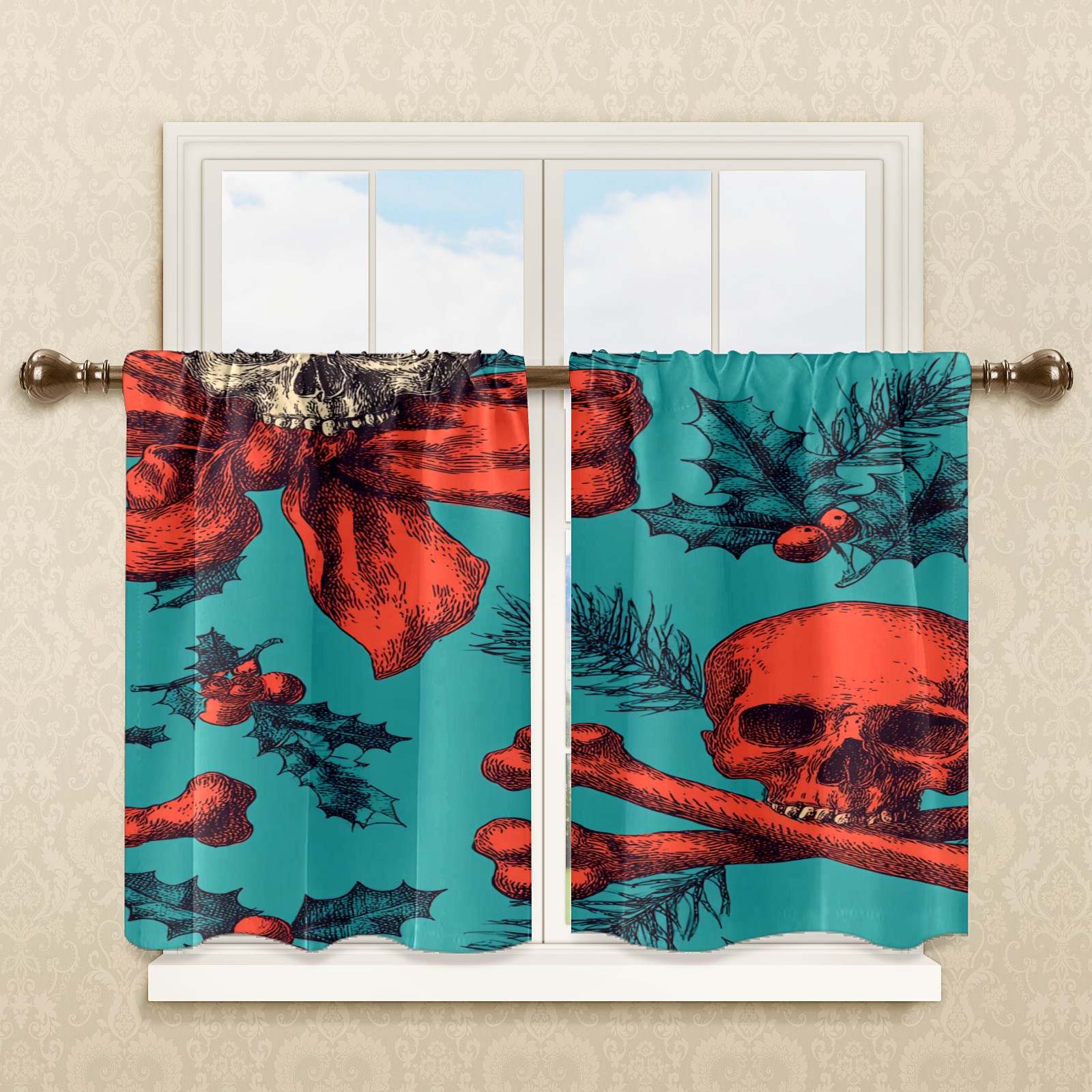 Шторы-панно для дома, декоративные драпировки для гостиной и спальни, легкие и прочные, Teal Skulls Red Bow
