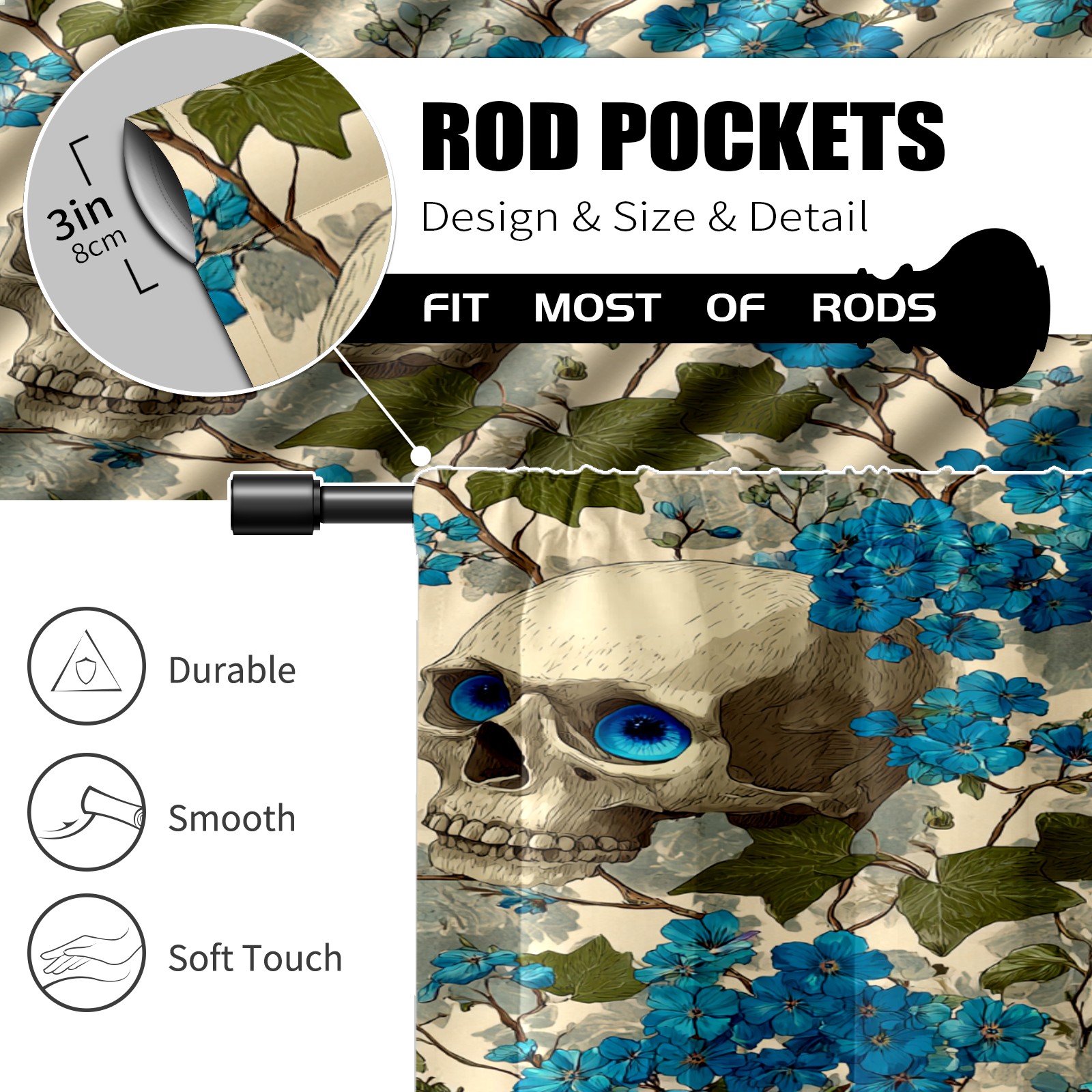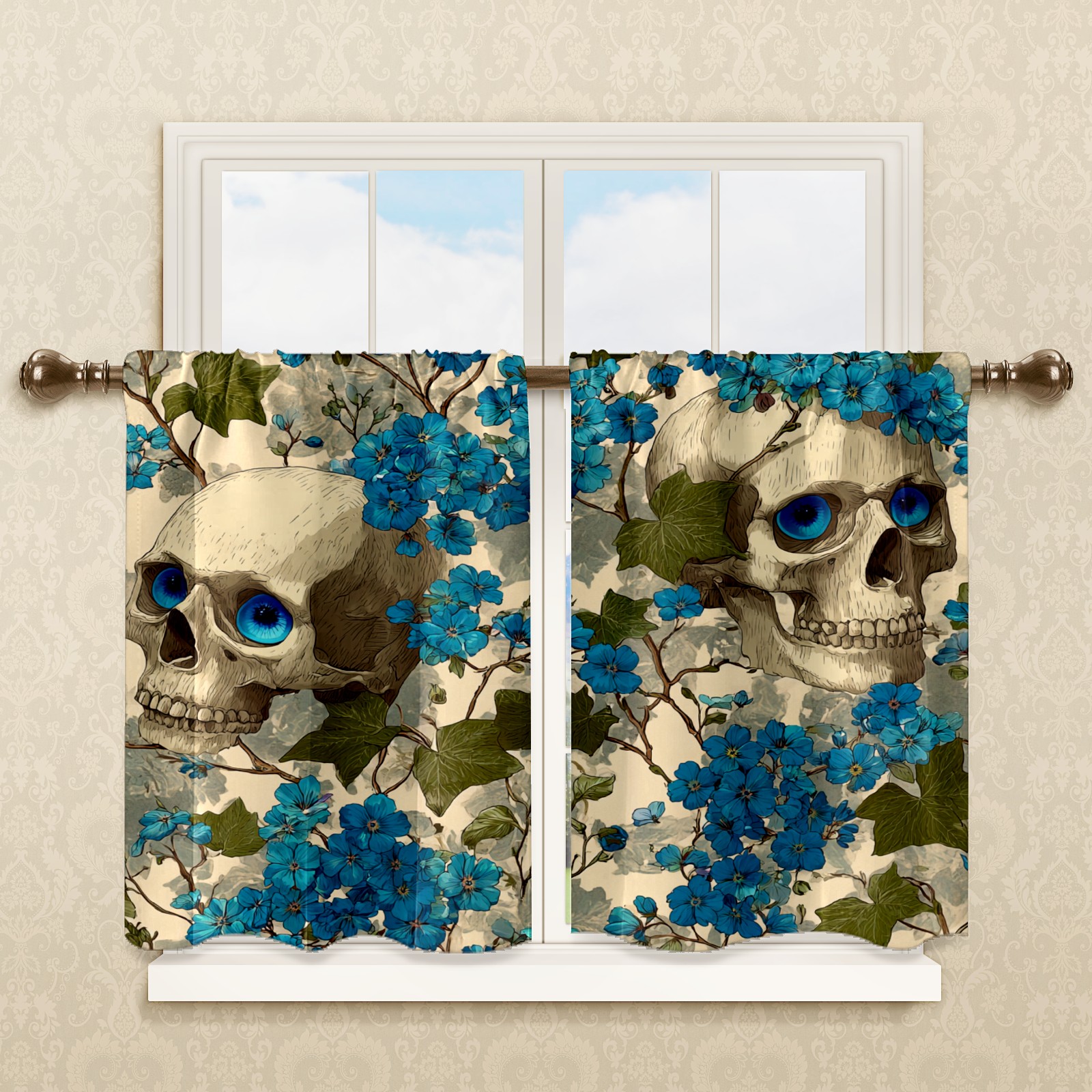 Шторы-панно для дома, декоративные драпировки для гостиной и спальни, легкие и прочные, Blue Skulls Blue Flowers