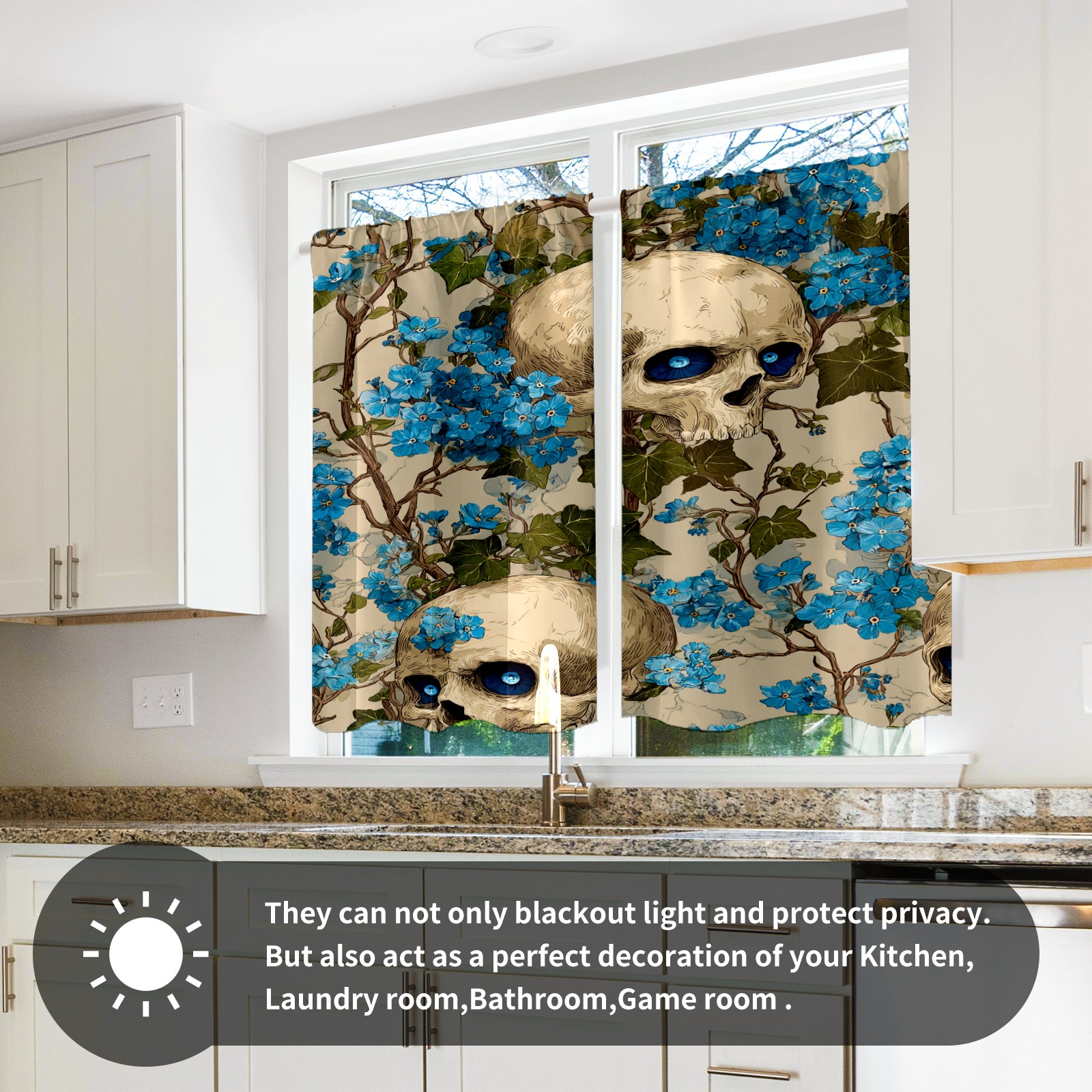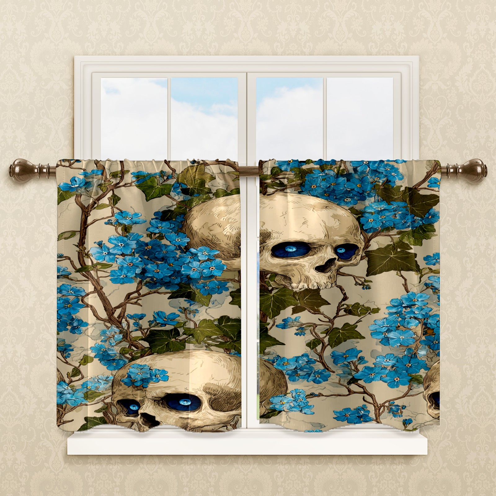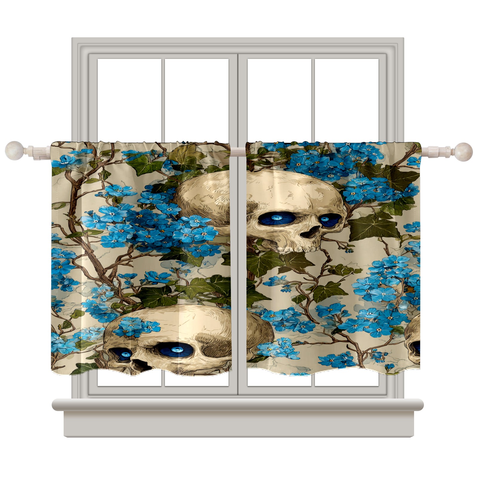 Шторы-панно для дома, декоративные драпировки для гостиной и спальни, легкие и прочные, Blue Skulls Blue Flowers Light