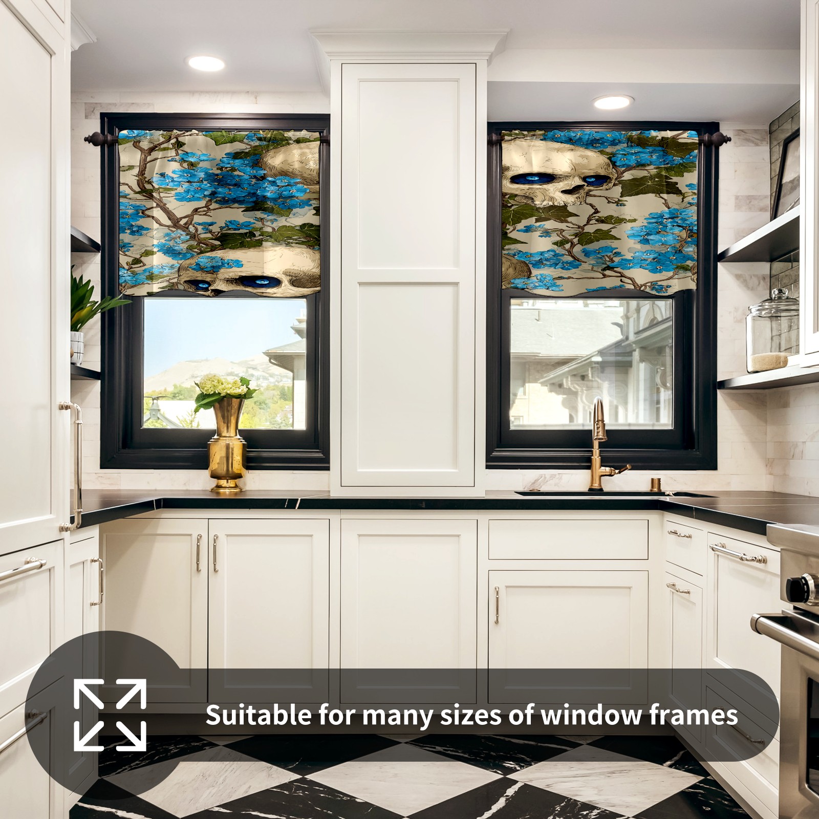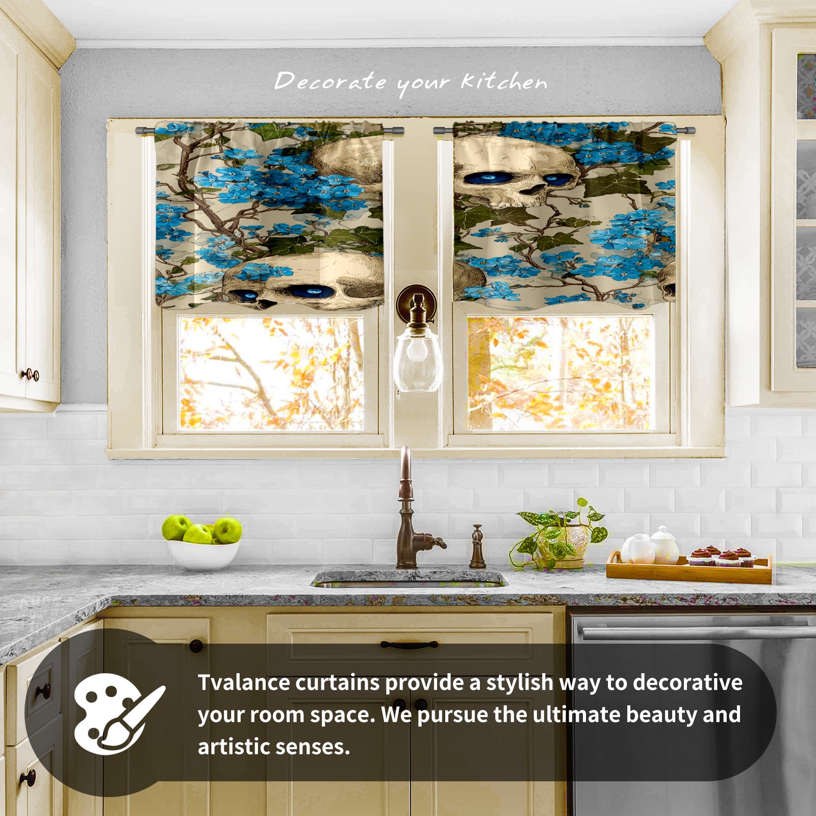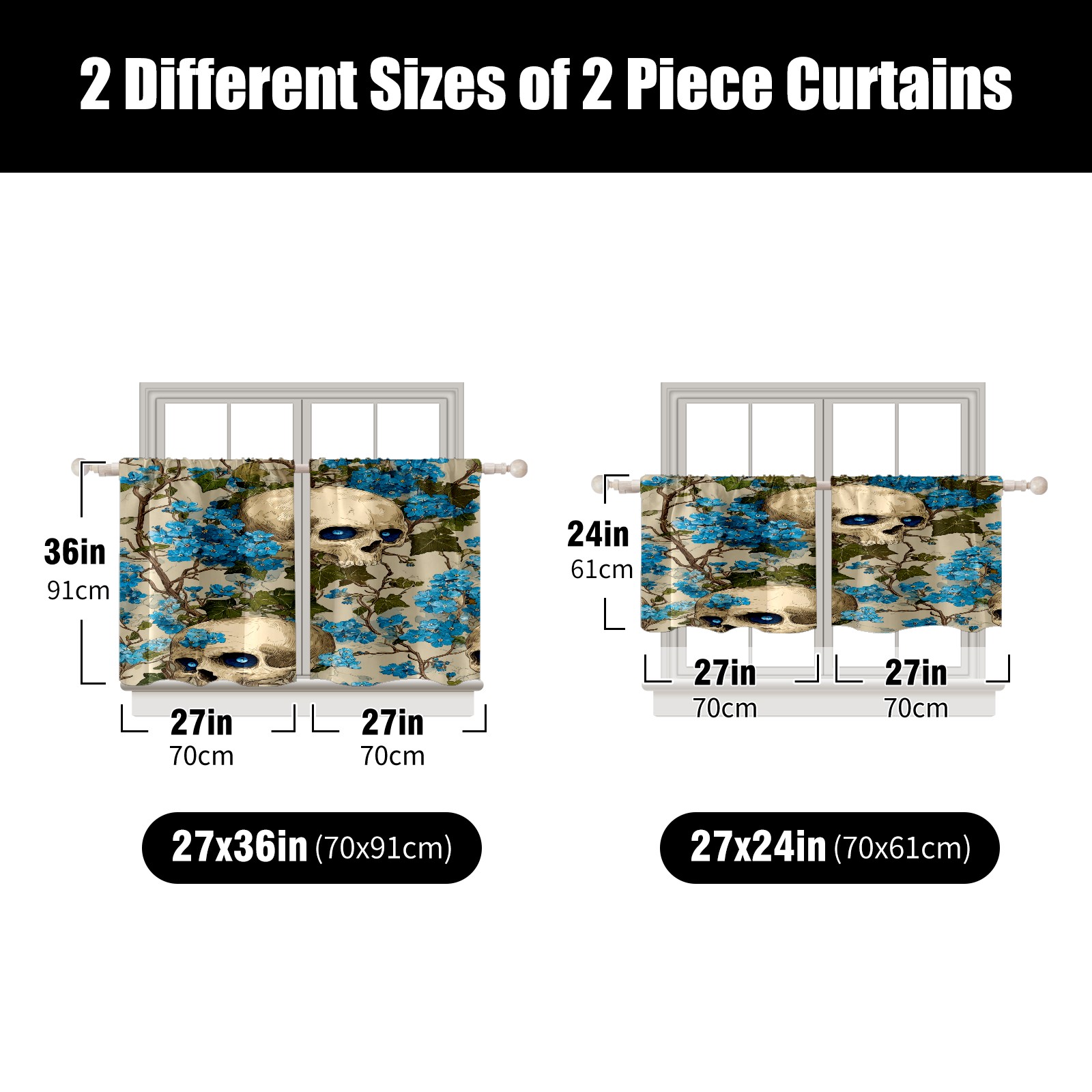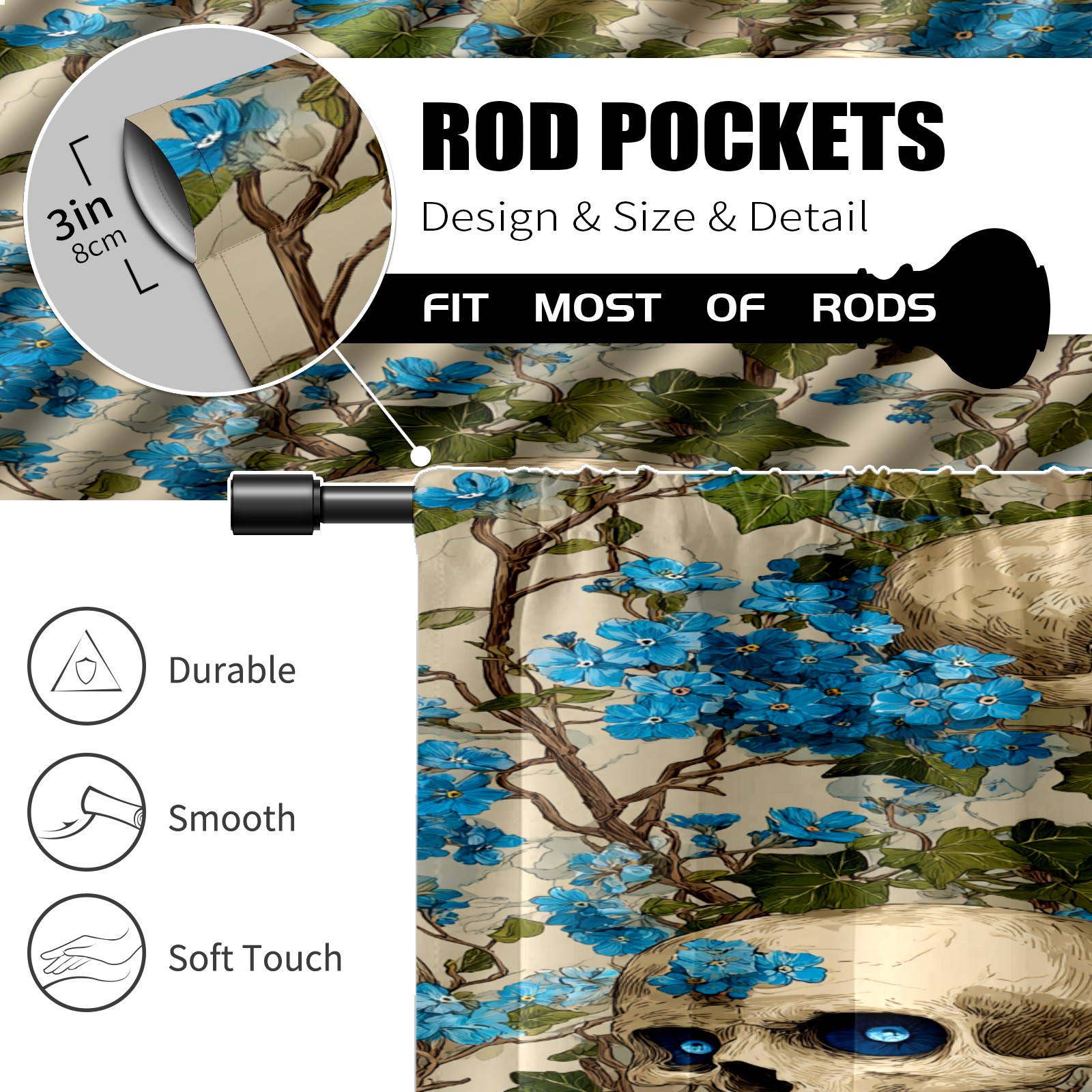 Шторы-панно для дома, декоративные драпировки для гостиной и спальни, легкие и прочные, Blue Skulls Blue Flowers Light