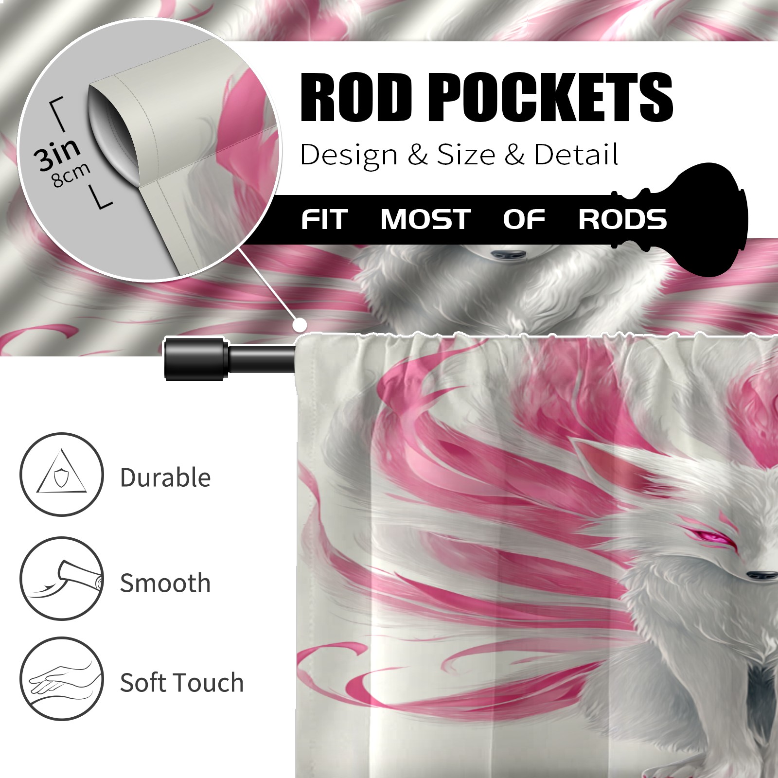 Шторы-панно для дома, декоративные драпировки для гостиной и спальни, легкие и прочные, Pink Nine - Tailed Fox