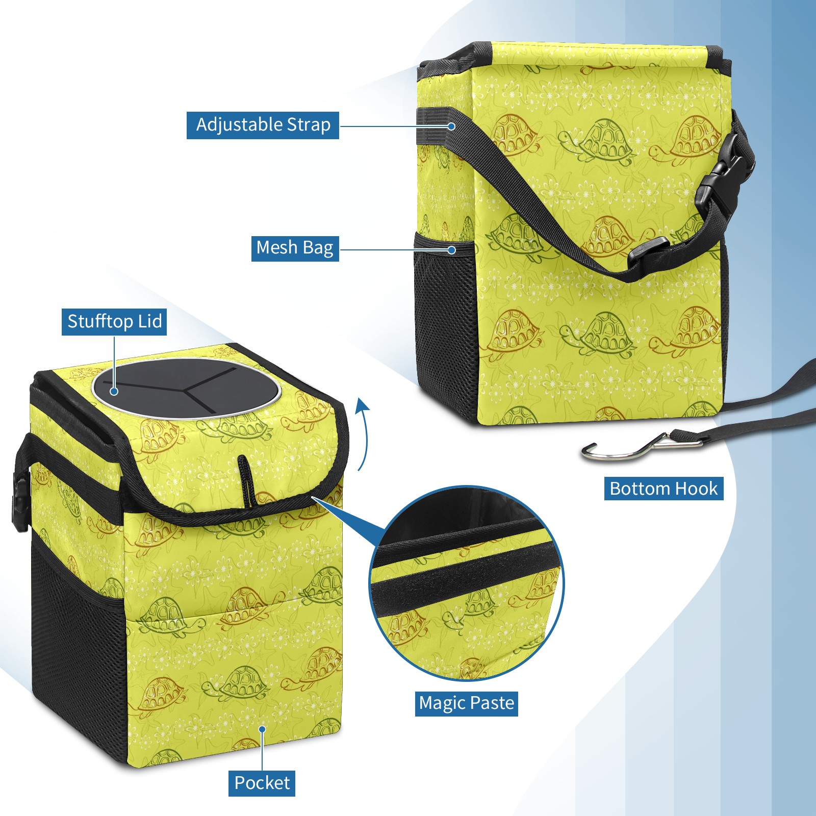 • Компактная мусорная корзина для автомобиля — это незаменимый аксессуар для поддержания порядка в салоне. Она легко монтируется на переднее или заднее сиденье, не занимает много места и позволяет удобно собирать мусор во время поездок.