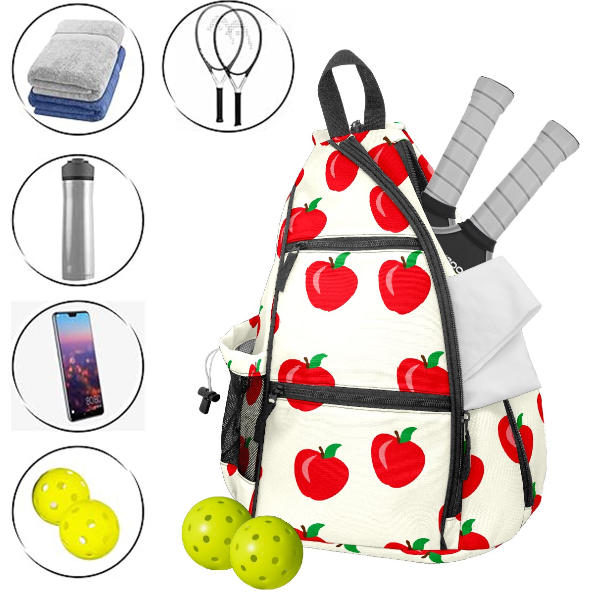 Материал: Прочная нейлоновая ткань + усиленные тканые лямки + дышащий сетчатый карман Размеры: 15×35×45 см / 6×13,8×17,7 дюймов Большая вместимость с множеством отделений – в одной сумке поместится все ваше снаряжение для пикбола: ракетки, мячи, защитная экипировка и бутылка с водой! Разработана для комфортной переноски – утолщенная мягкая спинка в сочетании с регулируемыми дышащими сетчатыми плечевыми ремнями эффективно распределяет вес, снимая боль в плечах и спине, а также мышечное напряжение. Ткань сумки гладкая и приятная на ощупь, деликатная и мягкая, что делает ежедневное использование более комфортным. Гибкие варианты переноски: плечевые лямки имеют съемную молнию, позволяющую свободно регулировать стиль ношения. Идеально подходит в качестве портативной сумки через плечо для ежедневных поездок на работу, отдыха на природе и спортивных мероприятий, а также в качестве практичного и продуманного подарка для друзей, семьи и других игроков в пикбол.