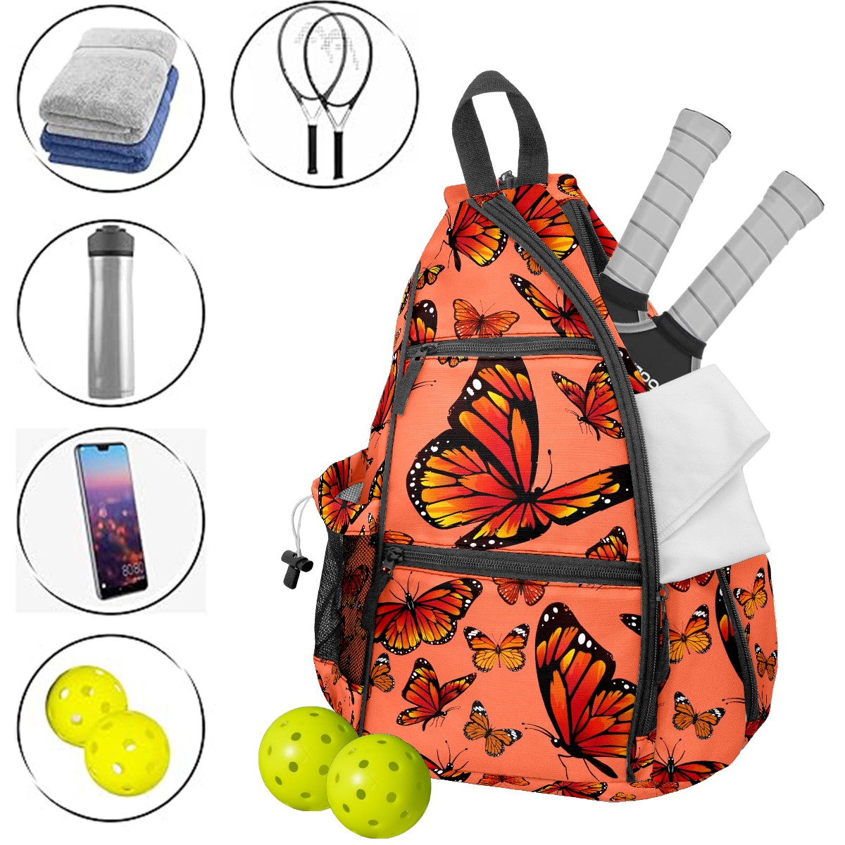 • ✅ Прочный материал Изготовлена из нейлоновой ткани + плетеного ремня + сетчатой корзины: гладкая на ощупь, приятная текстура, долговечная в использовании. ✅ Большой объем + много карманов Размер 153545см/6x13.8x17.7 дюймов, продуманная конструкция с несколькими карманами позволяет удобно разложить аксессуары для пикебола, не беспокоясь о нехватке места. ✅ Максимальный комфорт ношения Подушенное спинное отделение + регулируемые сетчатые плечевые ремни эффективно предотвращают растяжение мышц и боль в плечах, даже при длительном ношении. ✅ Универсальное использование Ремни выполнены по технологии съемного молния — регулируемый способ ношения. Подходит как повседневная поясная сумка для поездок, прогулок и других мероприятий, также является идеальным подарком для друзей и близких!