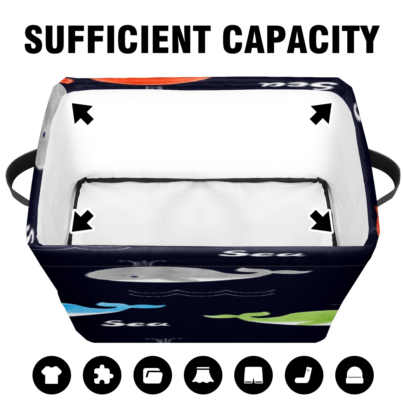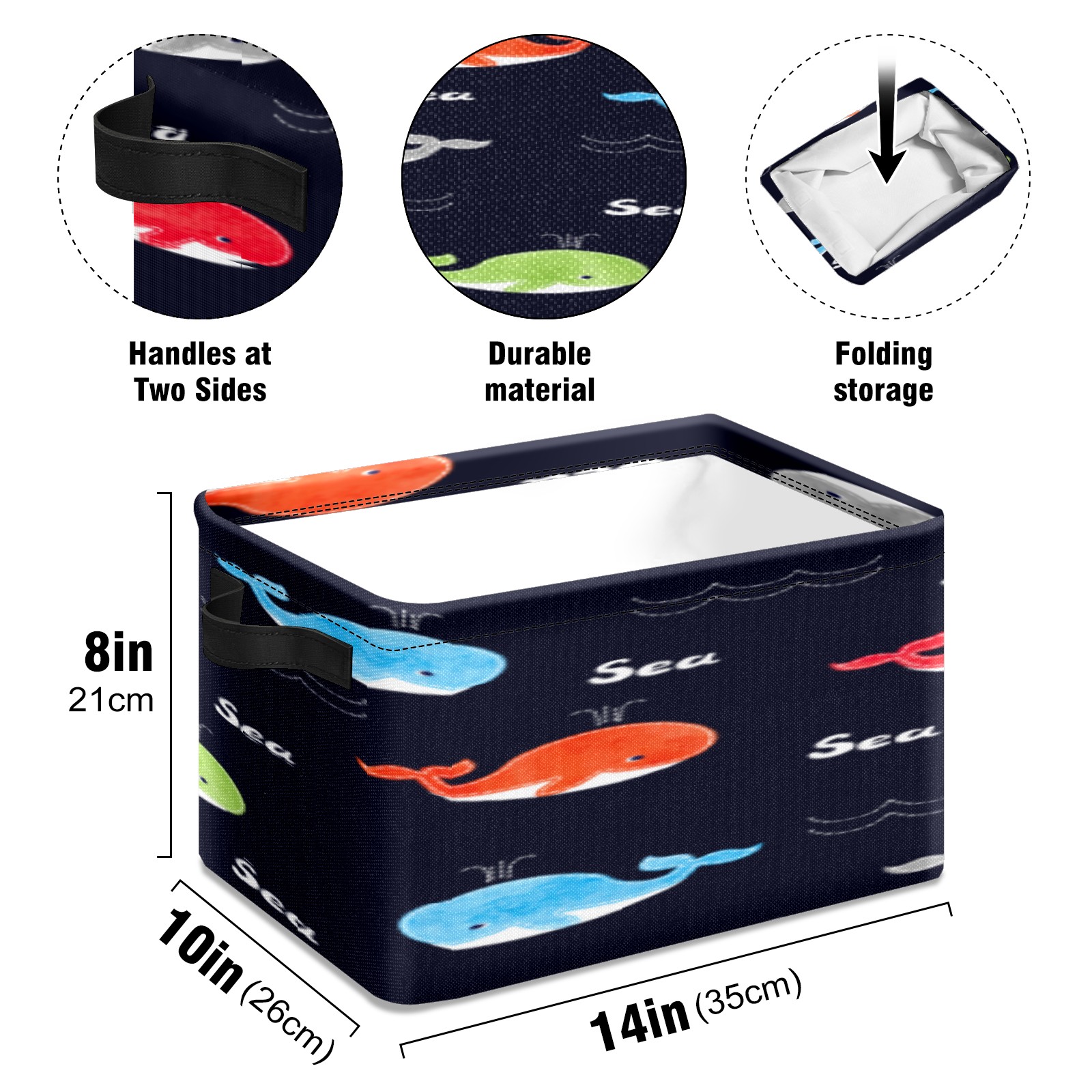 【Материал】Оксфордская ткань из полиэстера 600D; ручки изготовлены из полиэстера. 【Описание материала】Внешняя ткань: Оксфордская ткань полотняного переплетения высокой плотности 300D (ПВХ); Подкладка: белая ткань 750D; Ручки: черная композитная ткань 290T. 【Размер】26x35x21 см (10x14x8 дюймов) 【Описание продукта】Эта корзина для хранения с ручками с обеих сторон предлагает достаточно места для хранения предметов разных размеров, что делает ее подходящей для различных случаев, таких как дом, офис и школа. Ручки с обеих сторон закреплены гвоздями для долговечности. Прочный металлический каркас окружает корзину, поддерживая ее форму. Складная корзина для хранения: Наши корзины для хранения легко складываются, когда не используются. Эти ящики для хранения изготовлены из легко моющейся оксфордской ткани и при необходимости могут быть аккуратно протерты мягким мылом и водой. Из-за внутреннего металлического каркаса и жесткого дна машинная стирка не рекомендуется. 【Подходящие сценарии использования】Дом, офис и школа 【Инструкции по стирке】Рекомендуется ручная стирка; избегайте длительного воздействия прямых солнечных лучей.