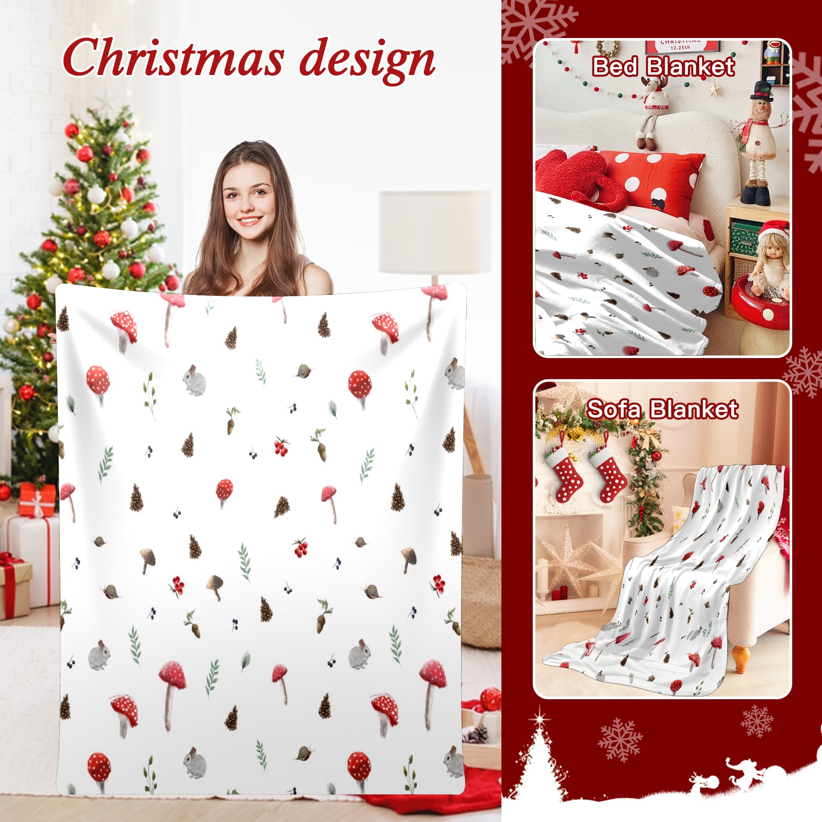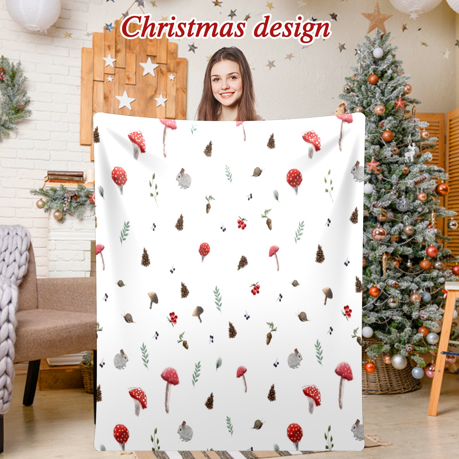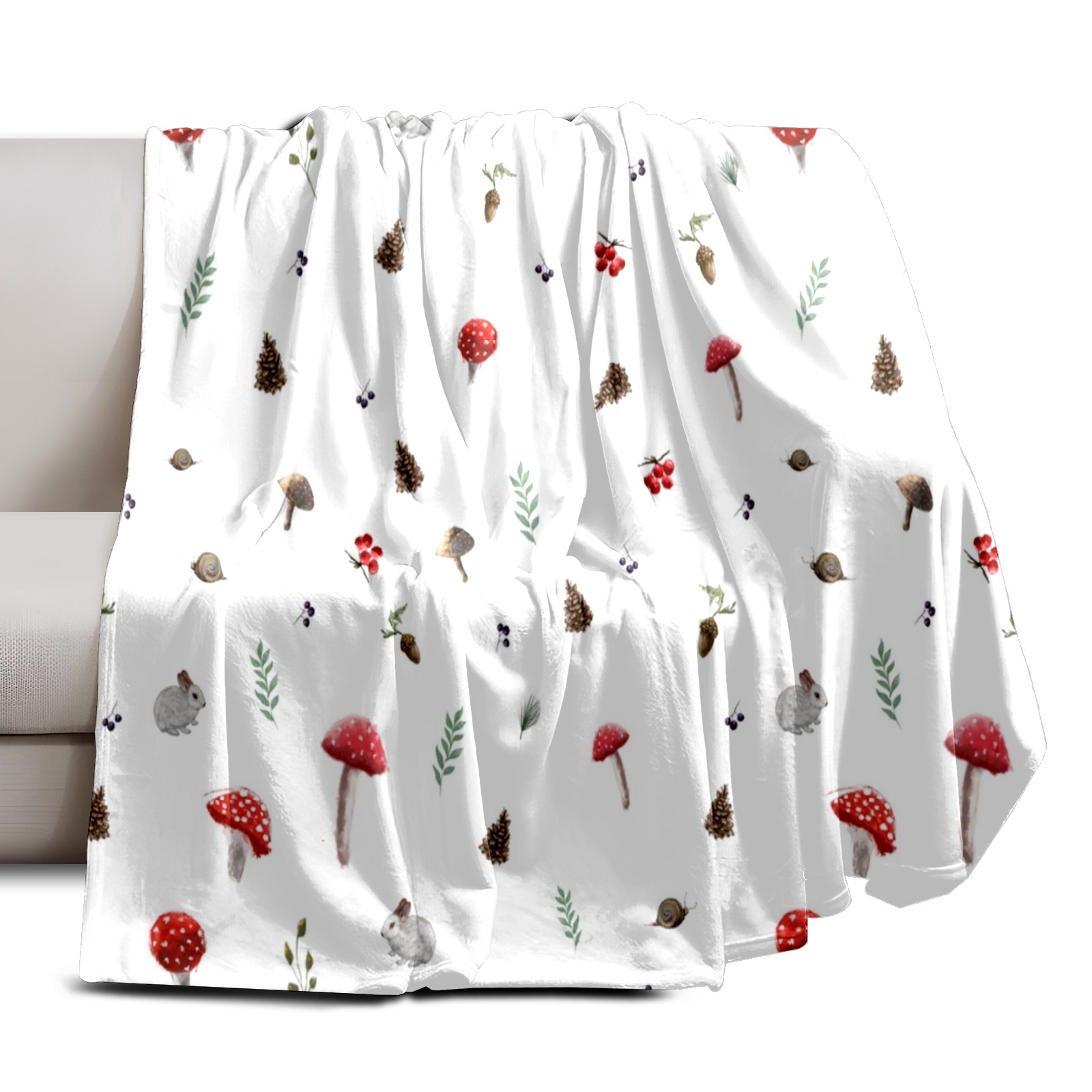 Премиальная фланелевая одеяло White Mushroom Animals