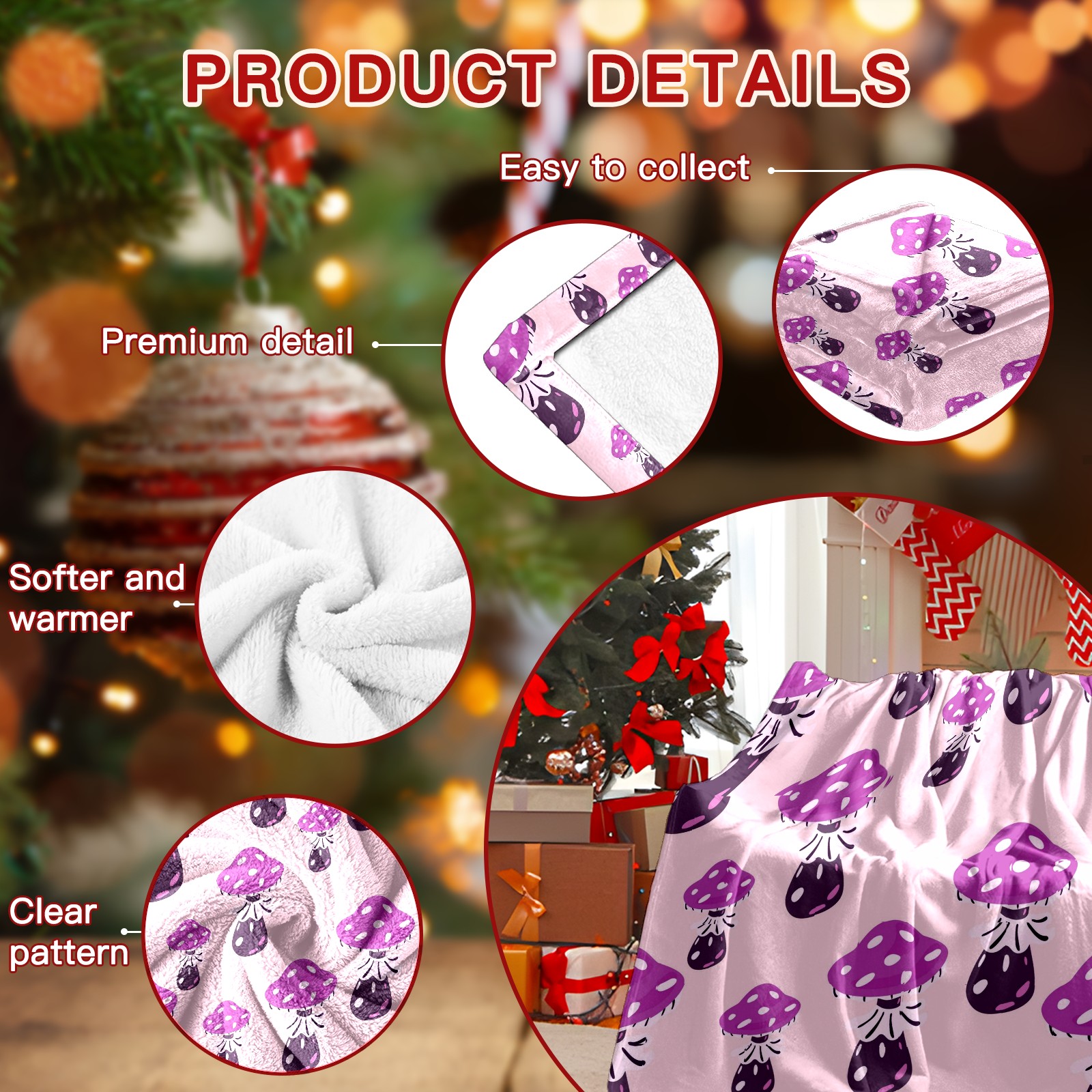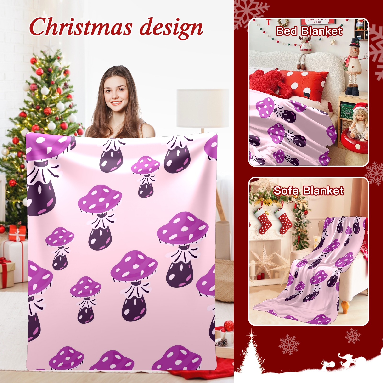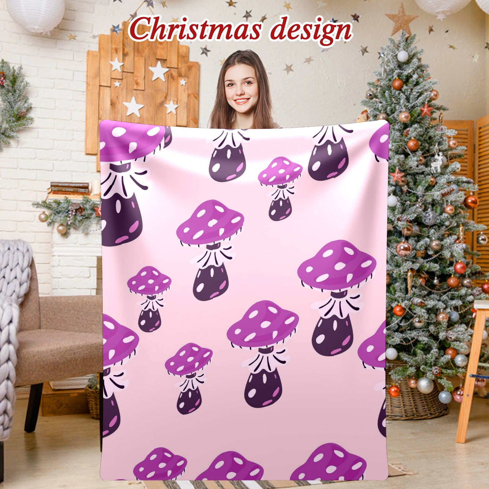 Премиальная фланелевая одеяло Purple Mushrooms