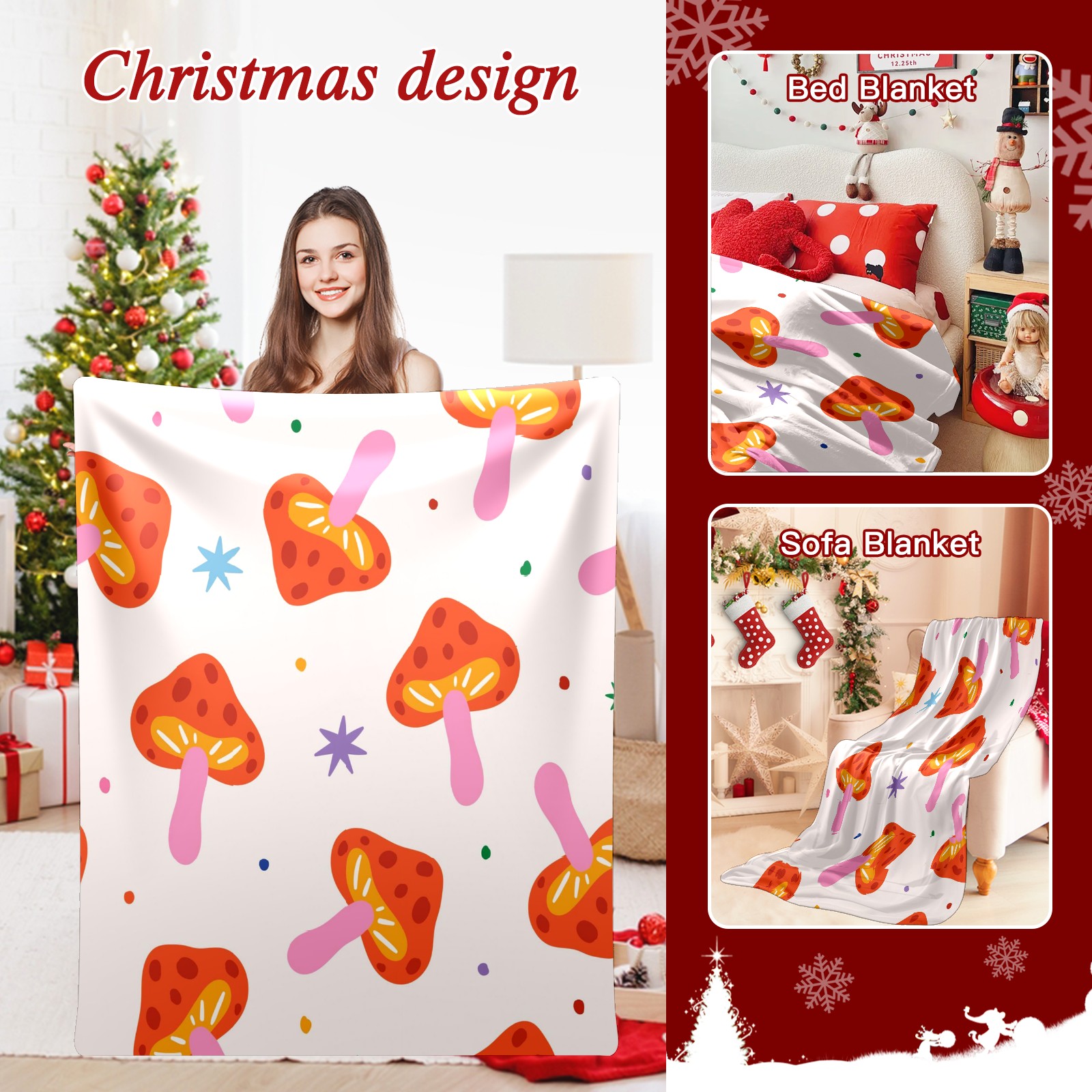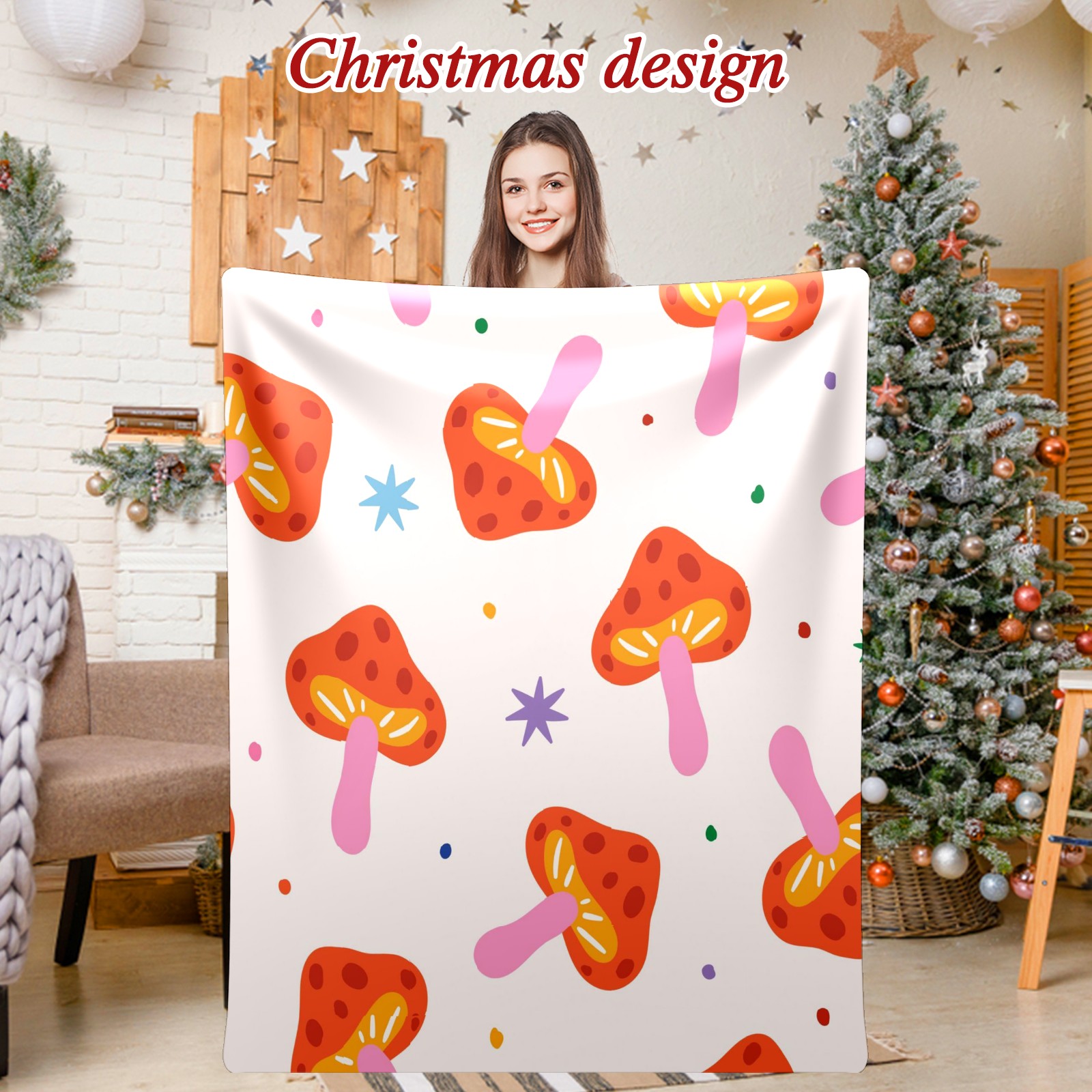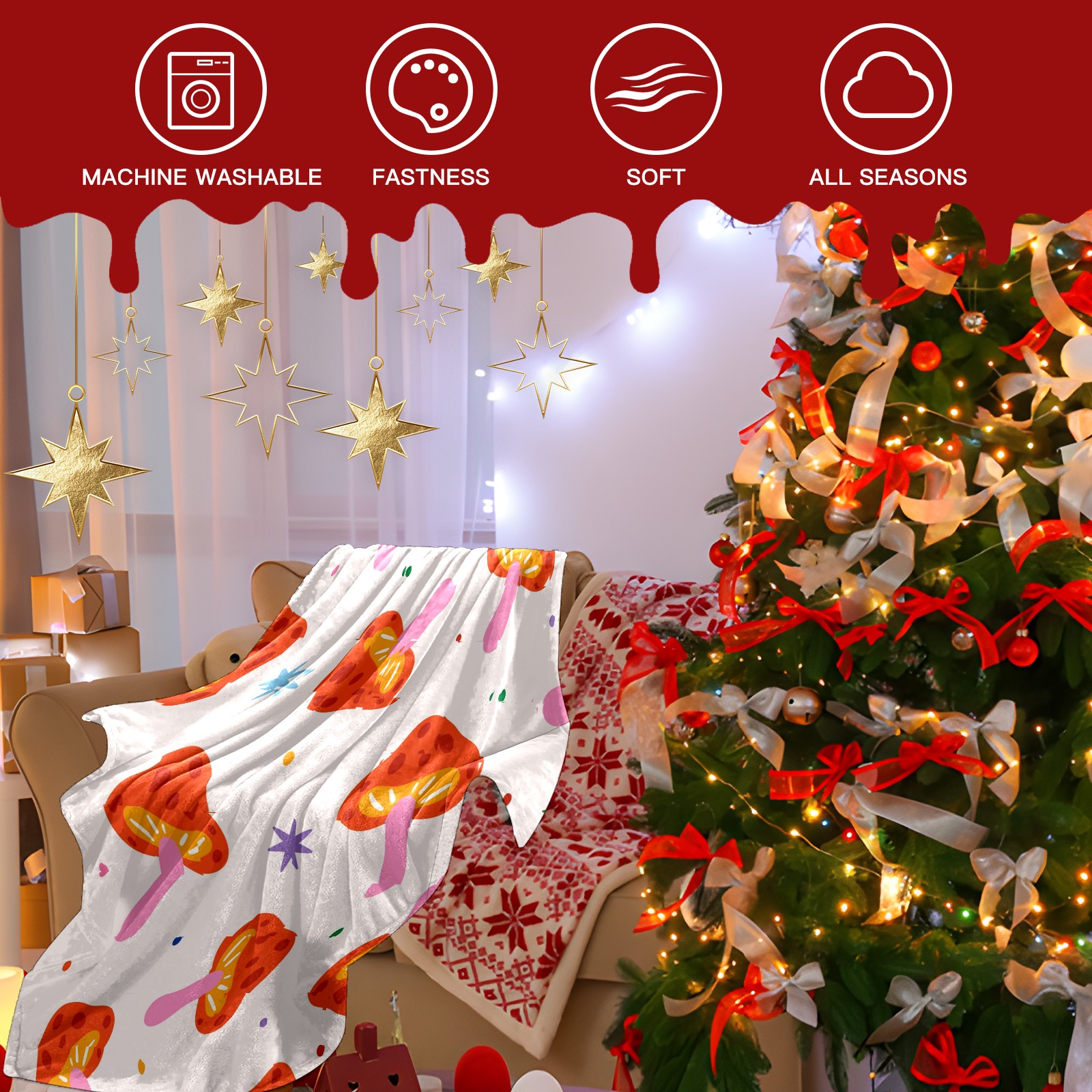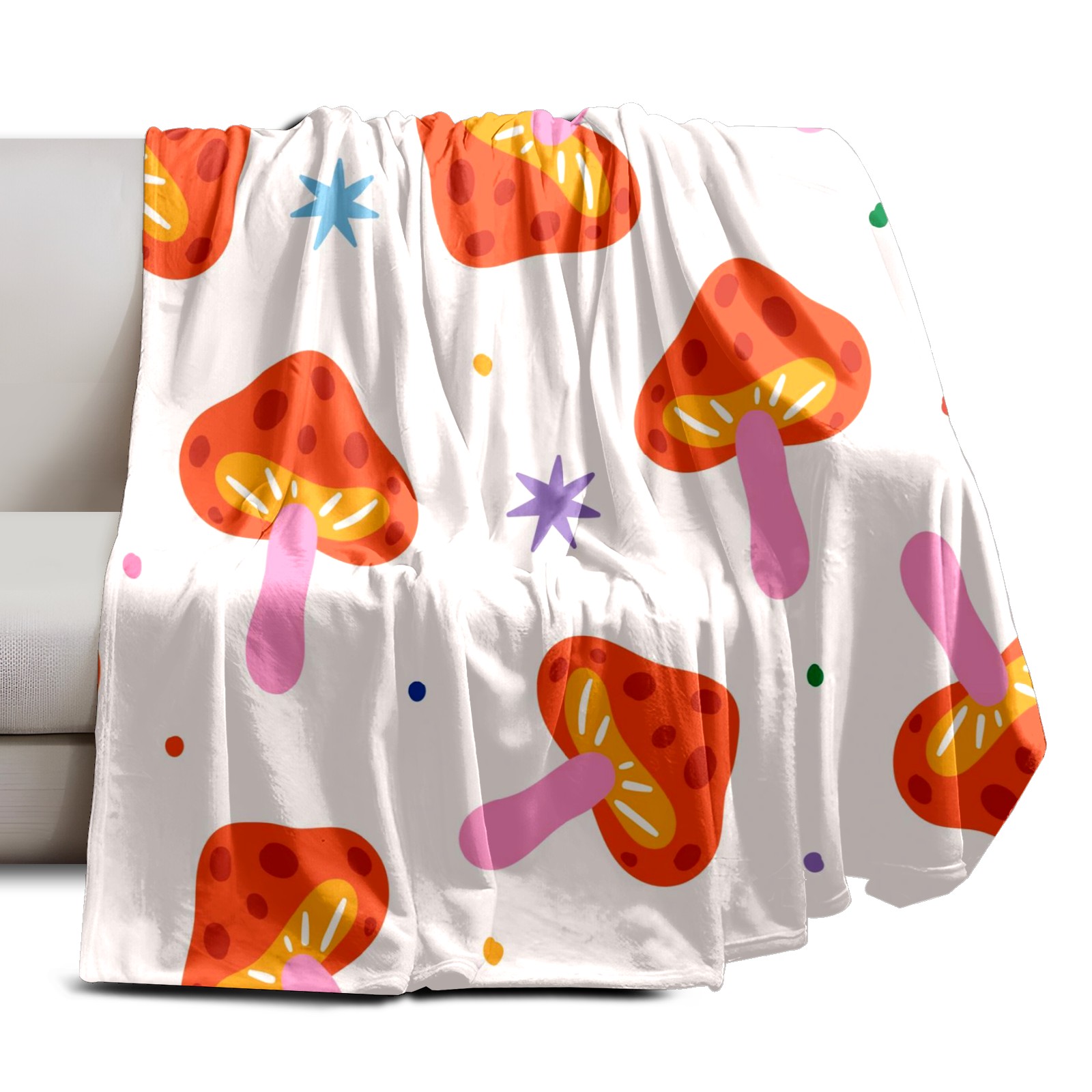 Премиальная фланелевая одеяло Orange Mushroom Print