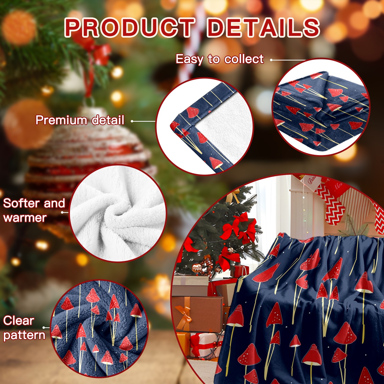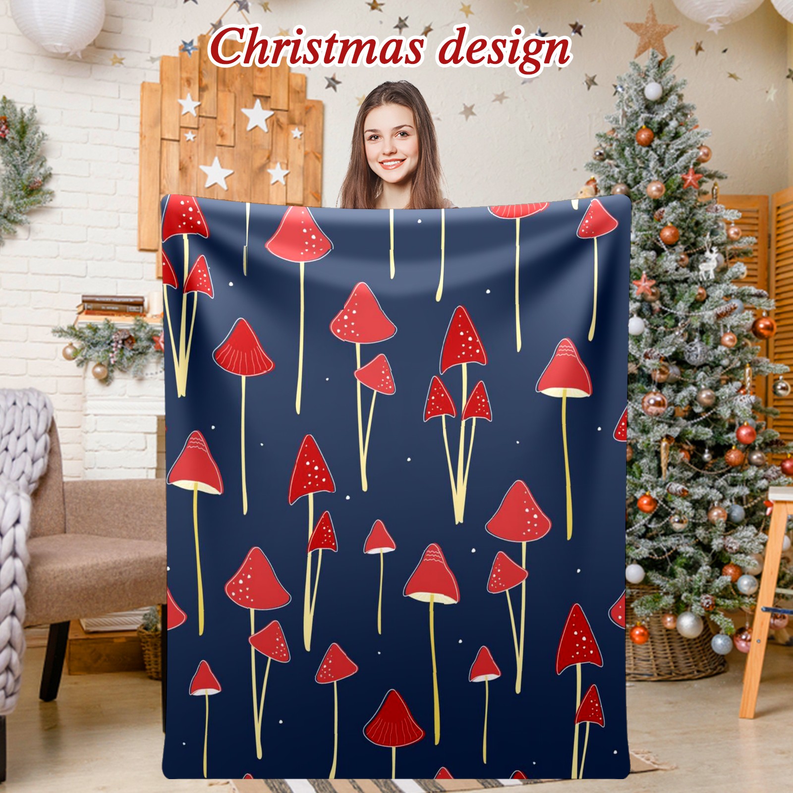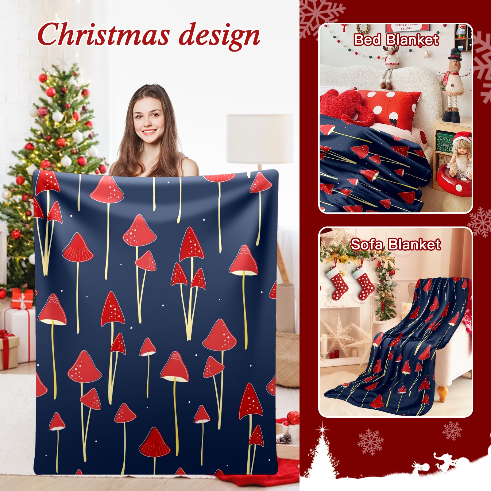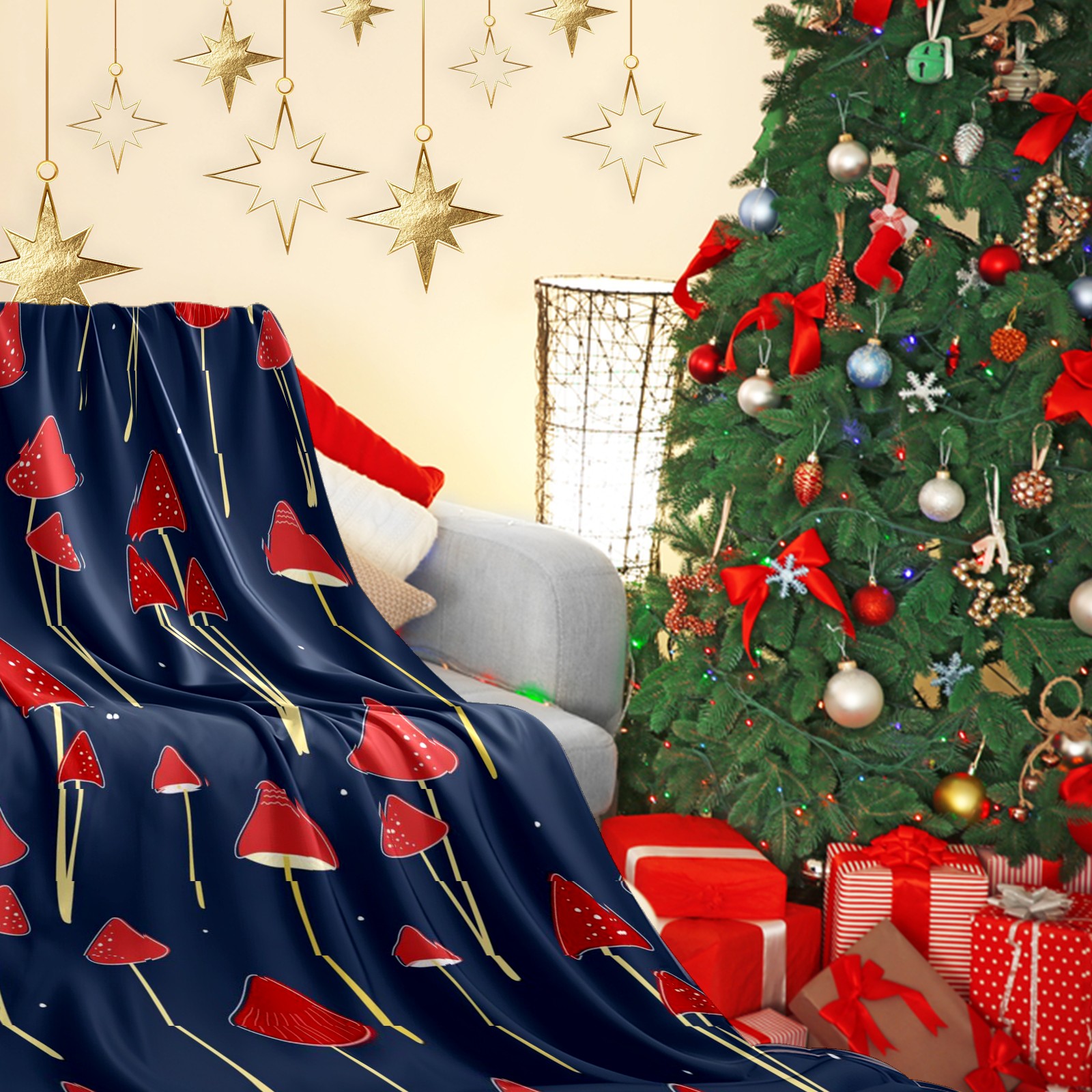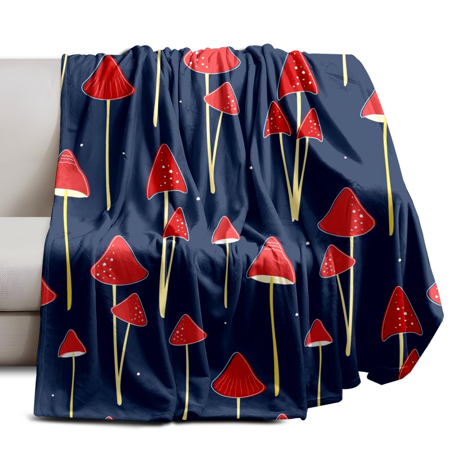 Премиальная фланелевая одеяло Navy Blue Red Mushrooms