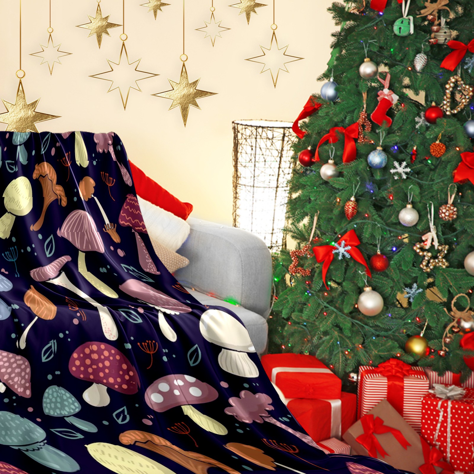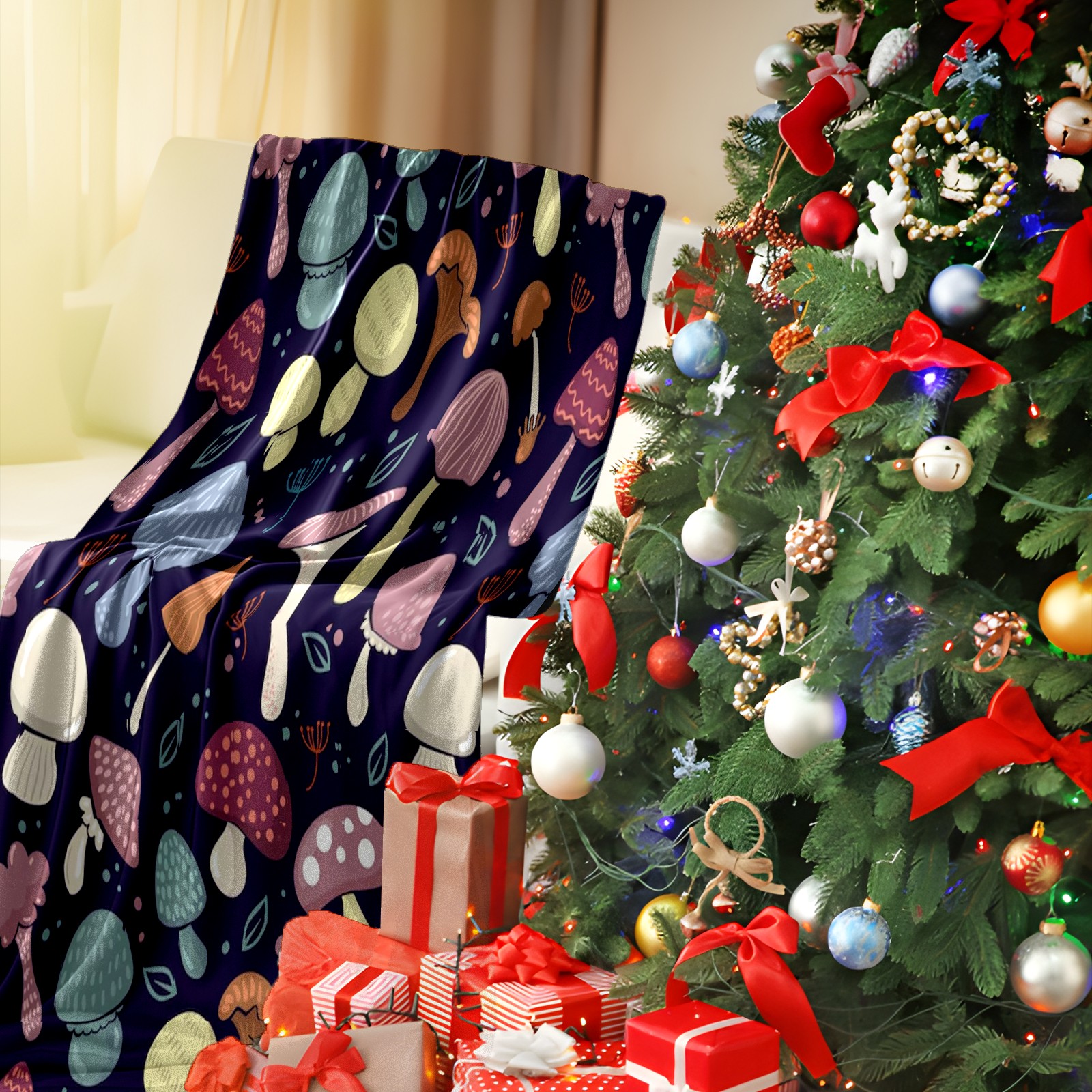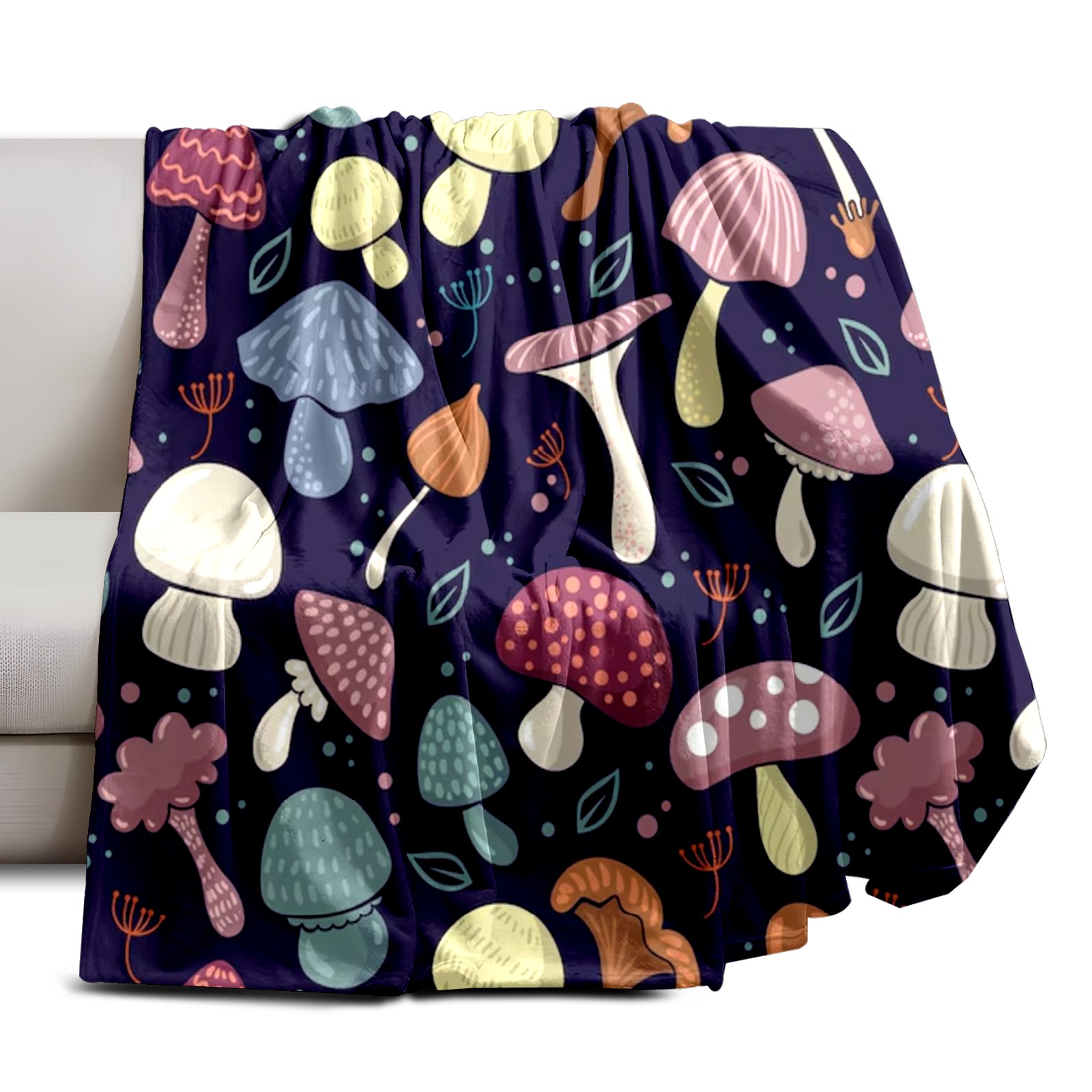 Премиальная фланелевая одеяло Navy Blue Colored Mushrooms