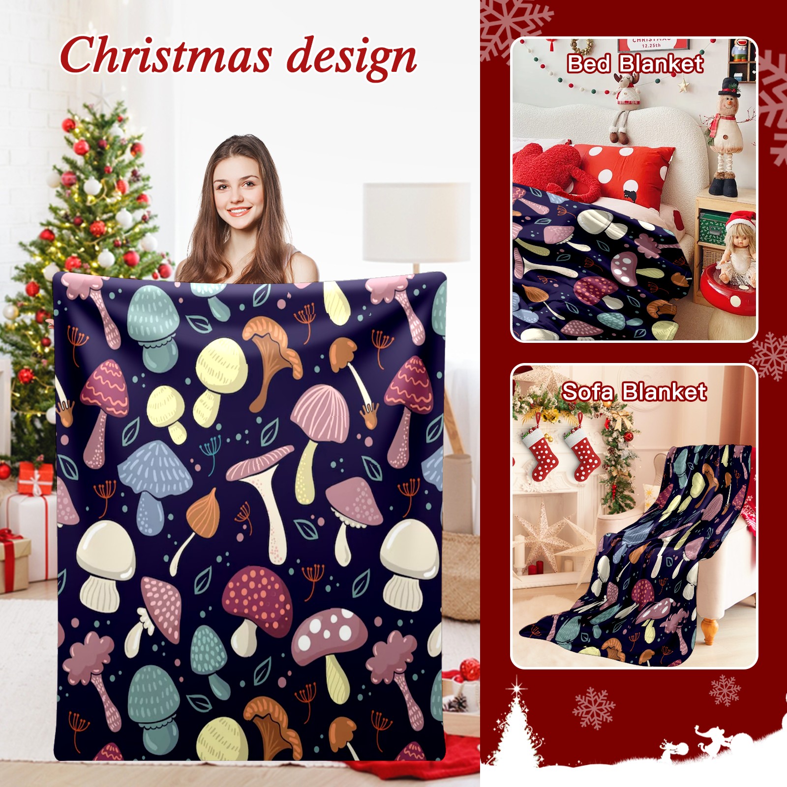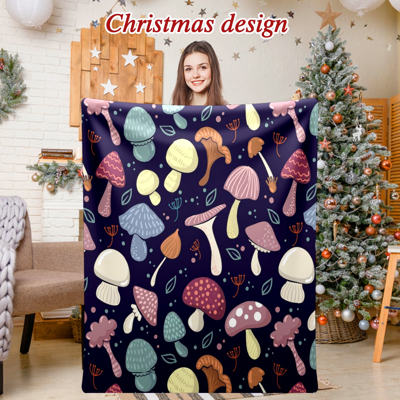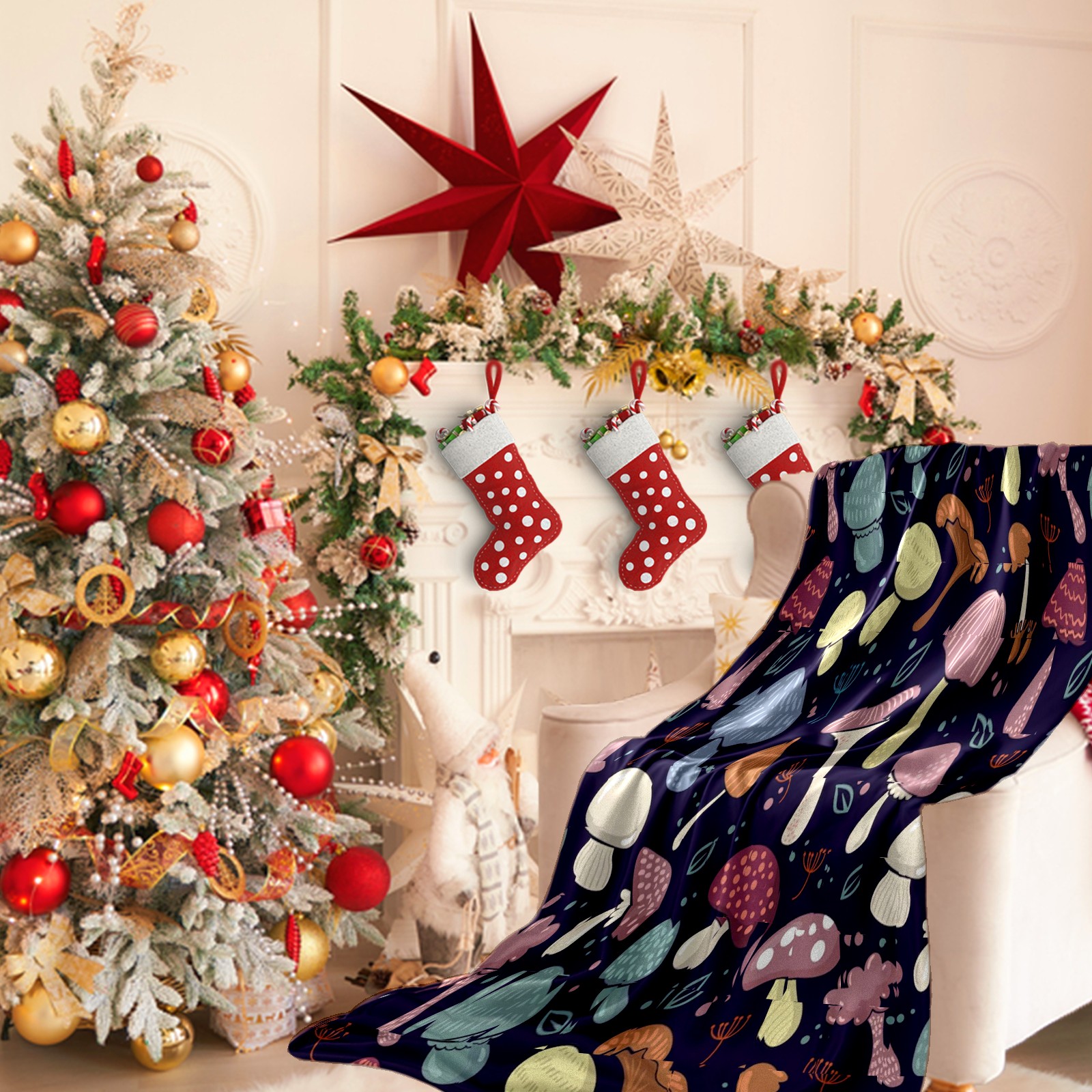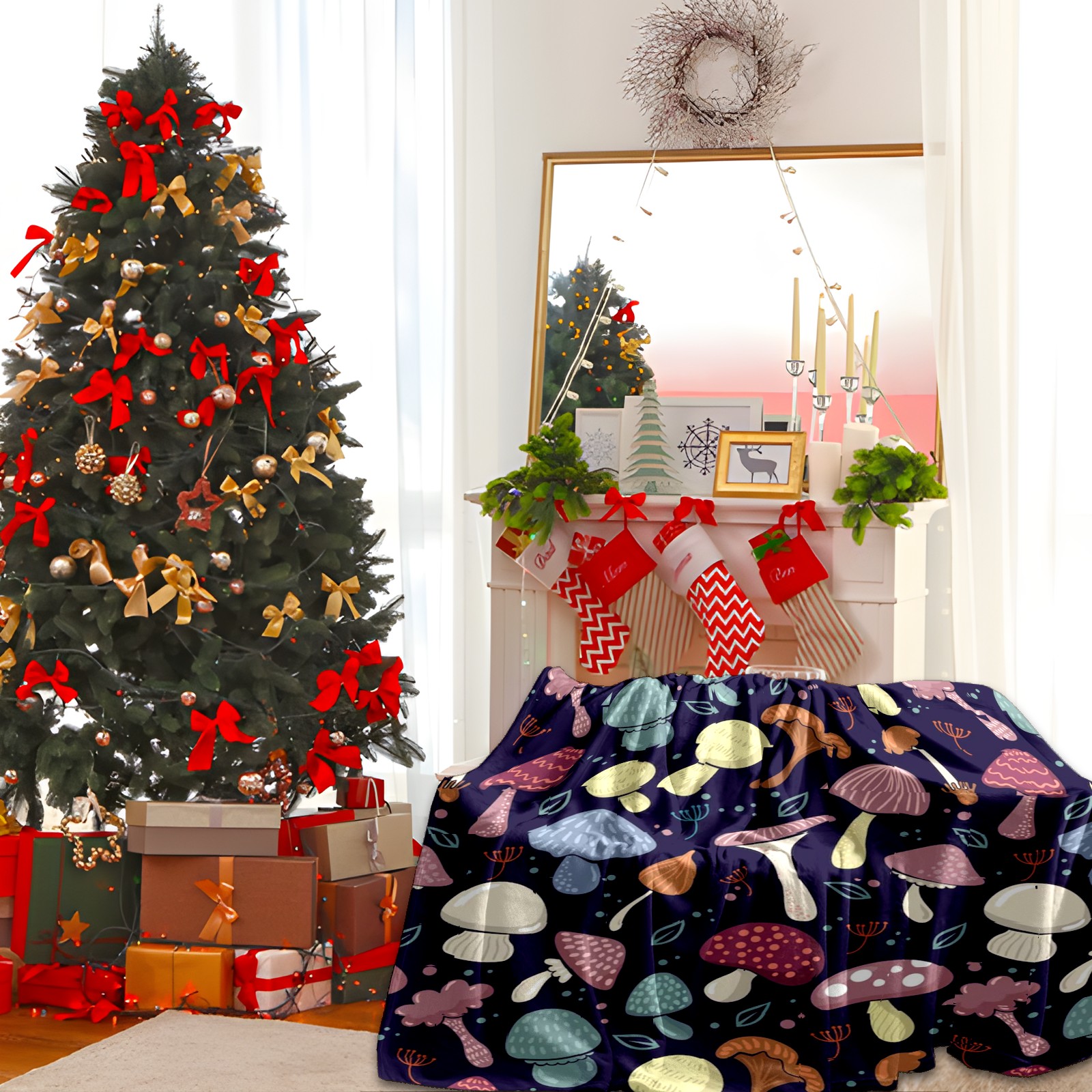 Премиальная фланелевая одеяло Navy Blue Colored Mushrooms