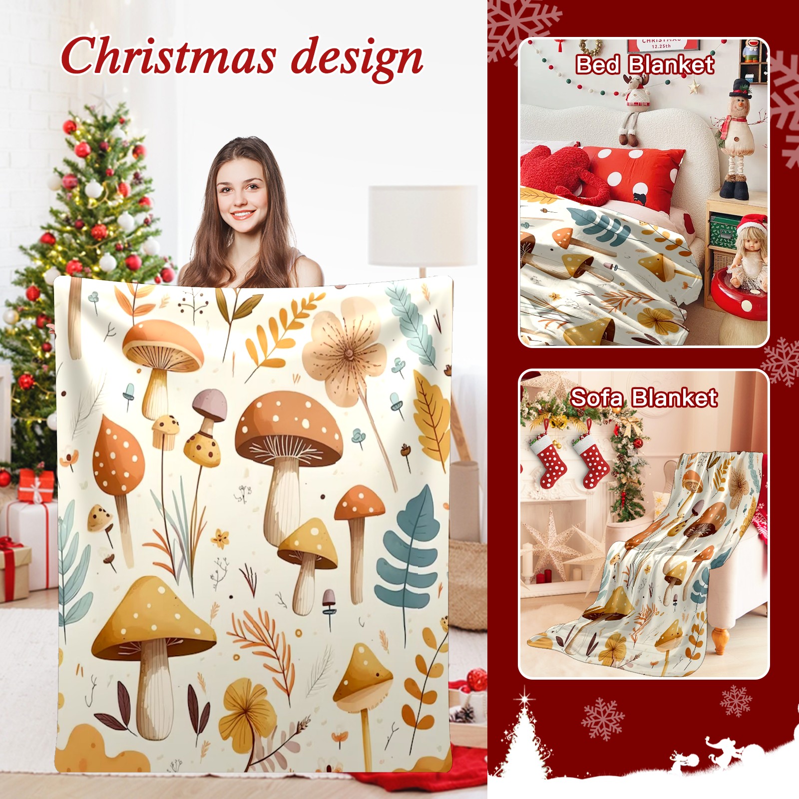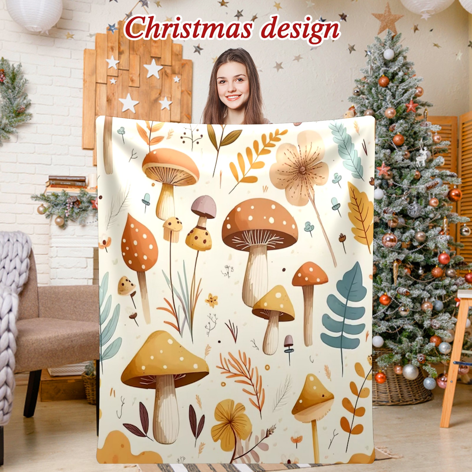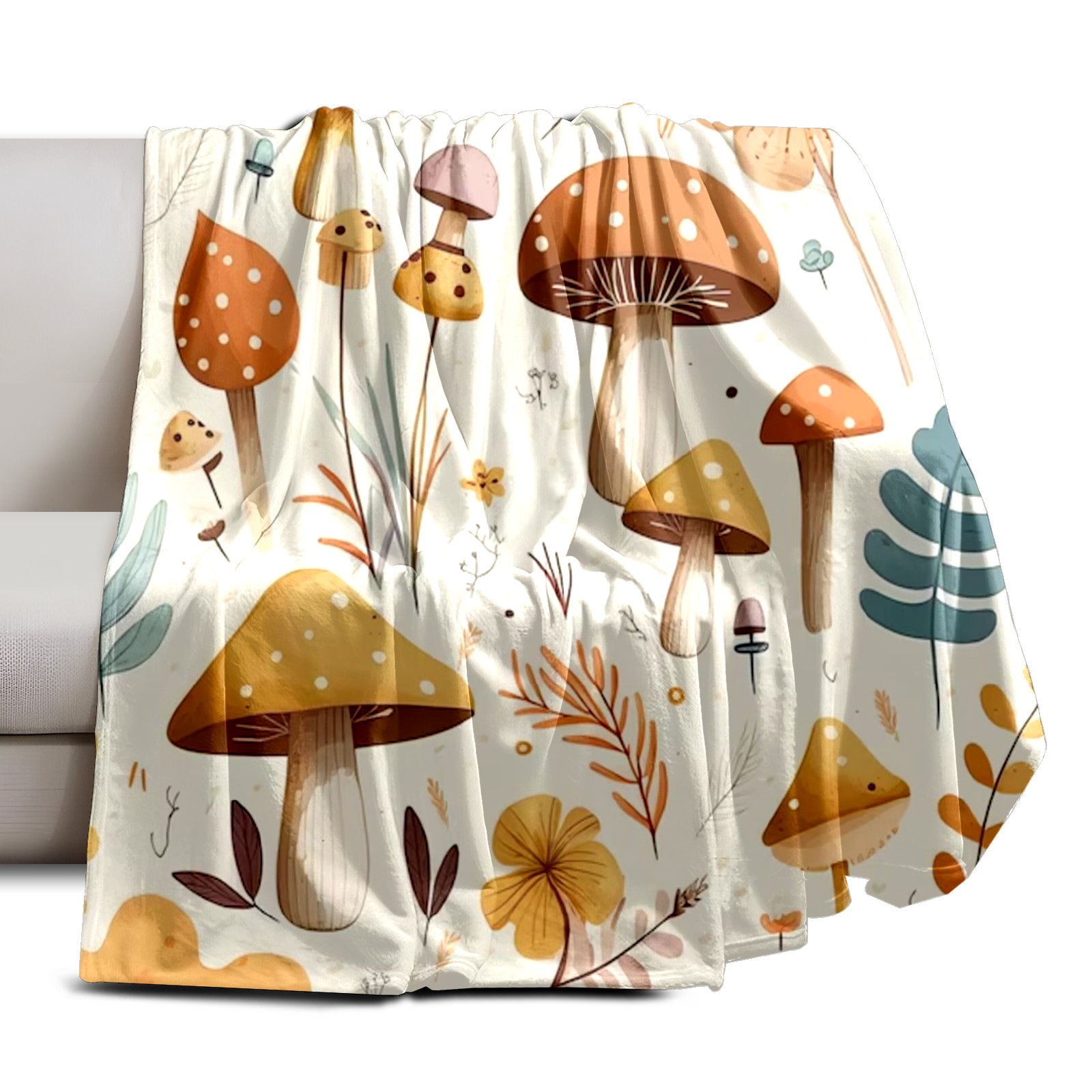 Премиальная фланелевая одеяло Khaki Mushrooms