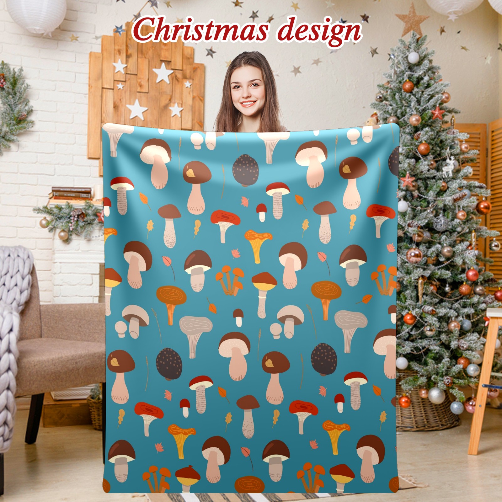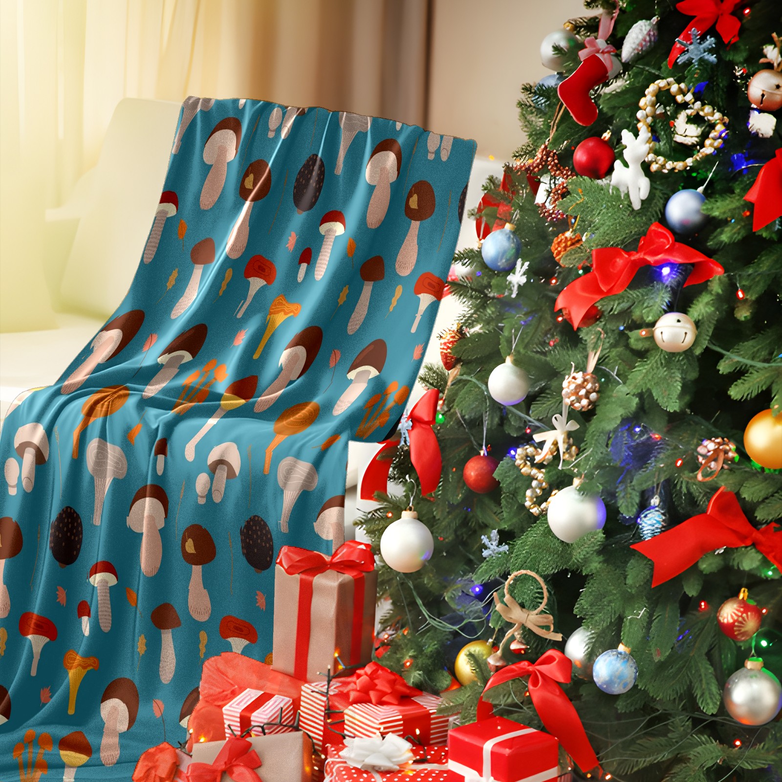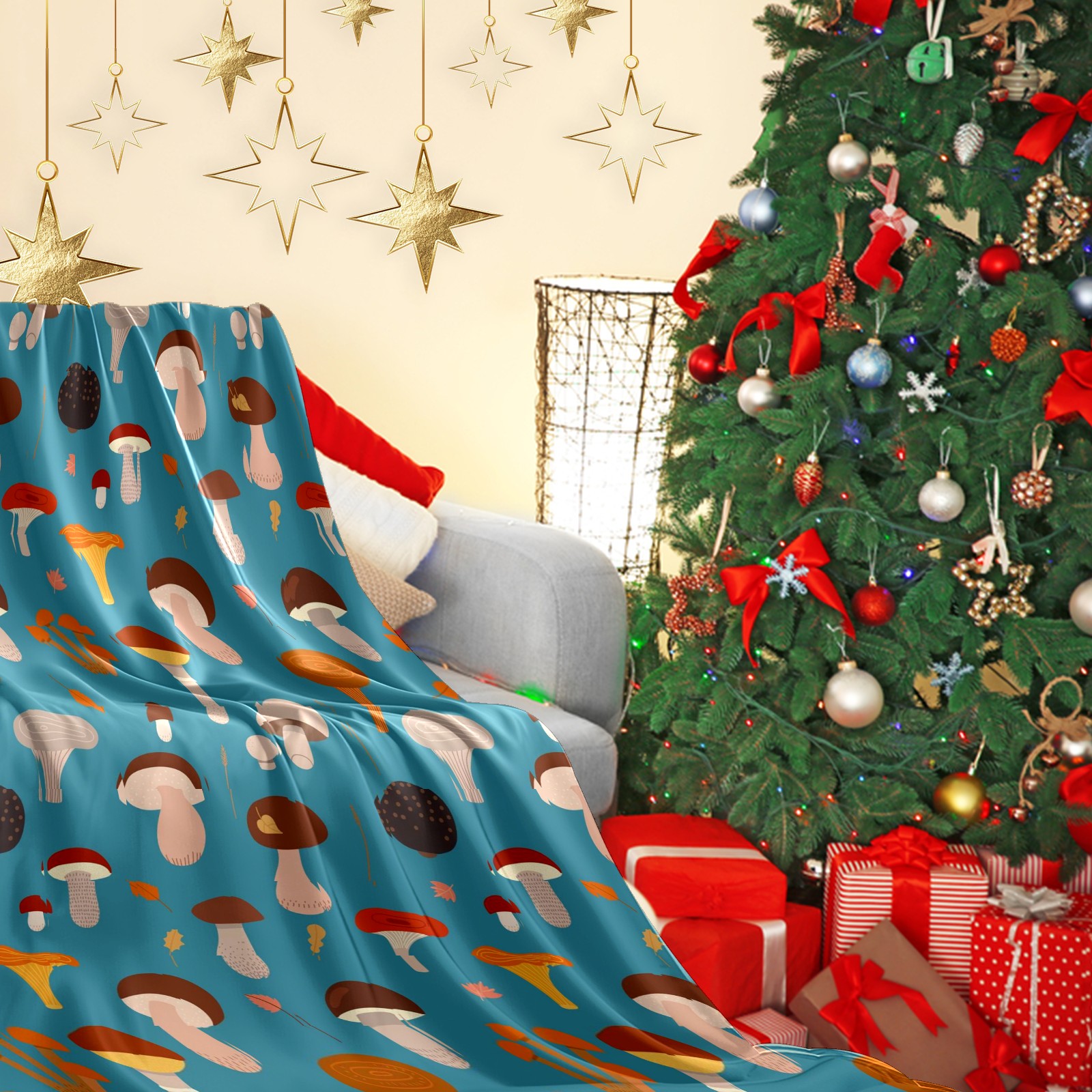 Премиальная фланелевая одеяло Dark Blue Mushroom