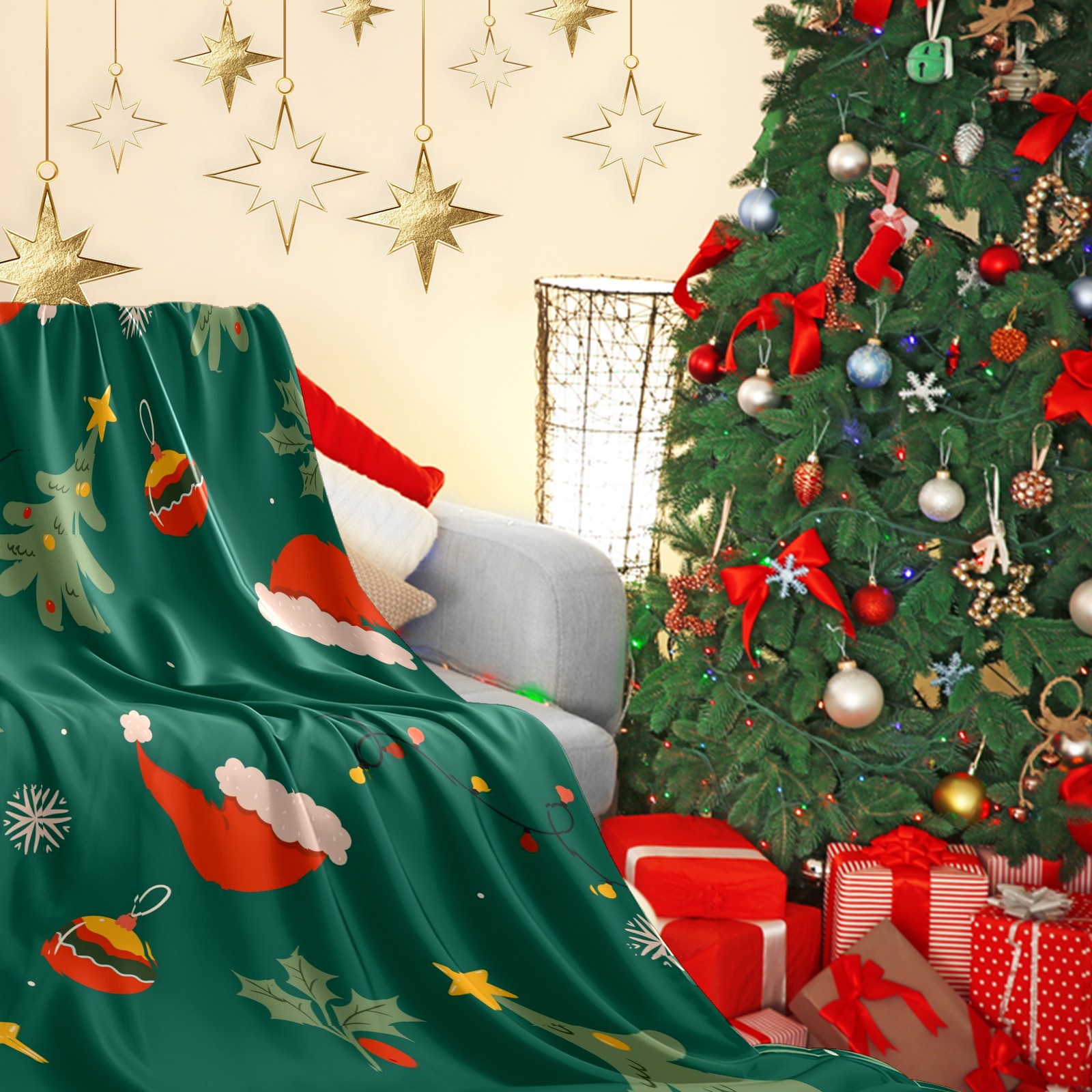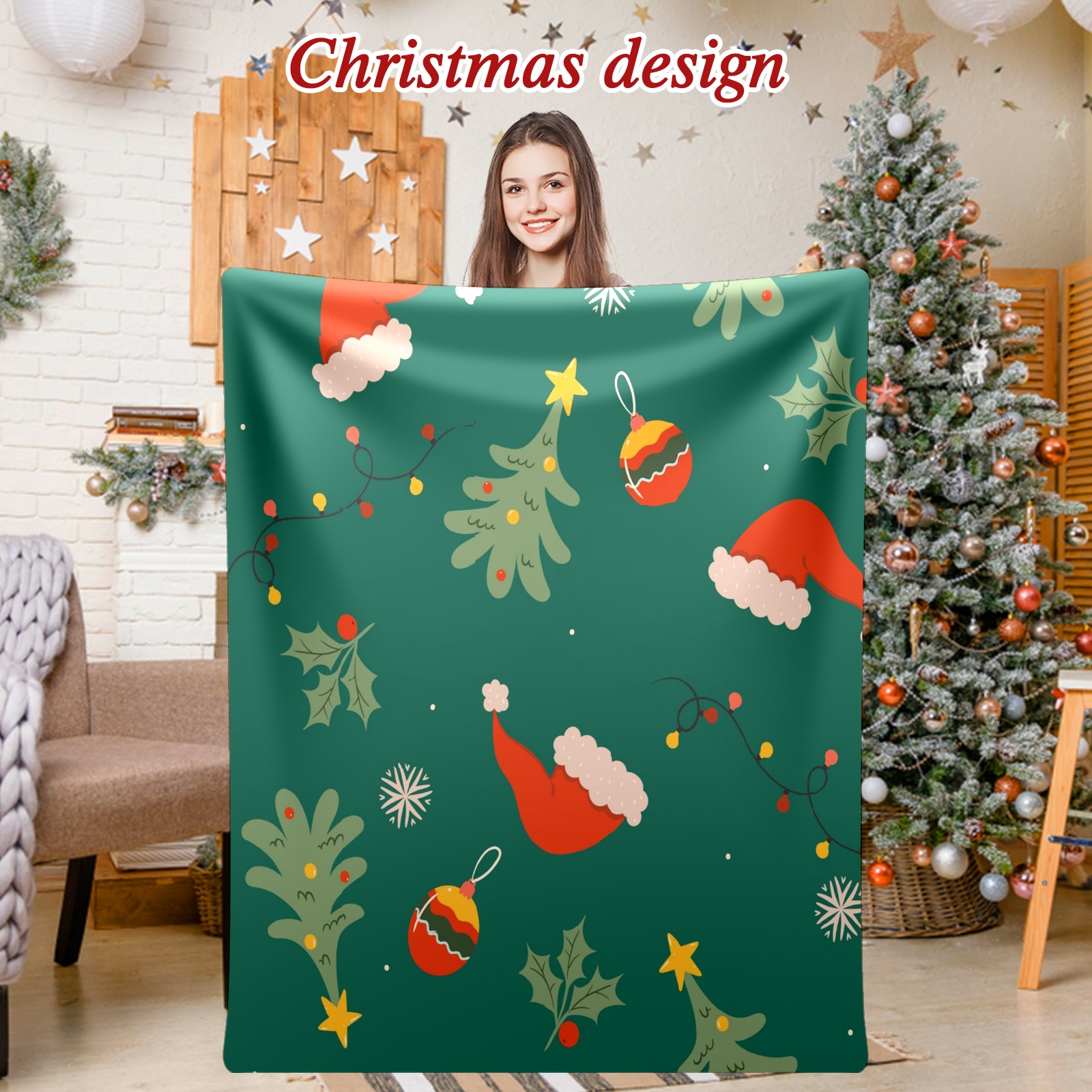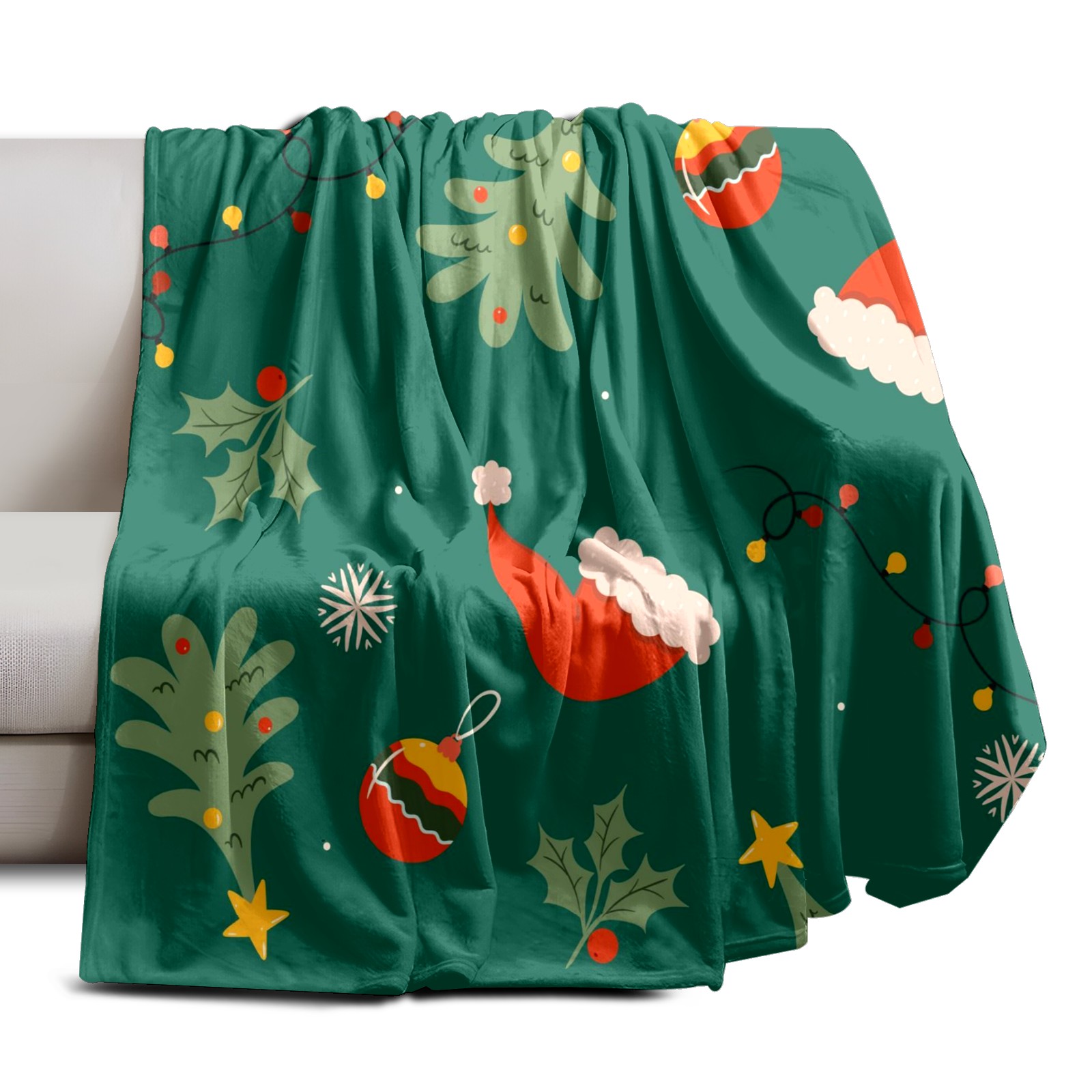 Премиальная фланелевая одеяло Green Christmas Print