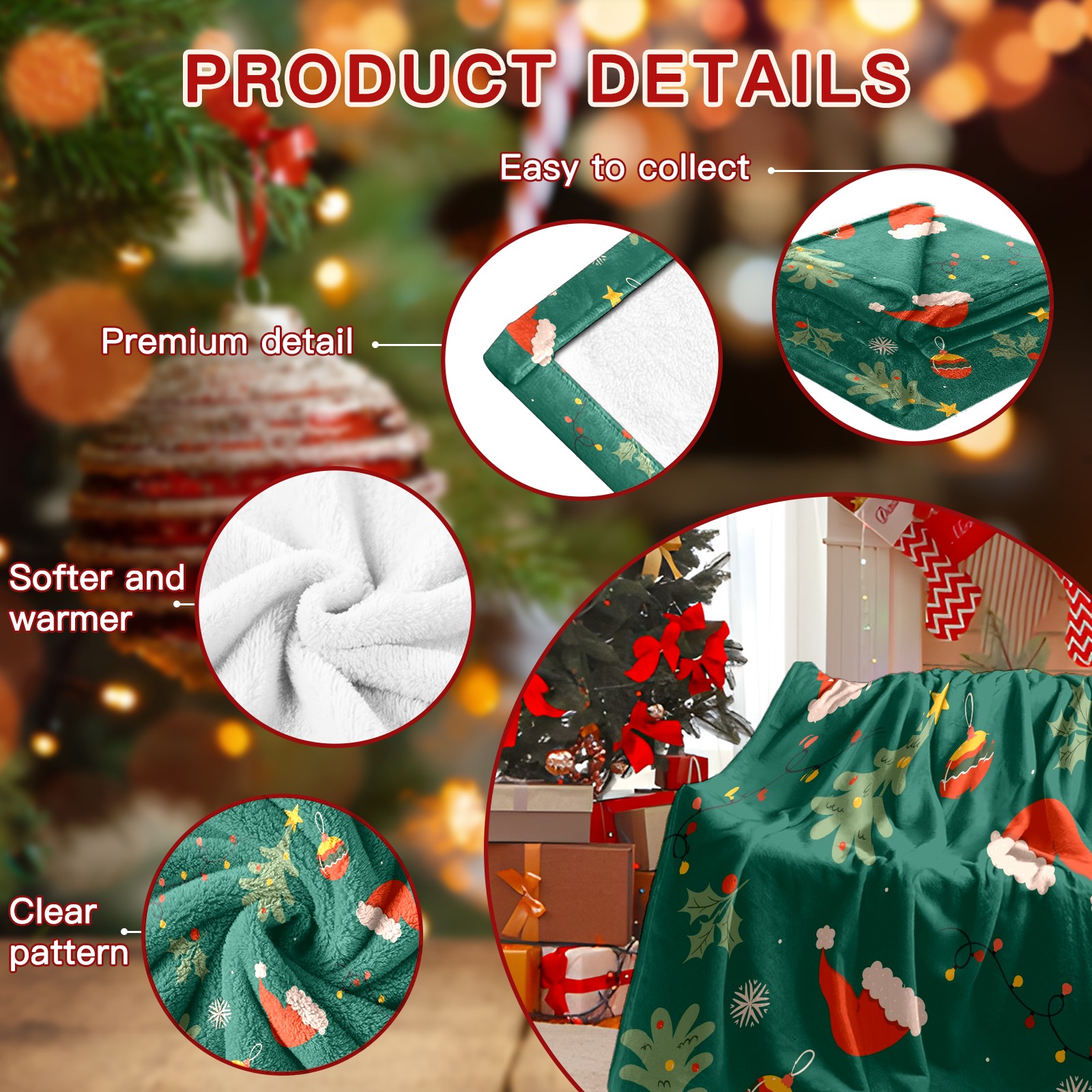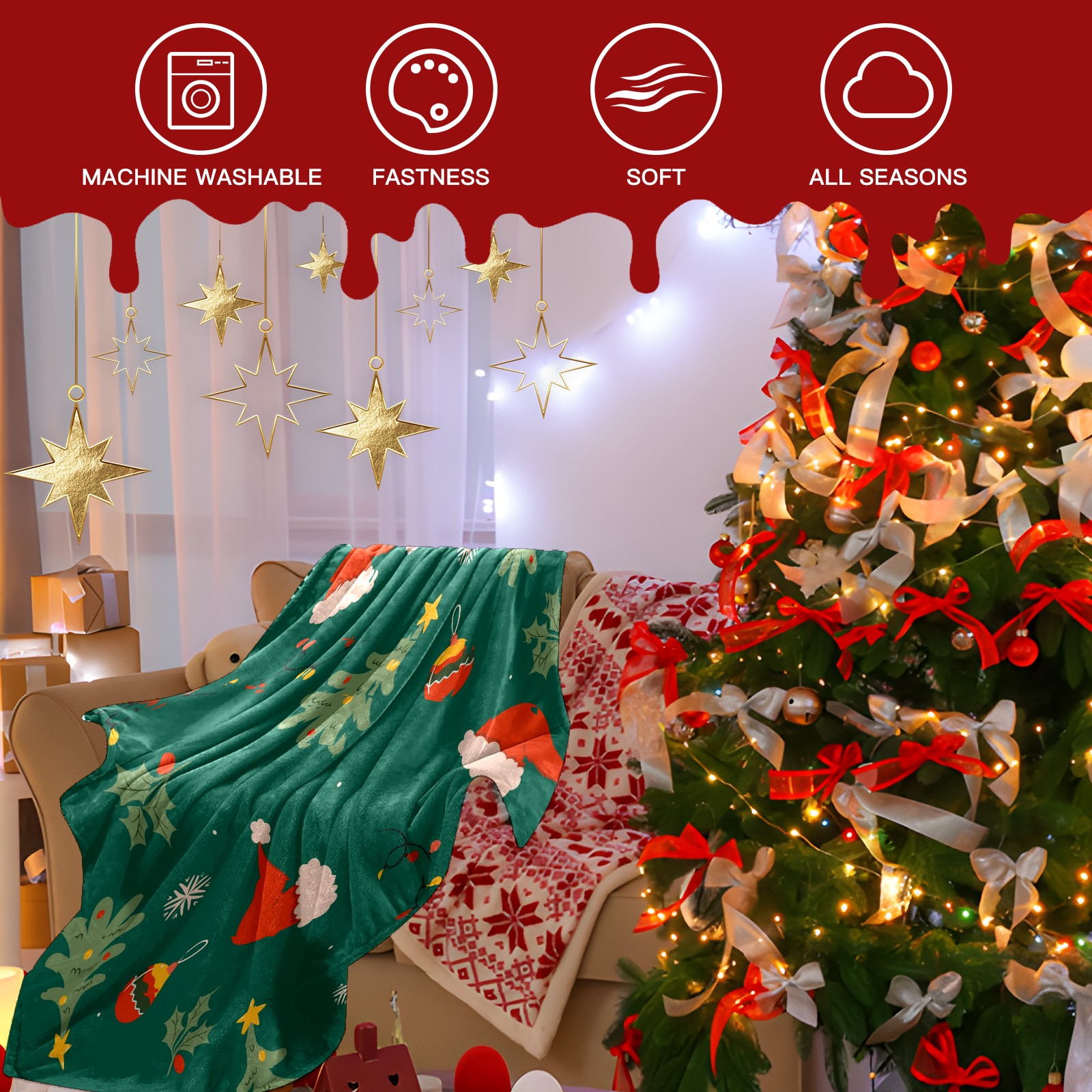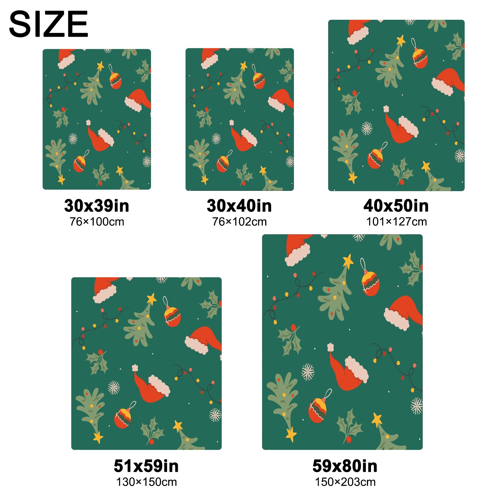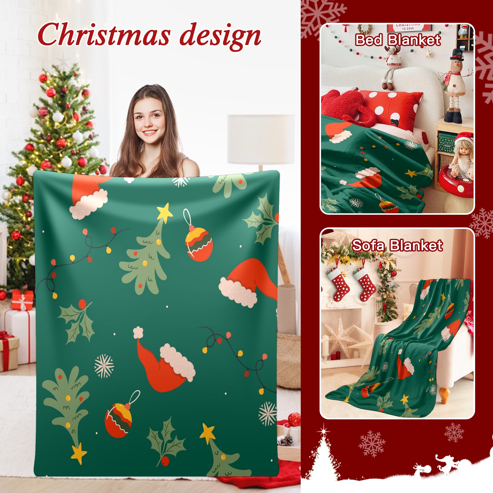 Премиальная фланелевая одеяло Green Christmas Print