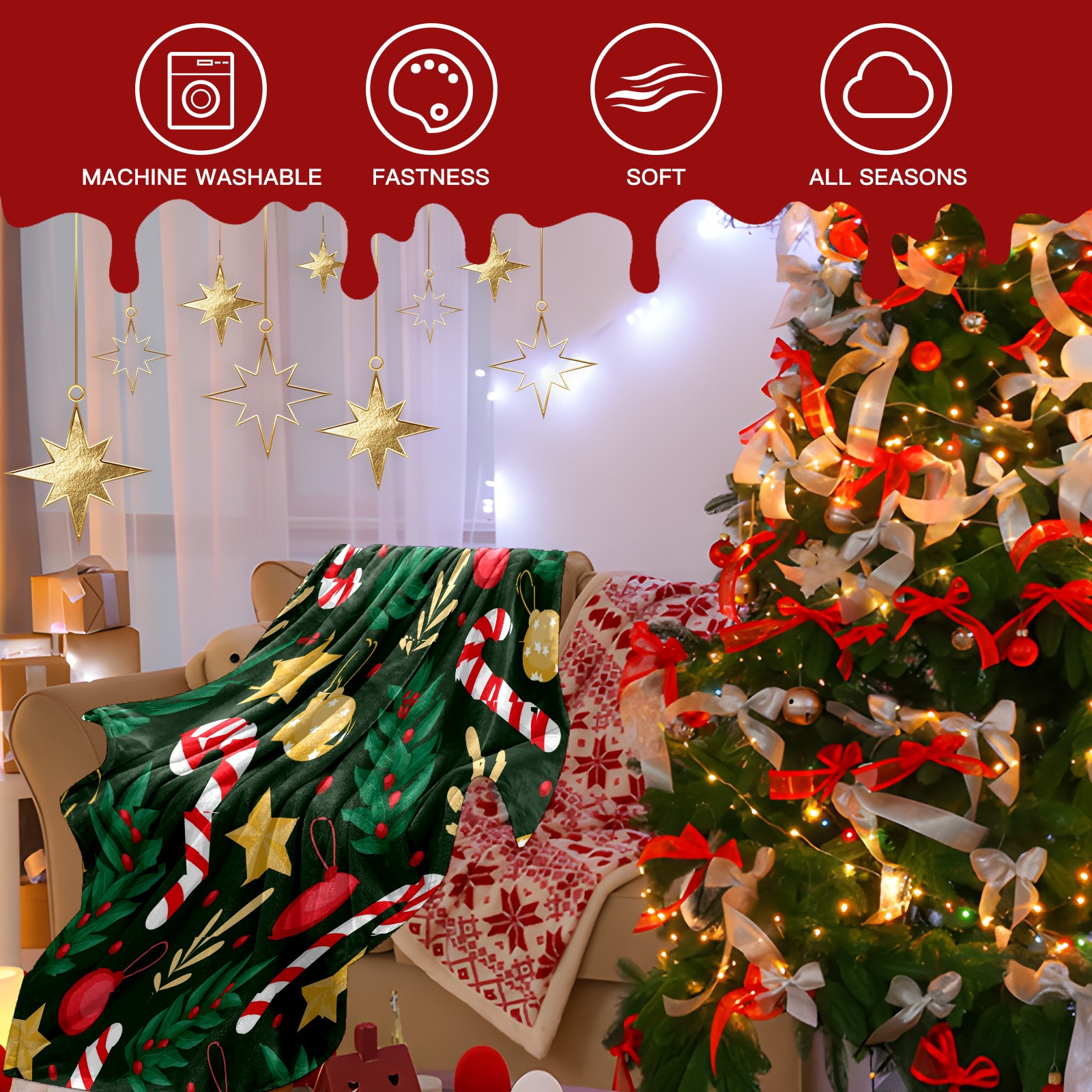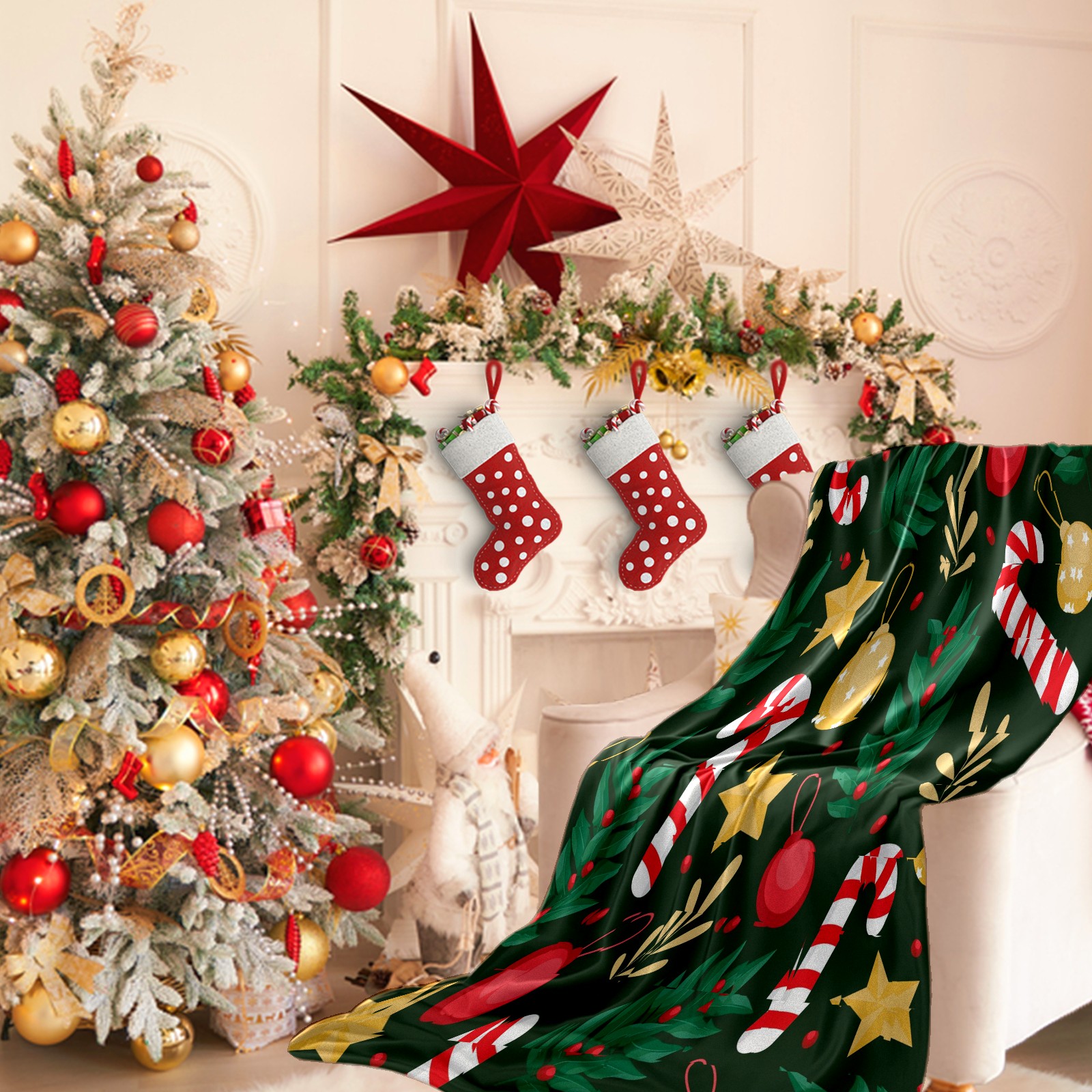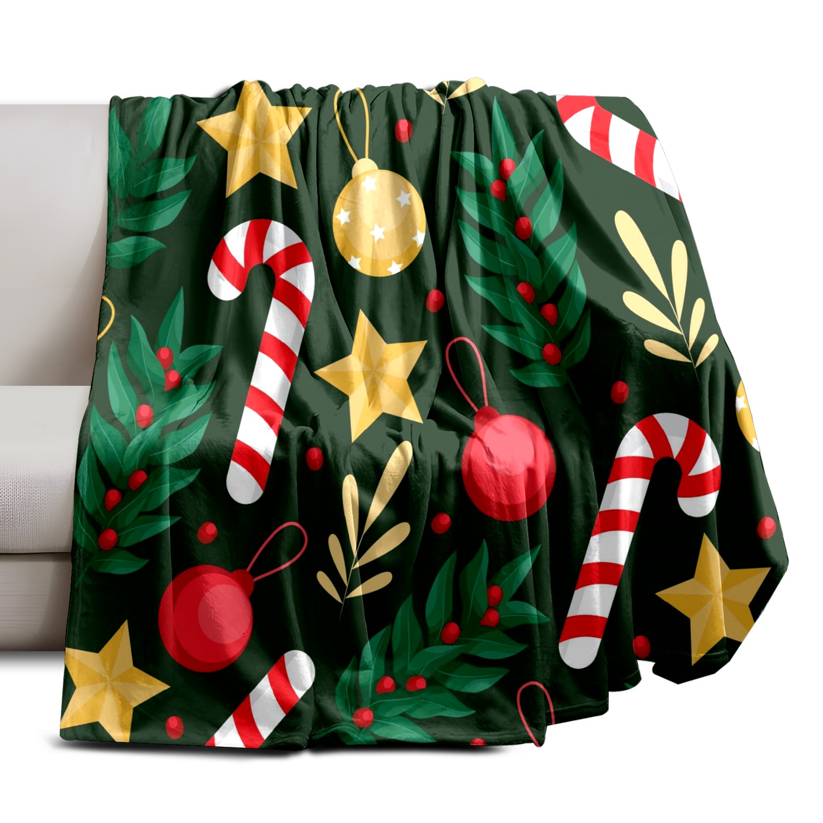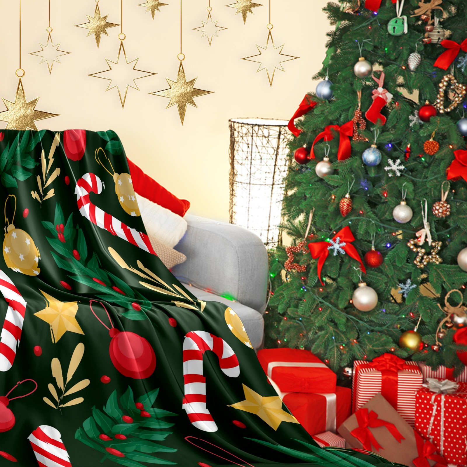 Премиальная фланелевая одеяло Dark Green Christmas Leaves