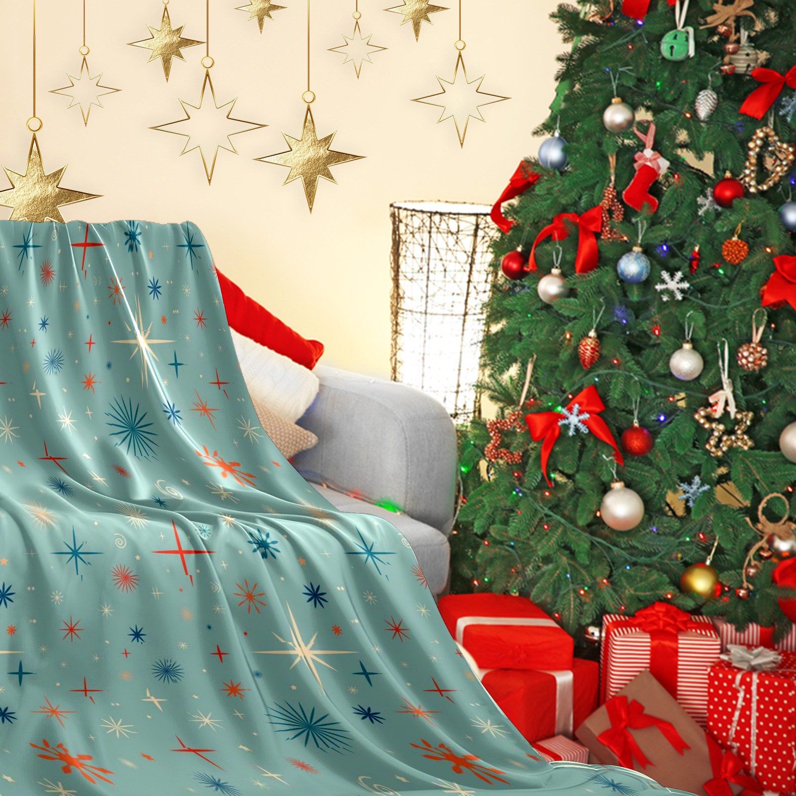 Премиальная фланелевая одеяло Blue Vintage Retro Christmas