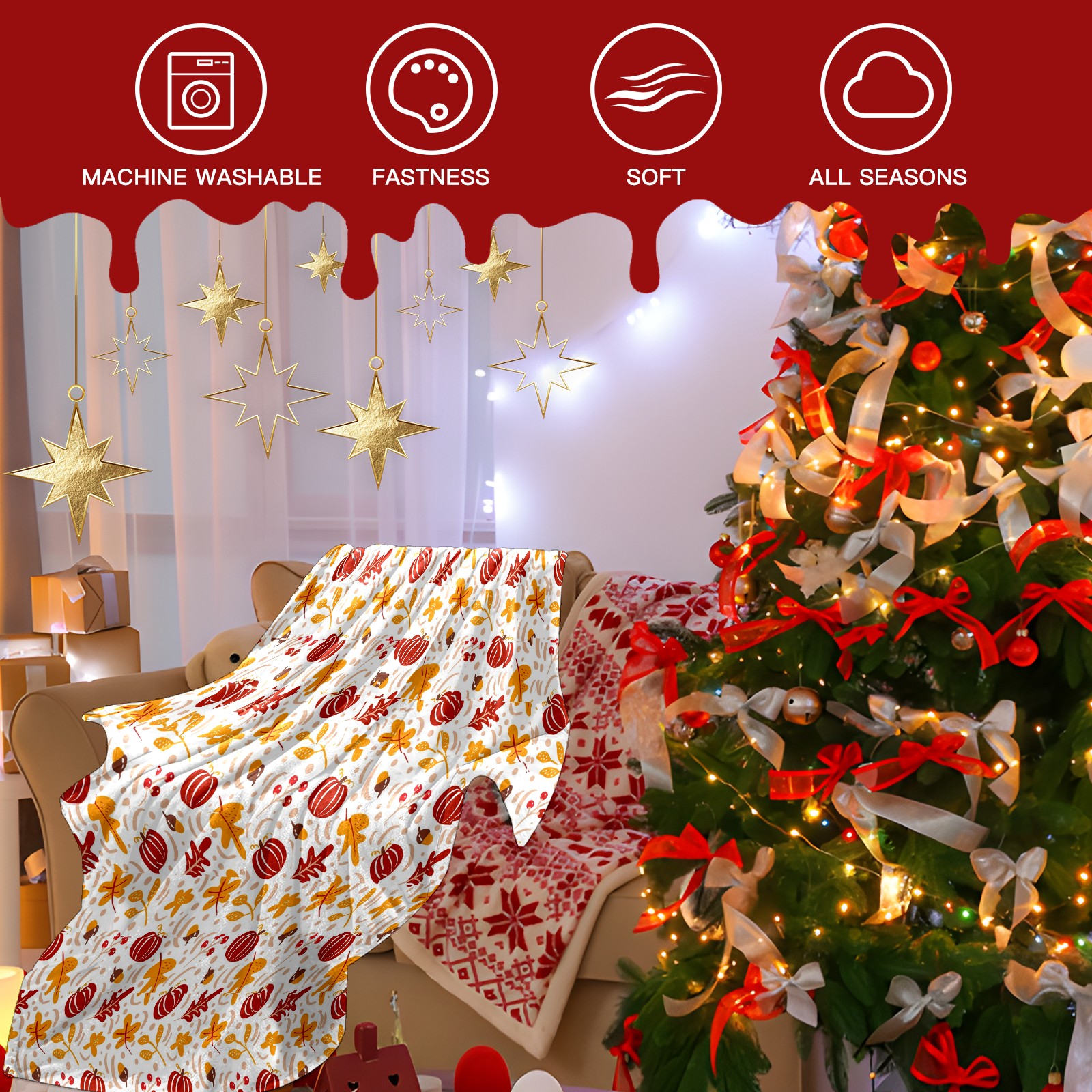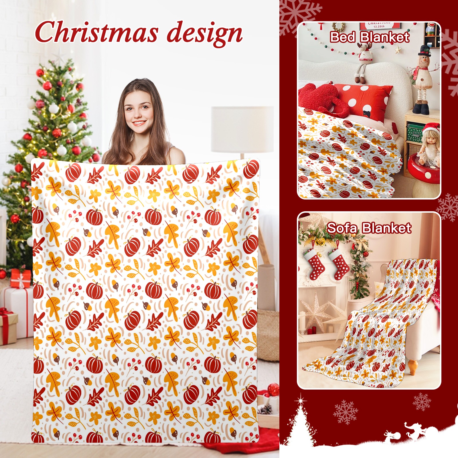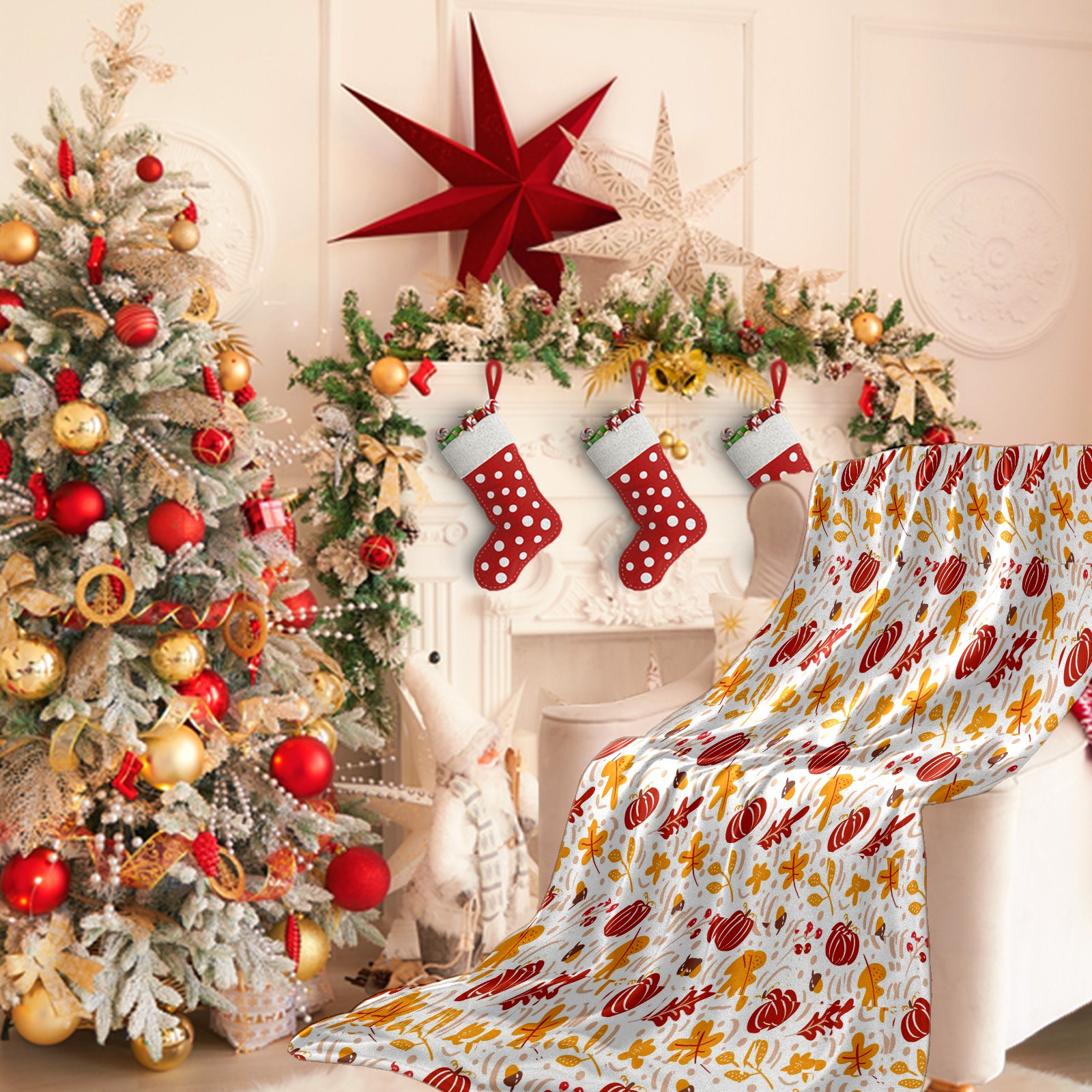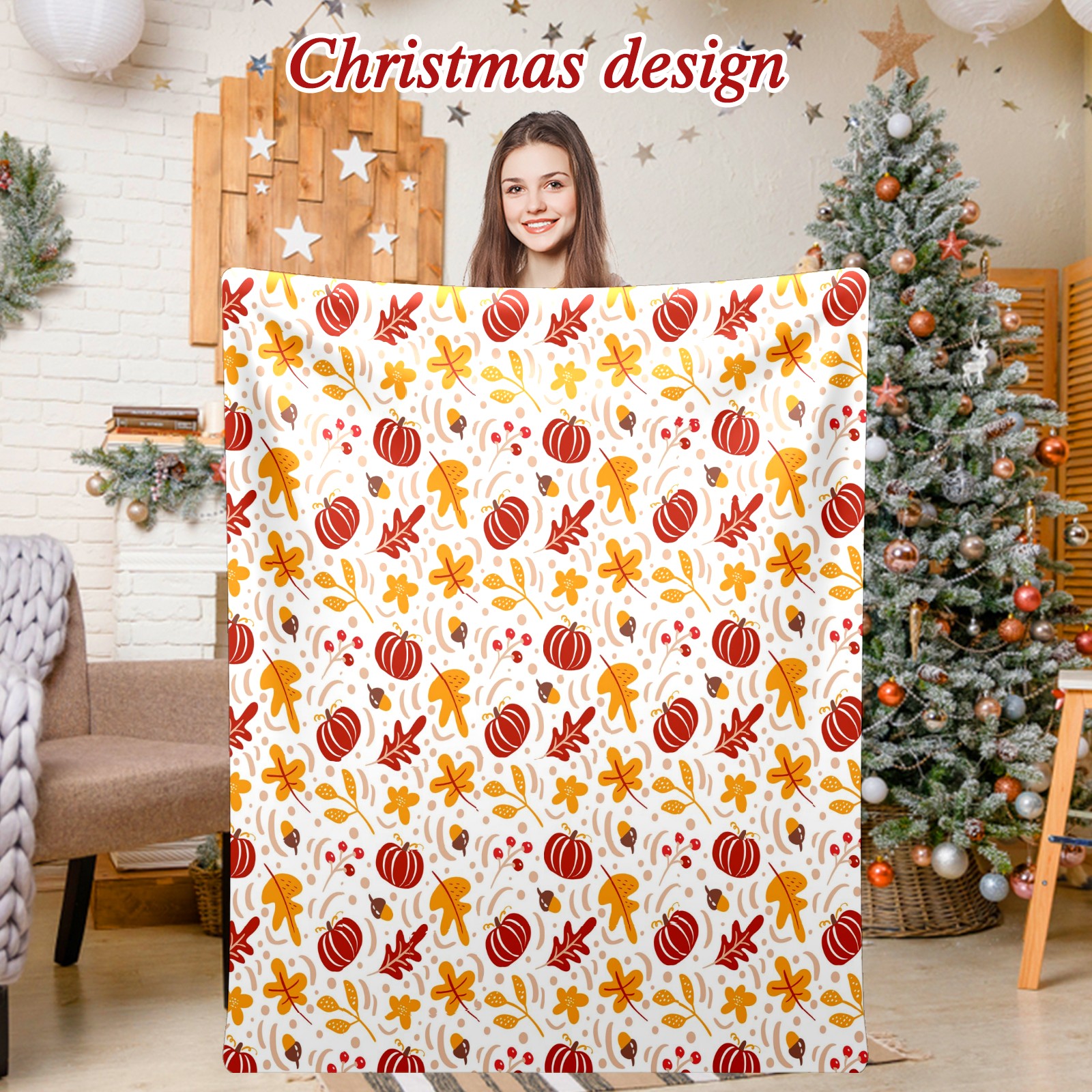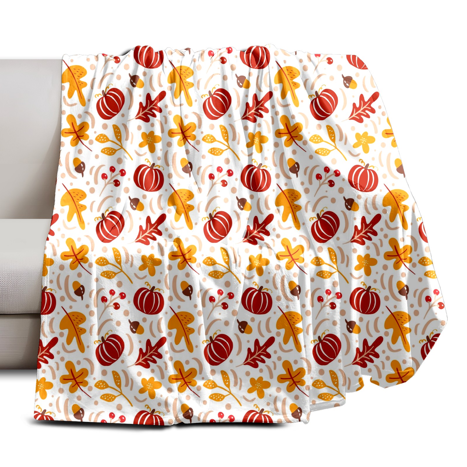 Премиальная фланелевая одеяло Red Pumpkin Autumn Leaves