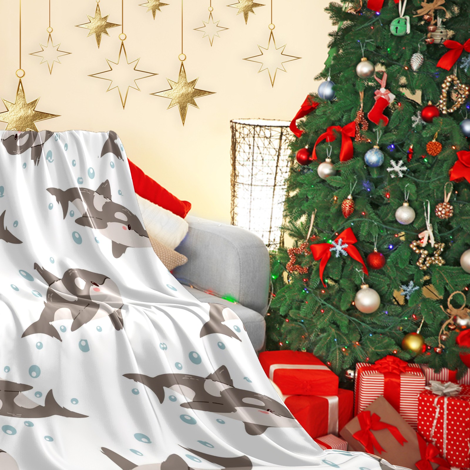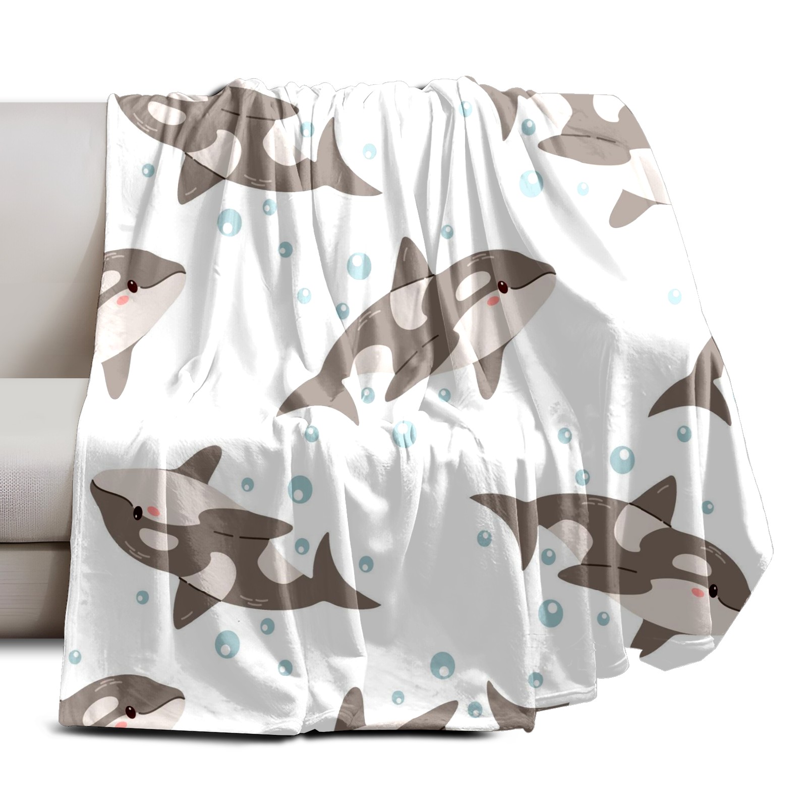 Премиальная фланелевая одеяло White Gray Sharks