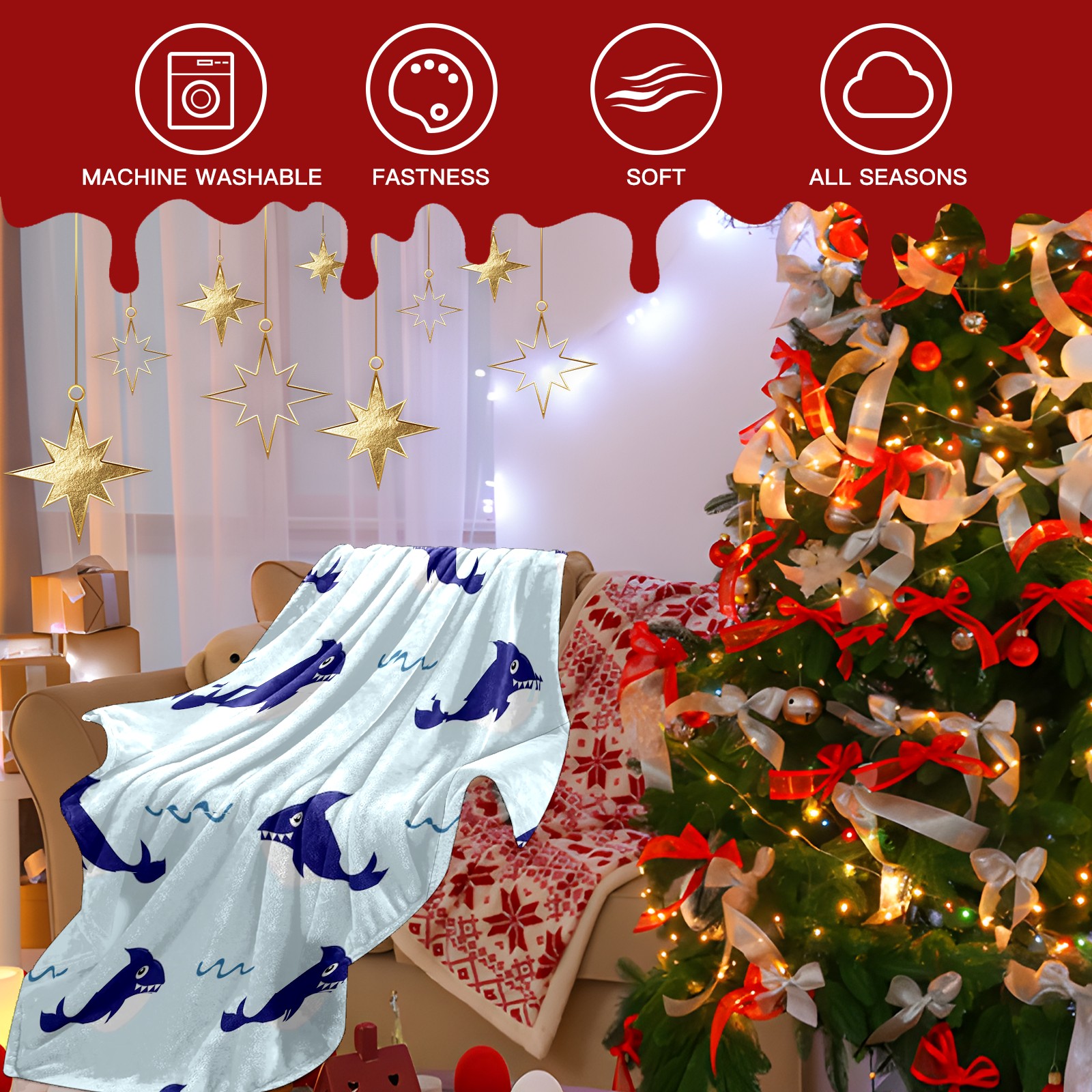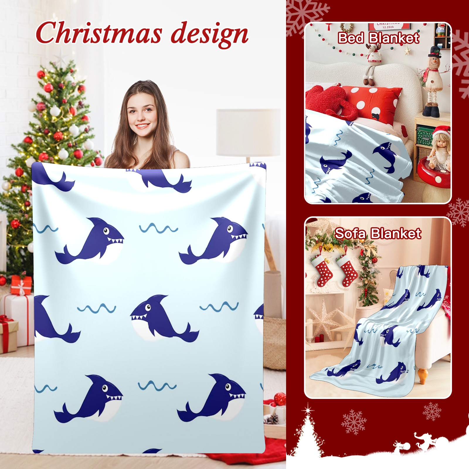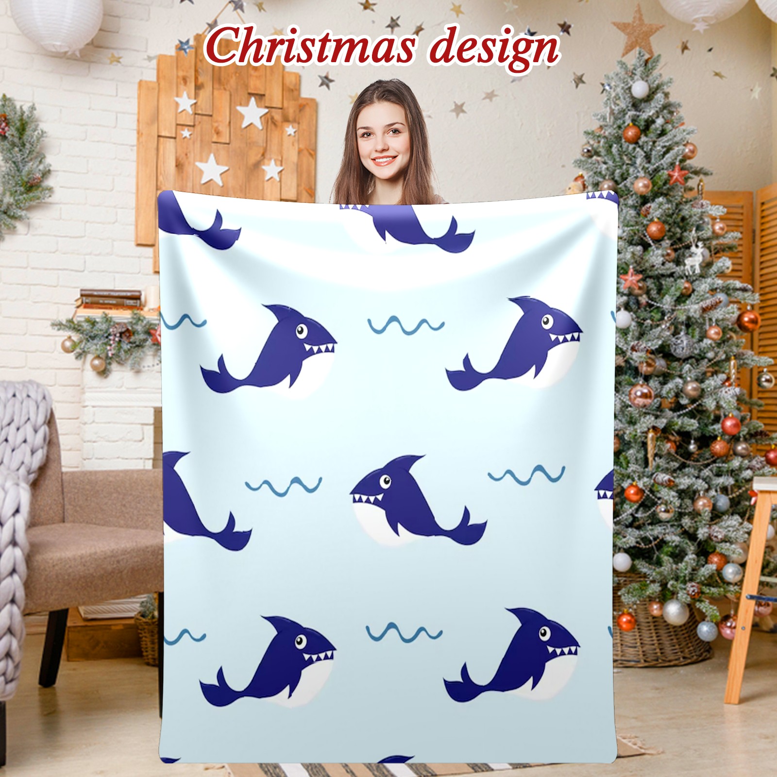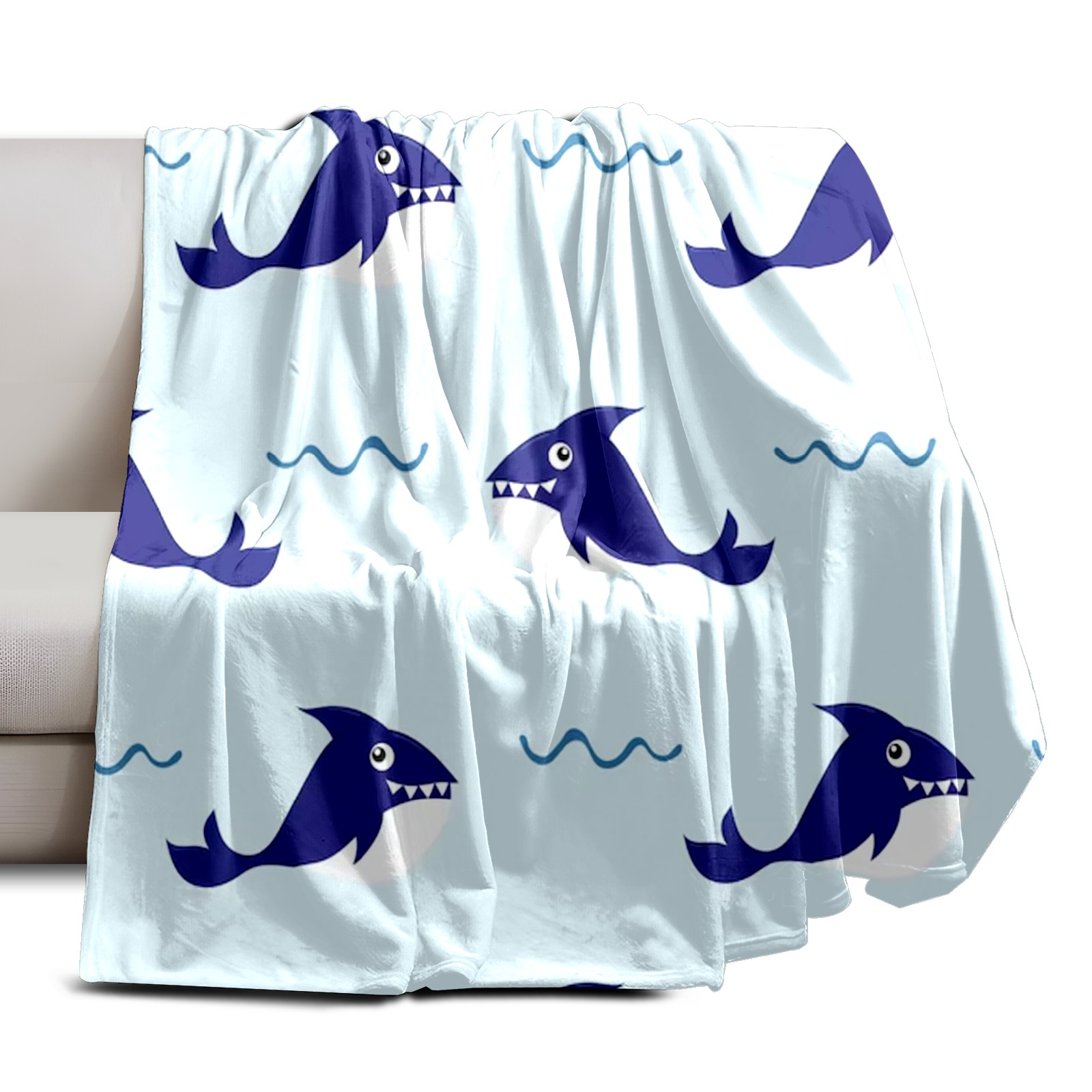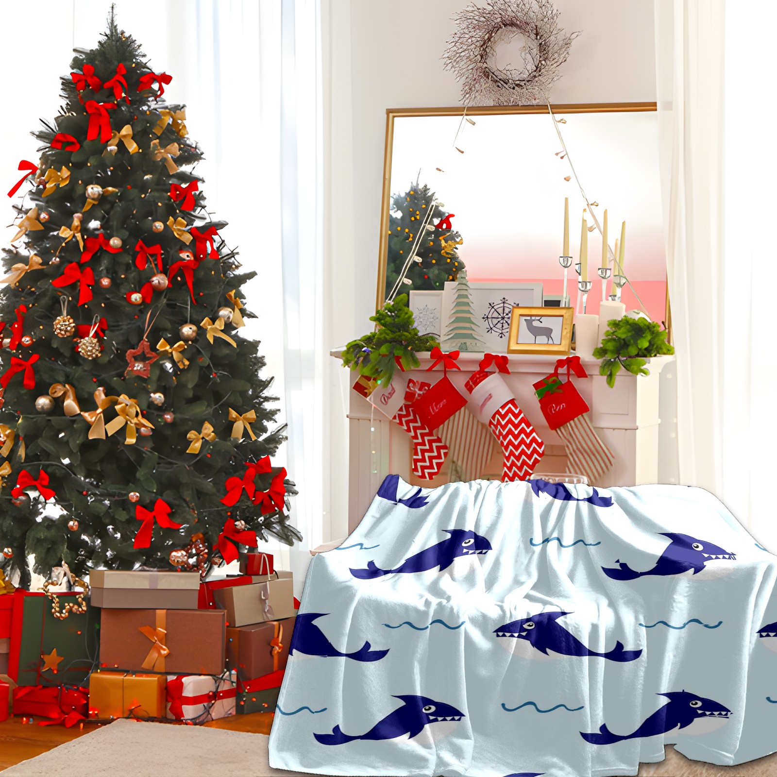 Премиальная фланелевая одеяло Navy Blue Shark Fish