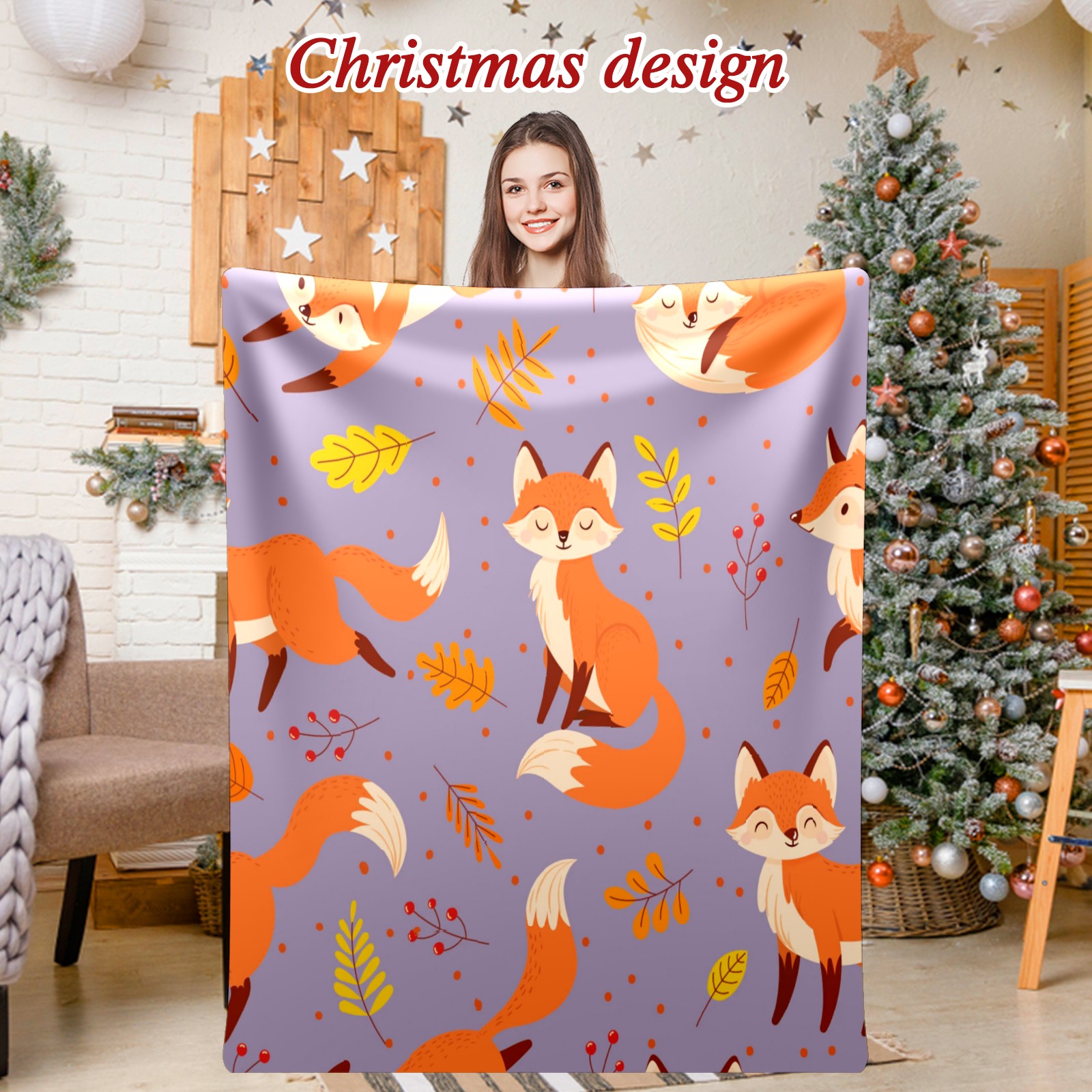 Премиальная фланелевая одеяло Orange Fox