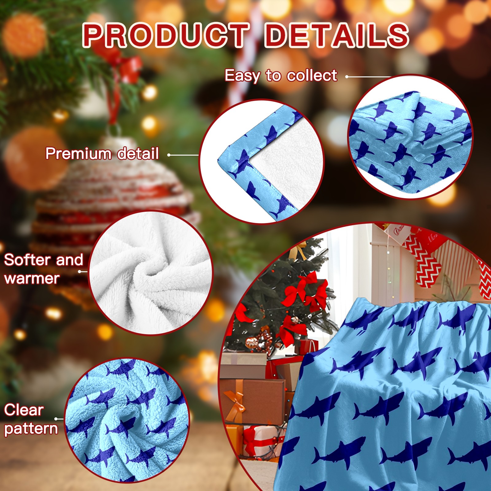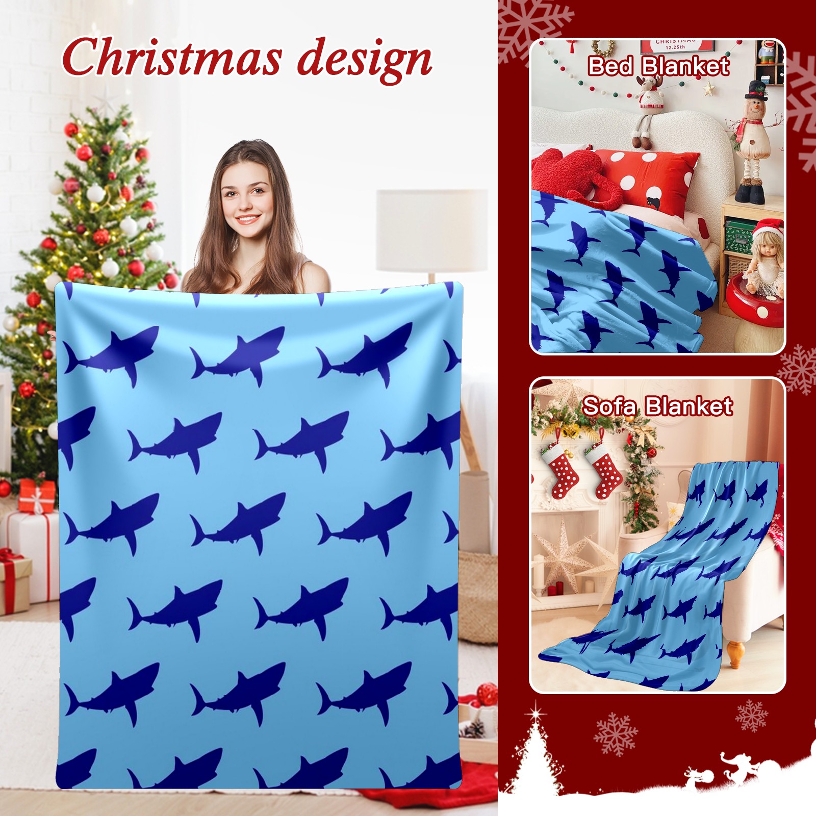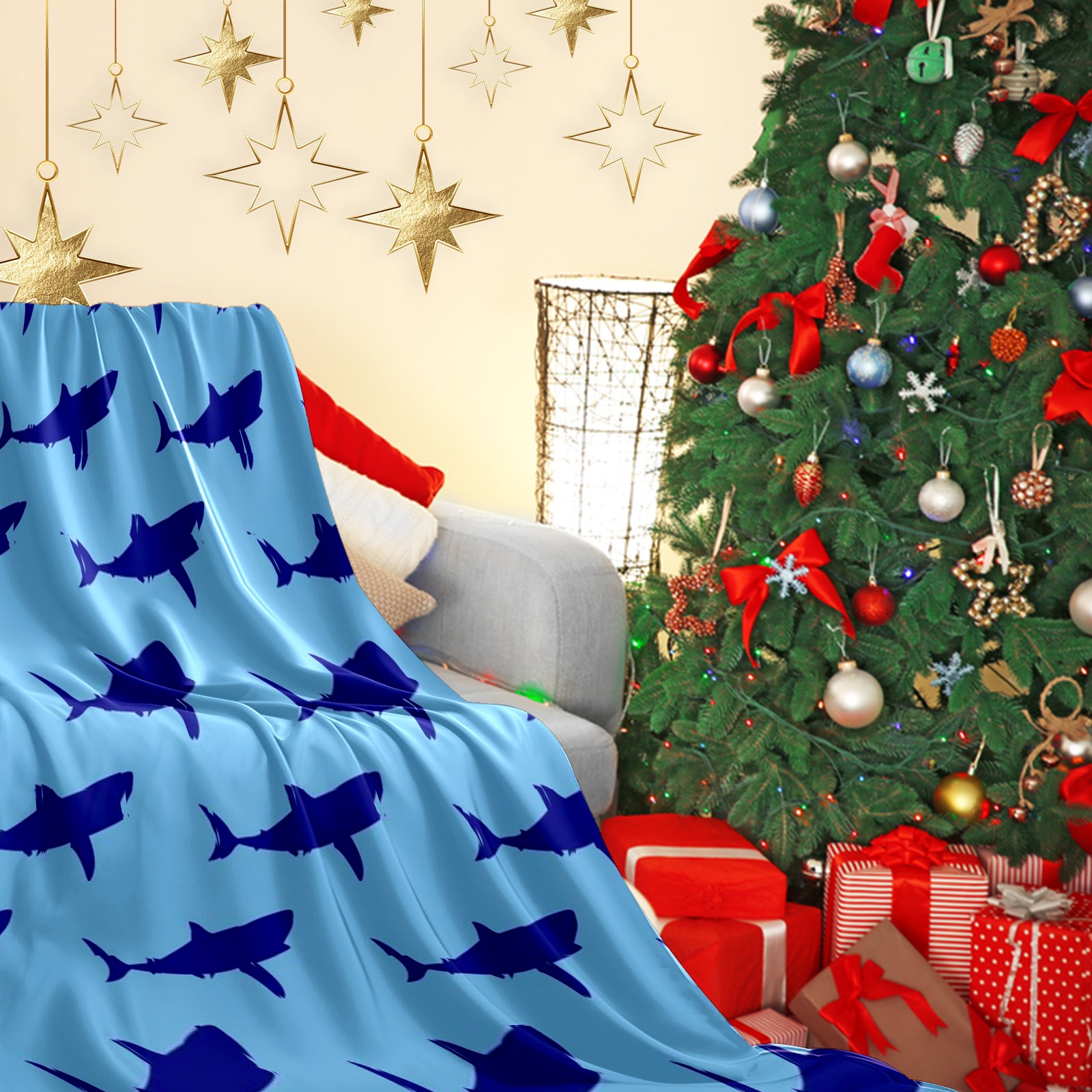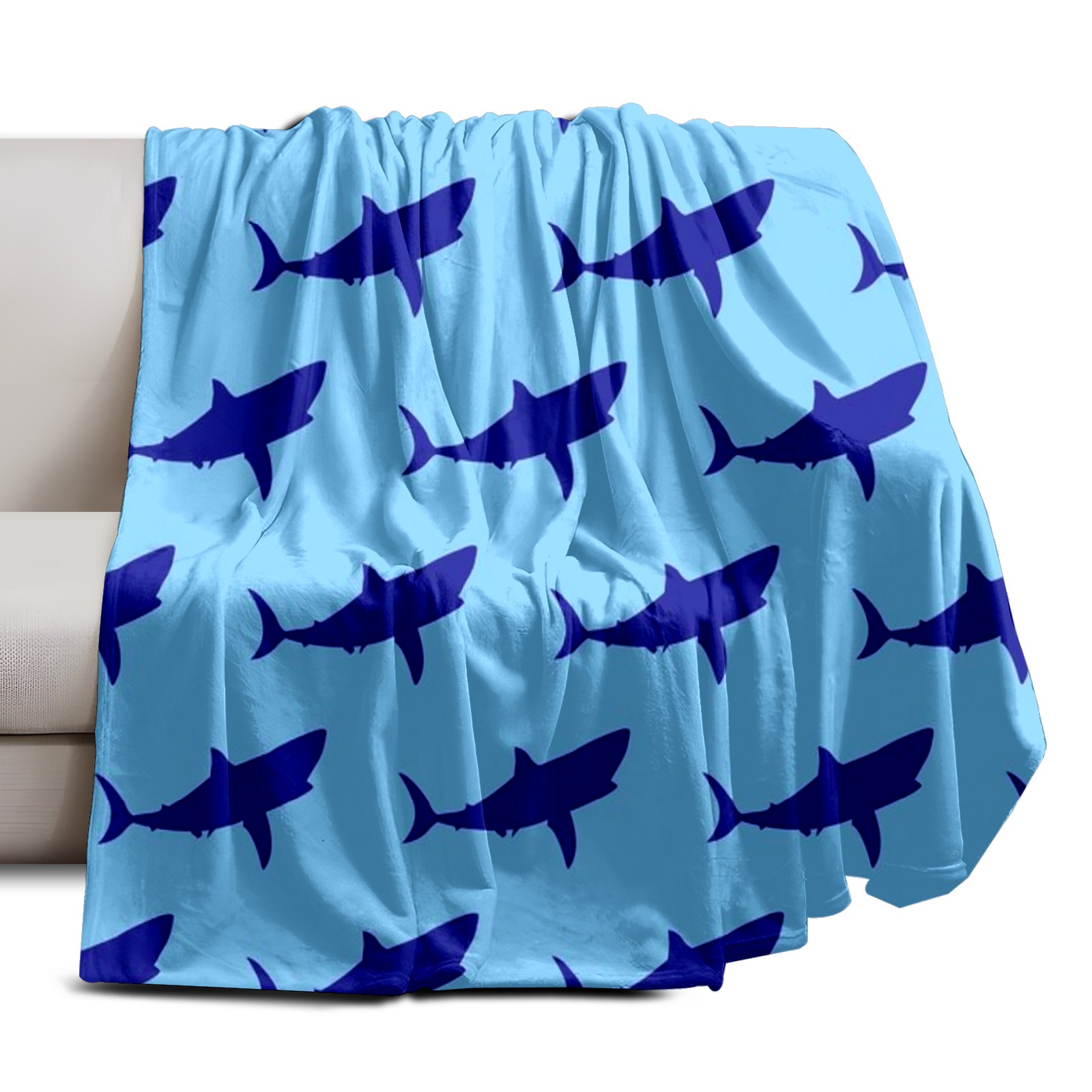 Премиальная фланелевая одеяло Navy Blue Shark Print