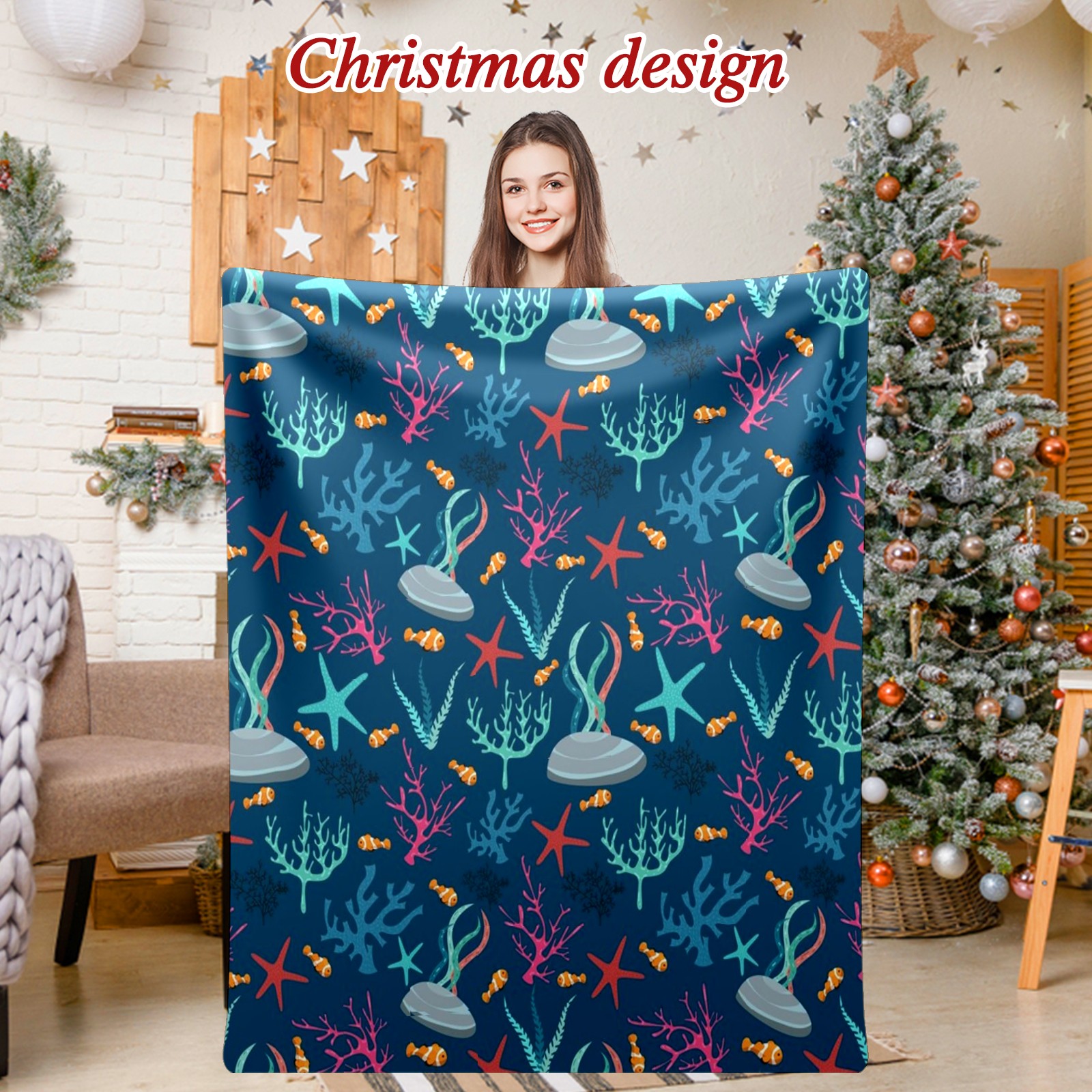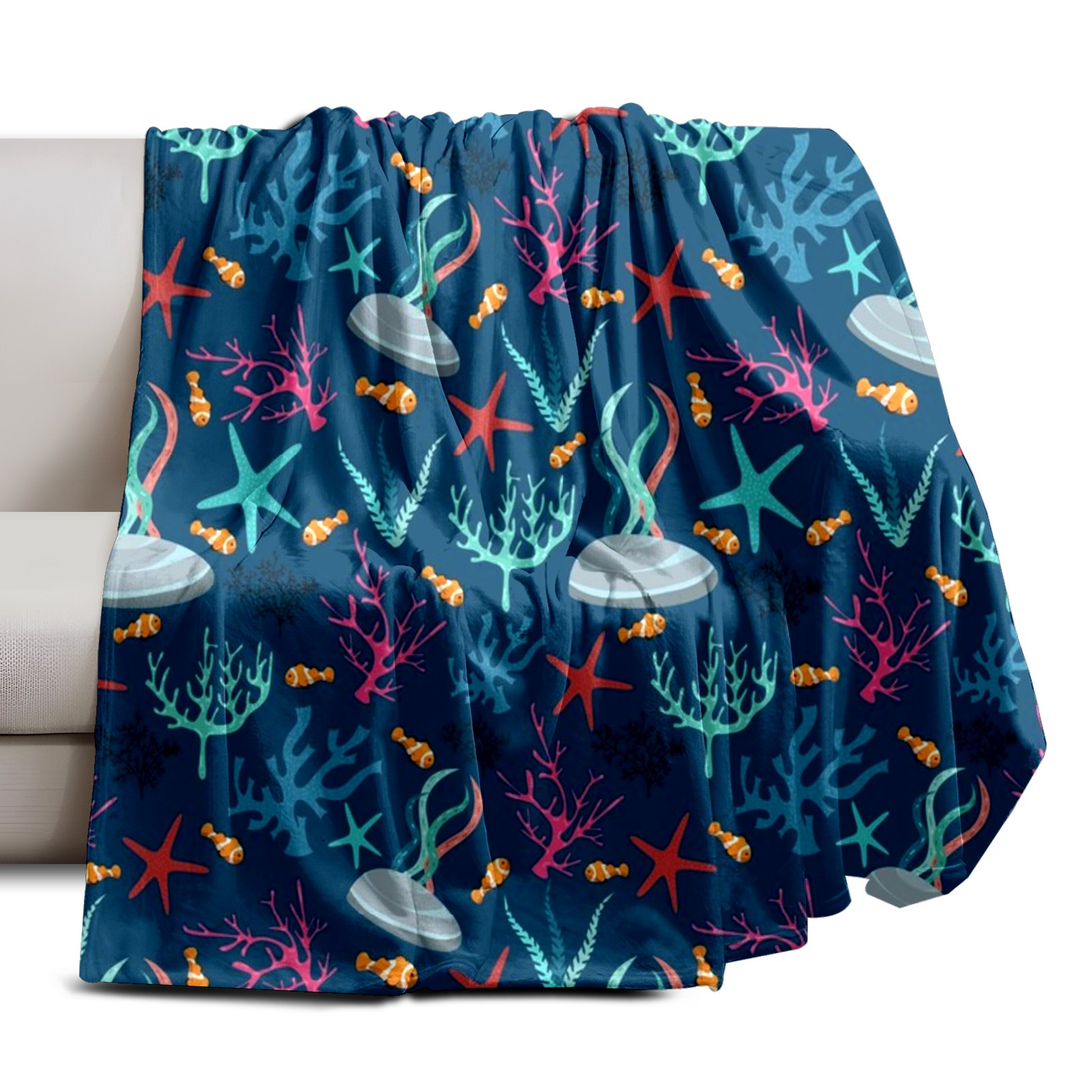 Премиальная фланелевая одеяло Dark Blue Ocean Animals