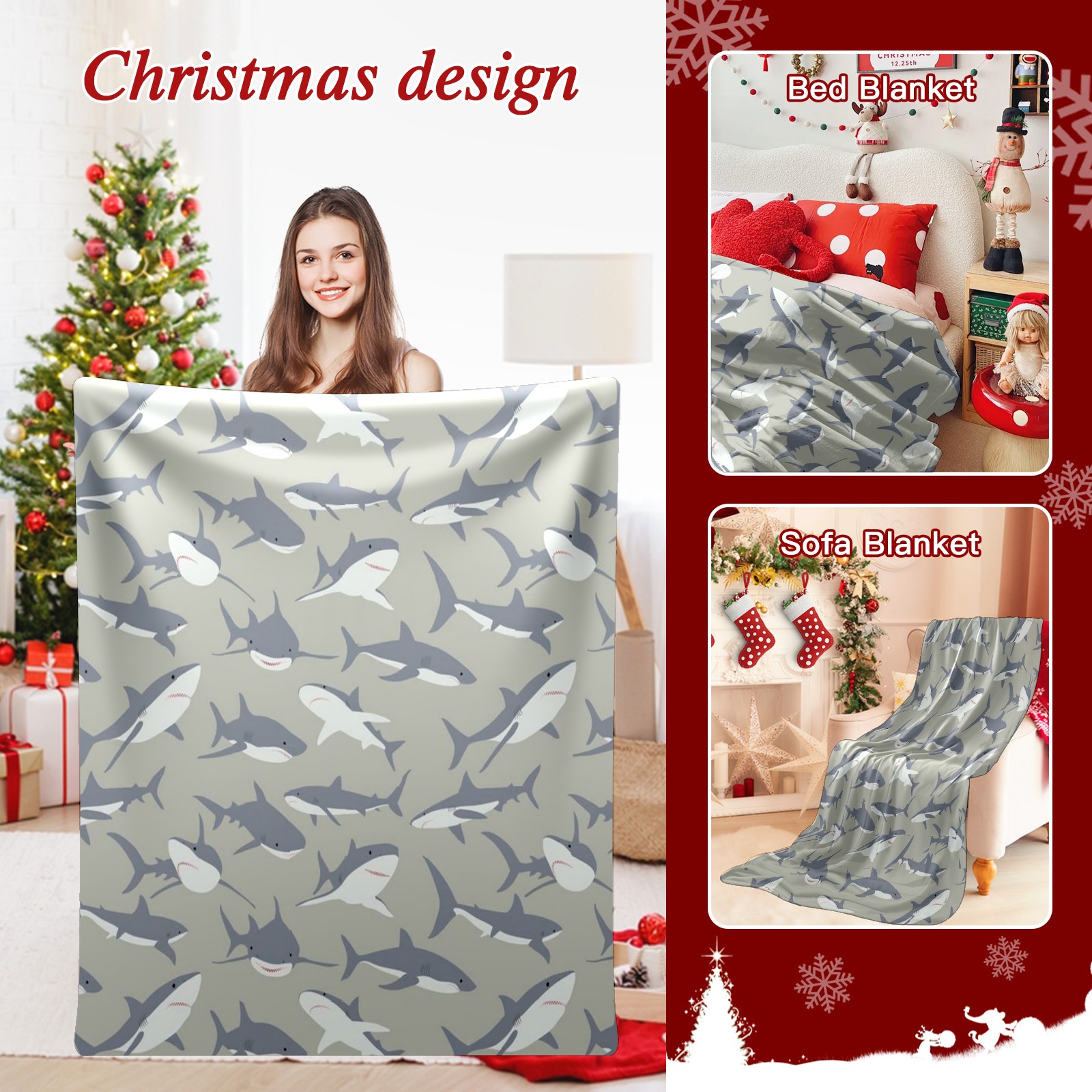 Премиальная фланелевая одеяло Gray Sharks Animals