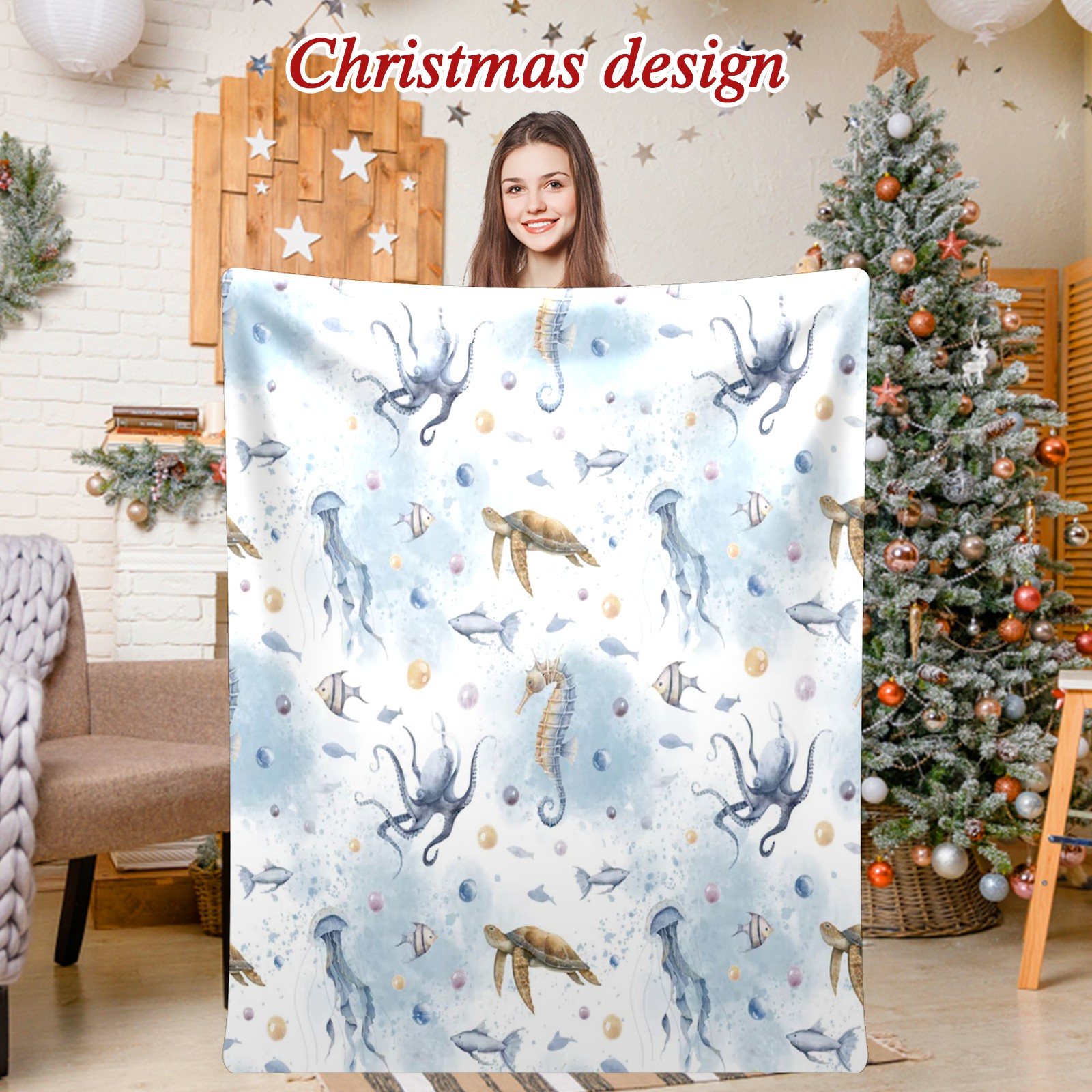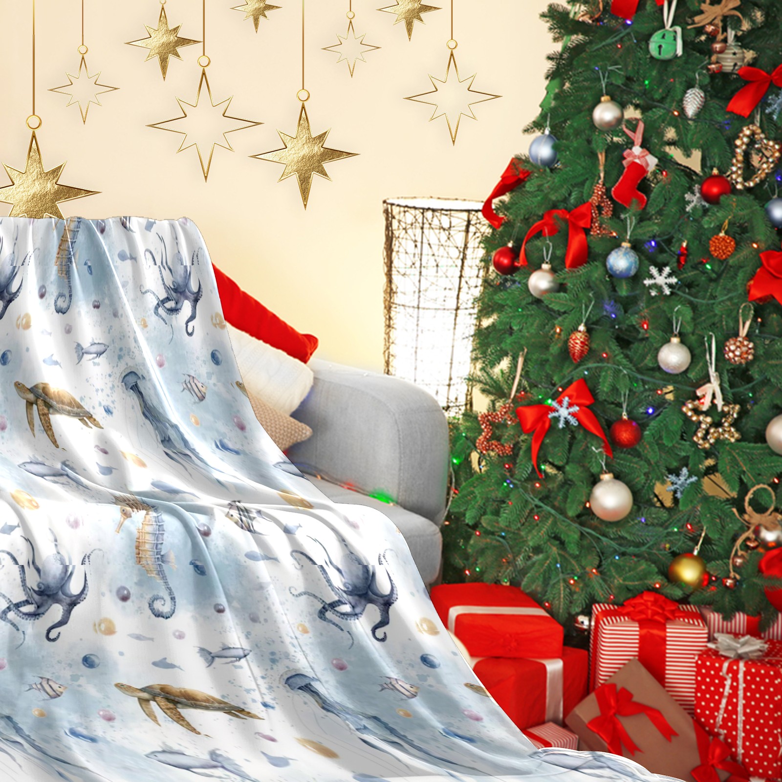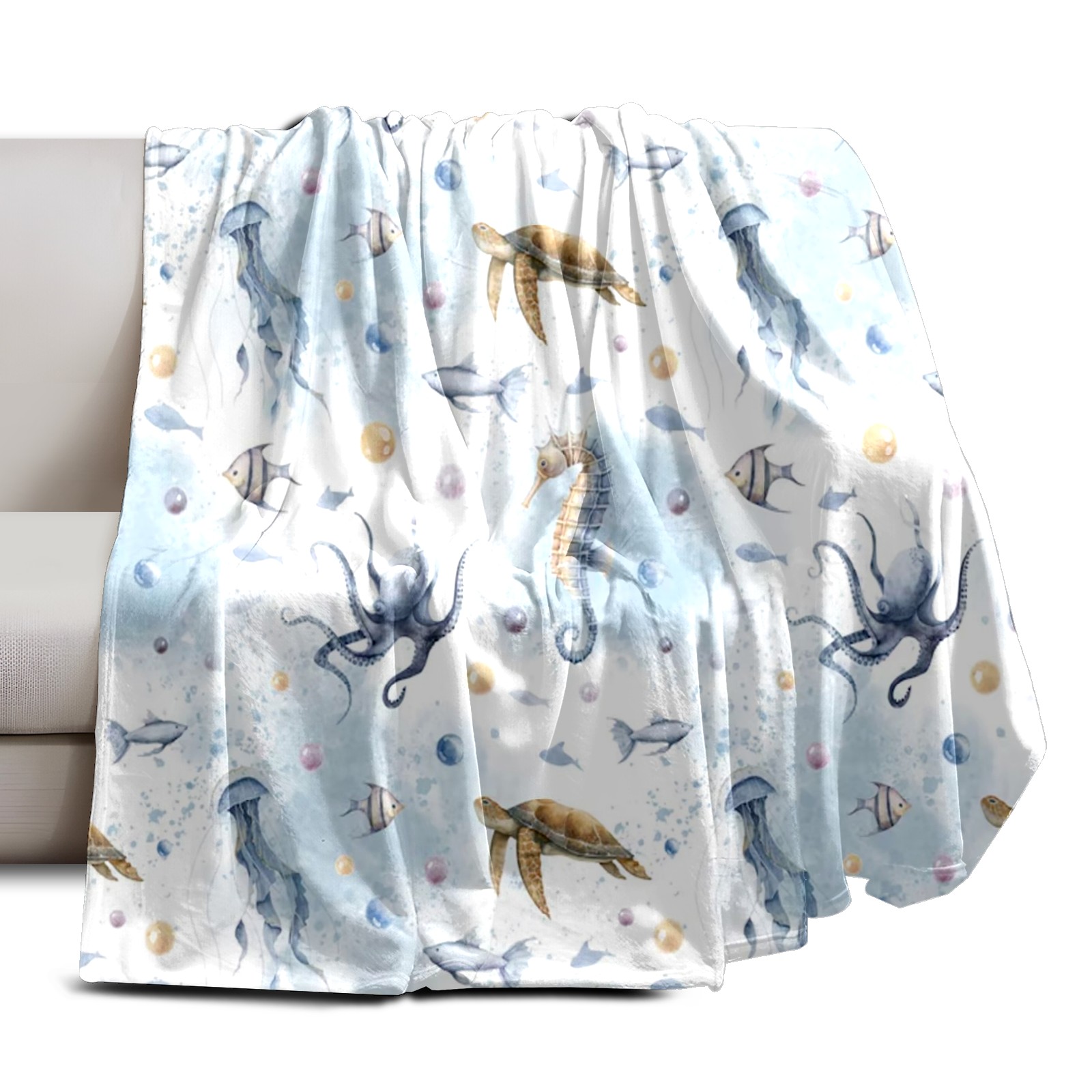 Премиальная фланелевая одеяло Colored Sea Turtle Fishes