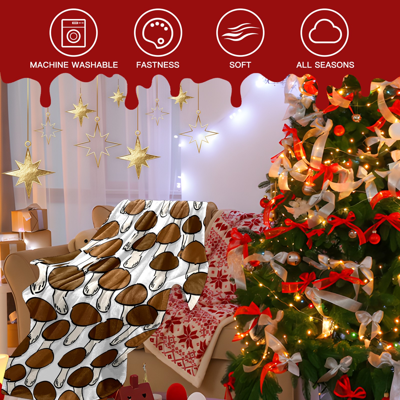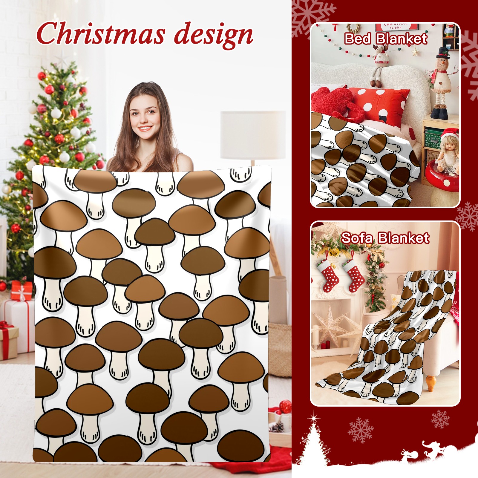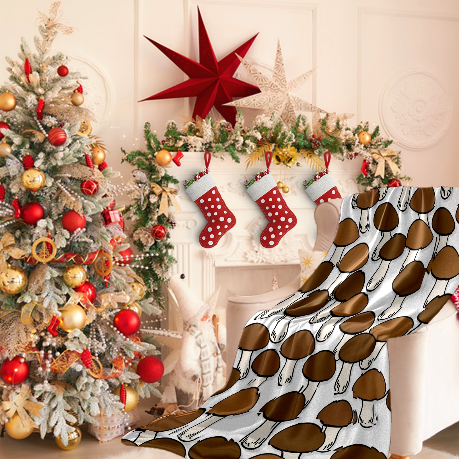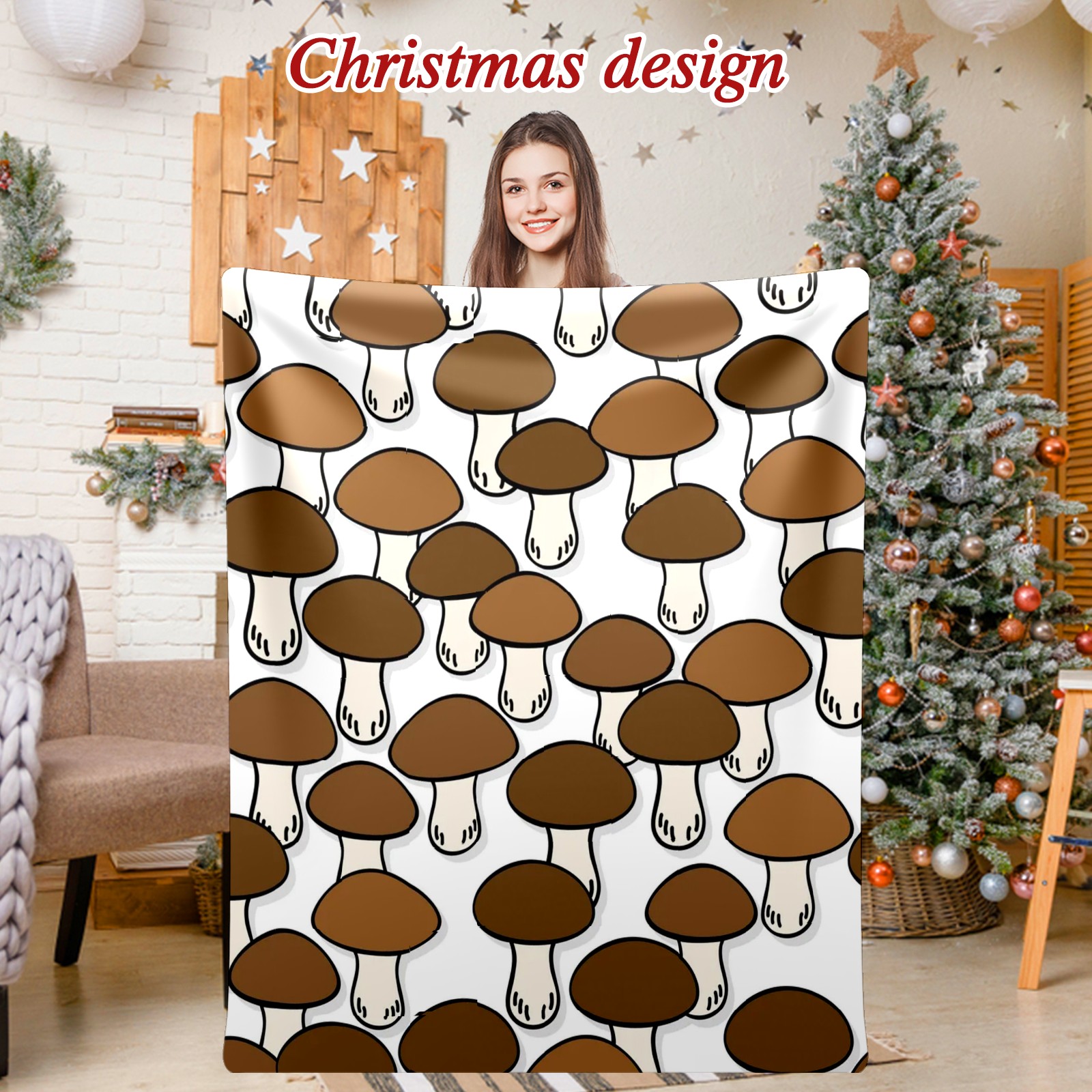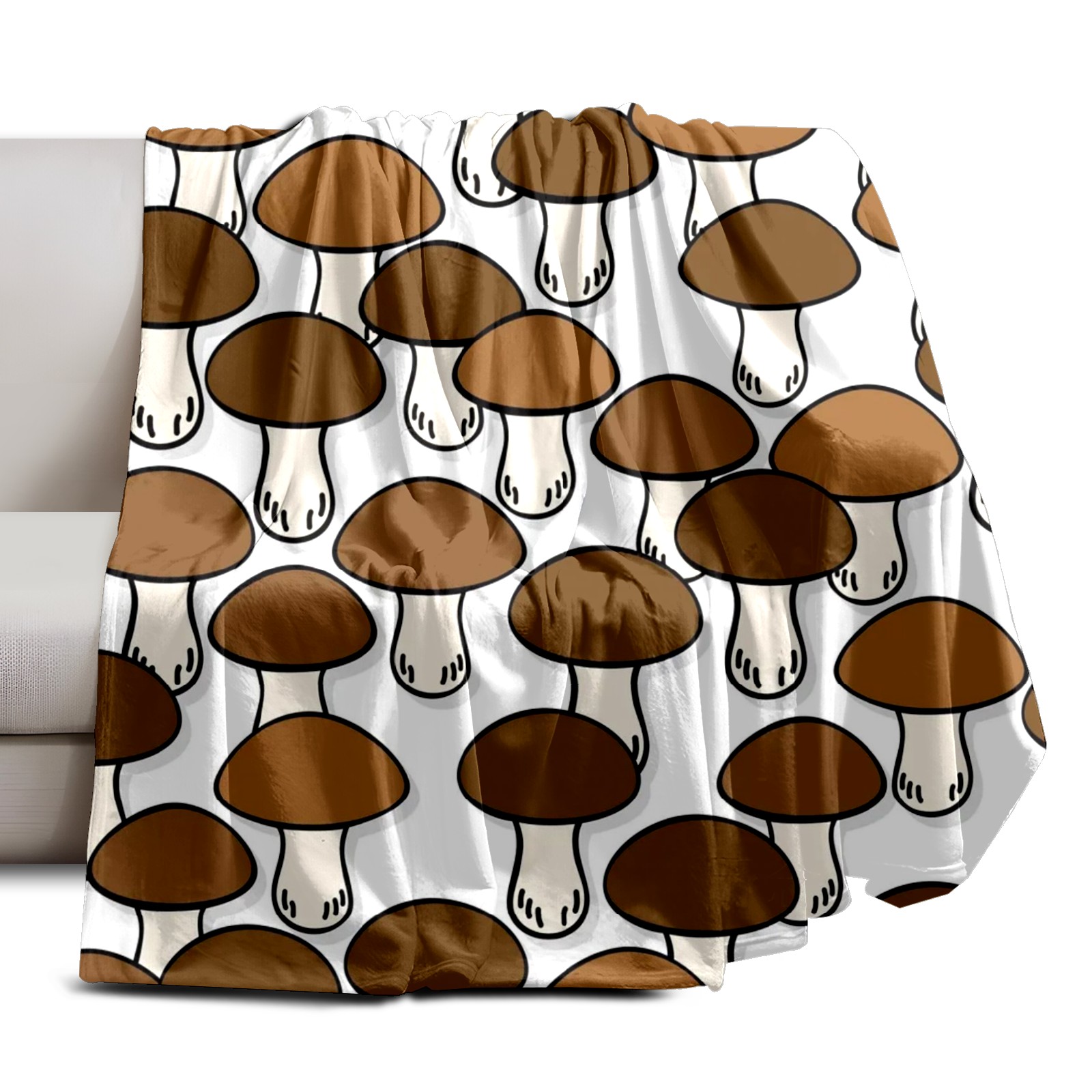 Премиальная фланелевая одеяло Brown Mushroom Print