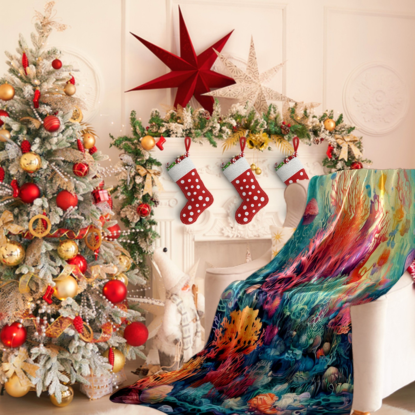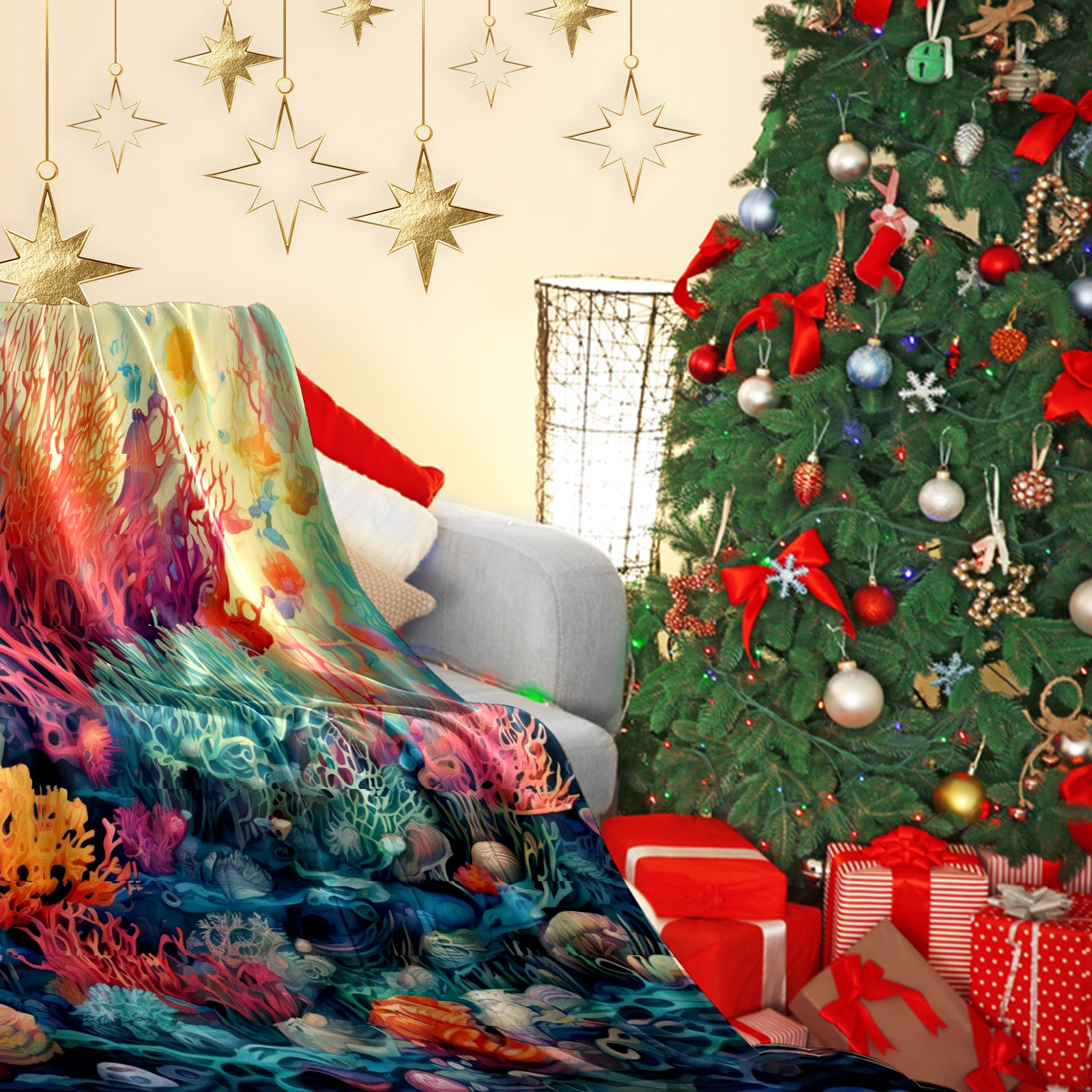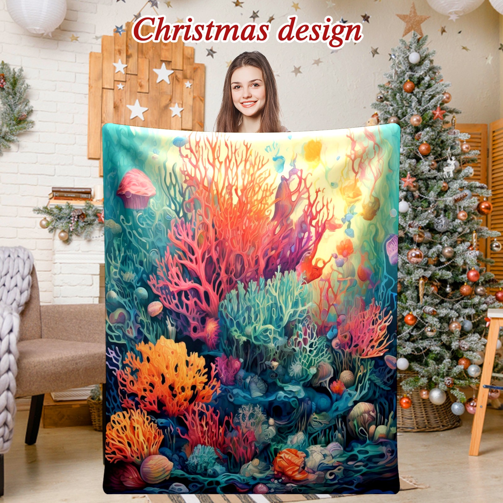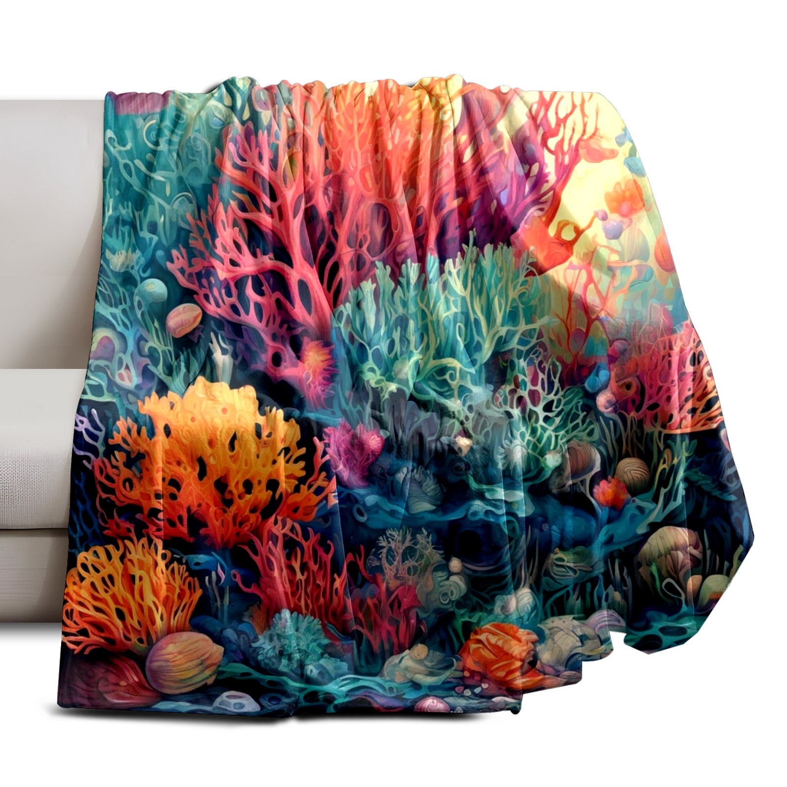 Премиальная фланелевая одеяло Colorful Ocean Plant