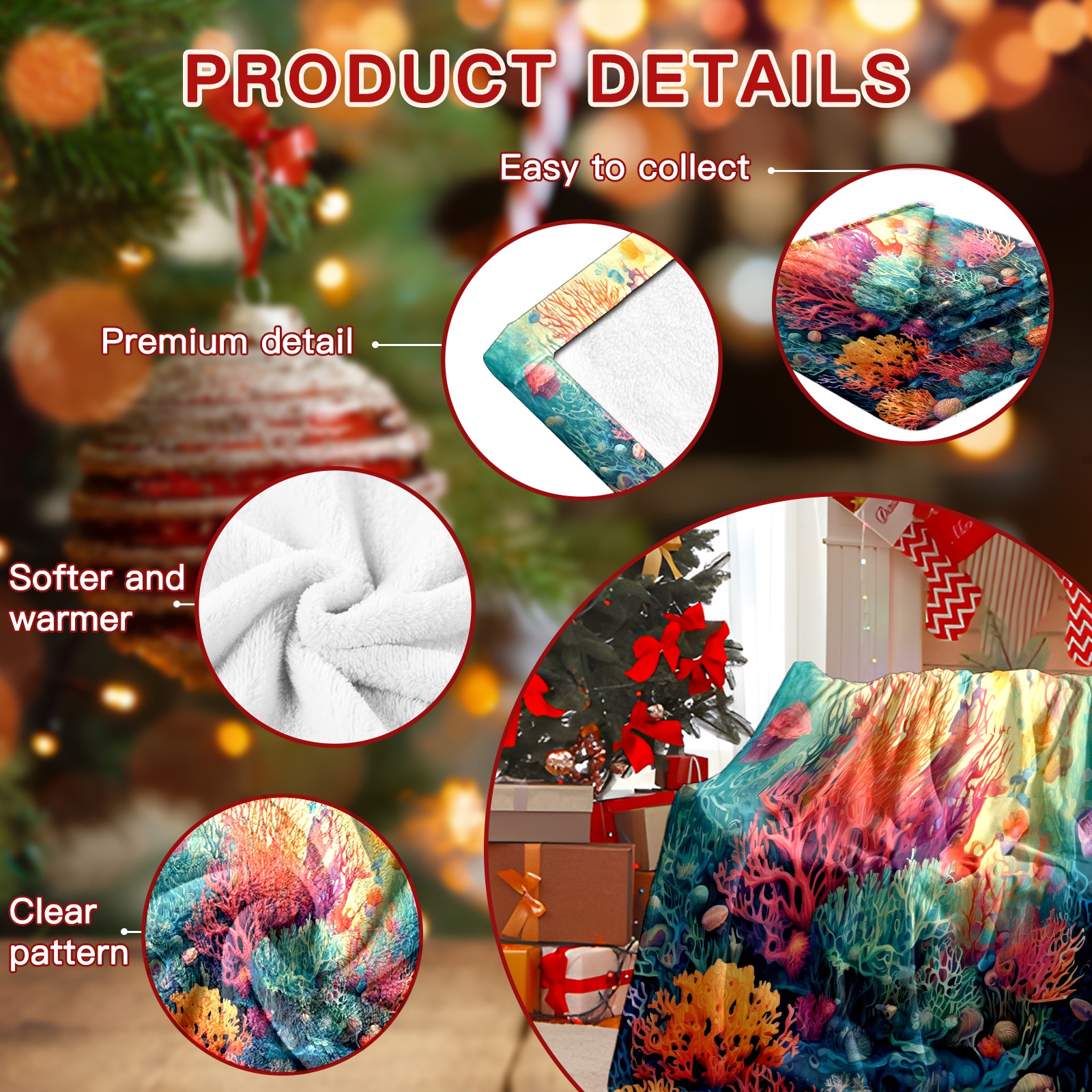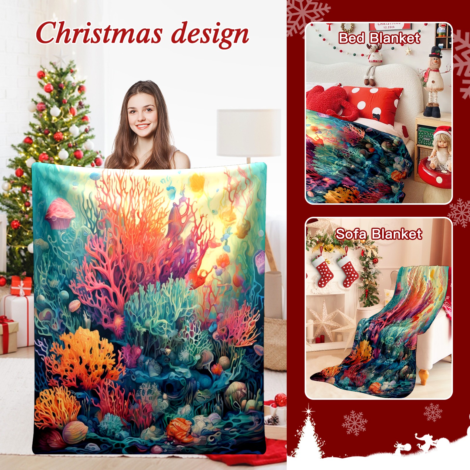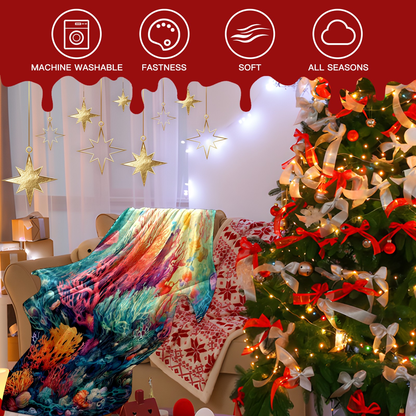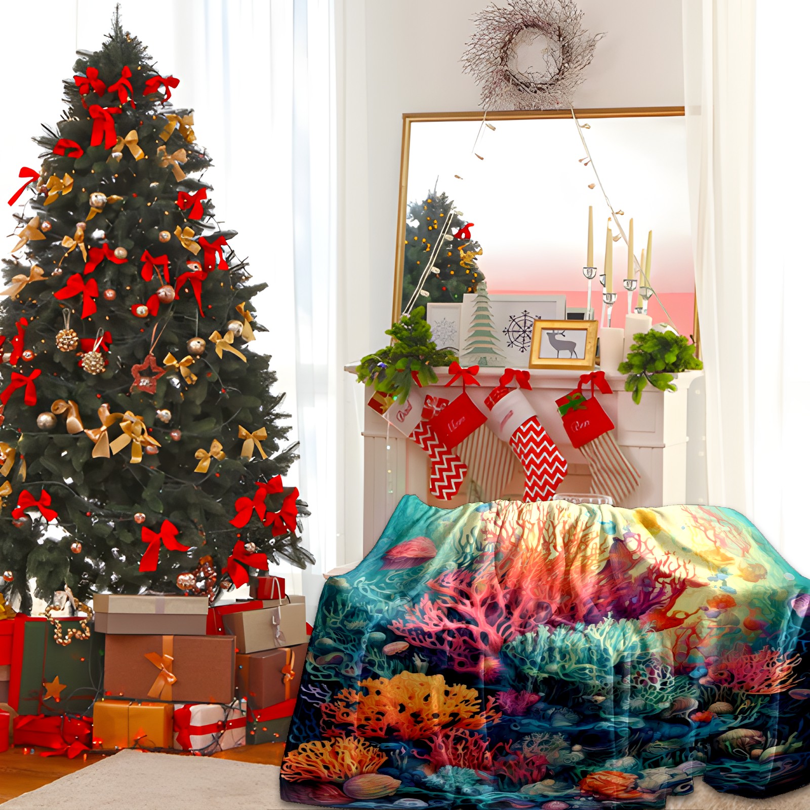 Премиальная фланелевая одеяло Colorful Ocean Plant