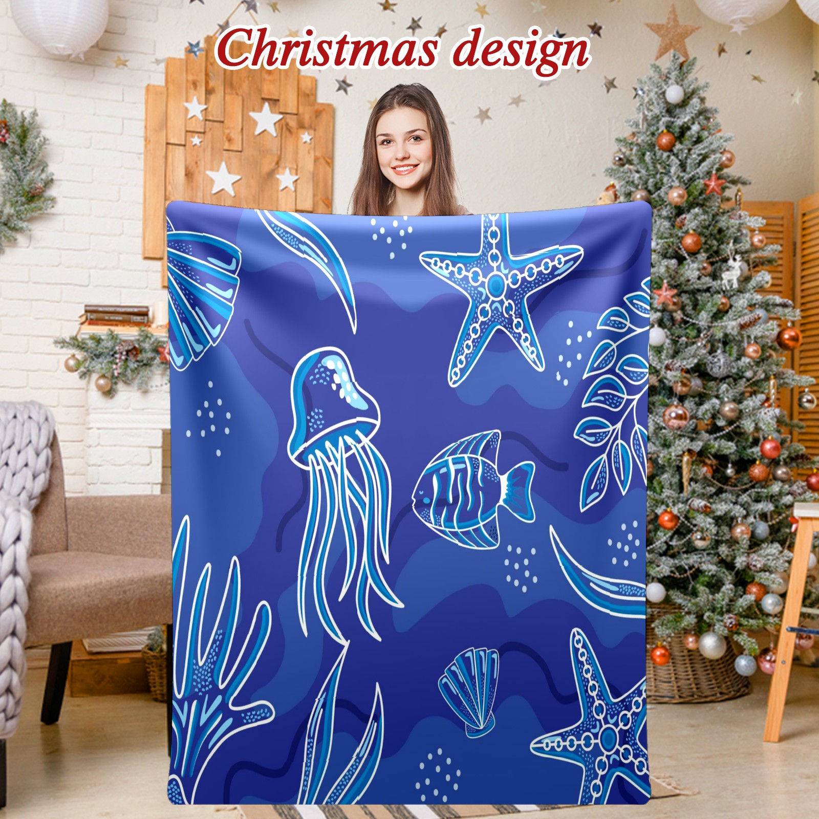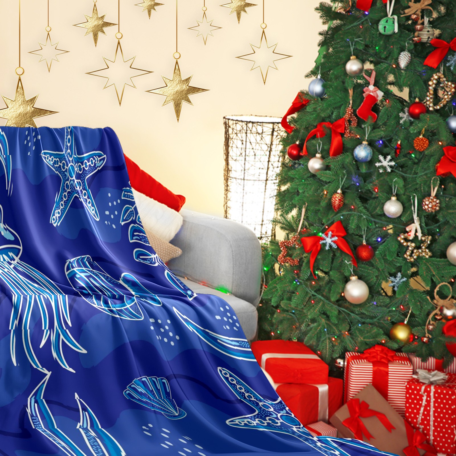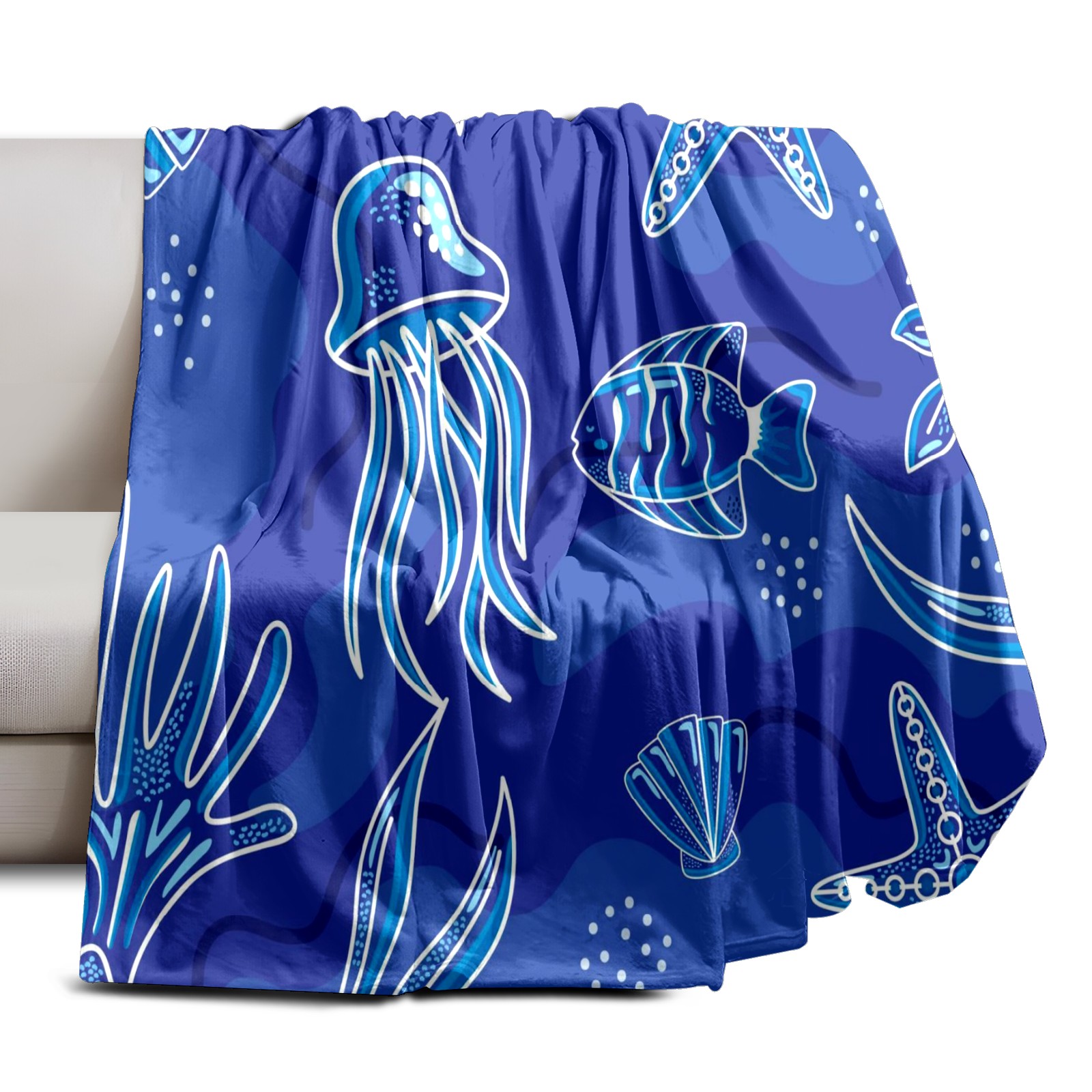 Премиальная фланелевая одеяло Blue Sea Life Animals