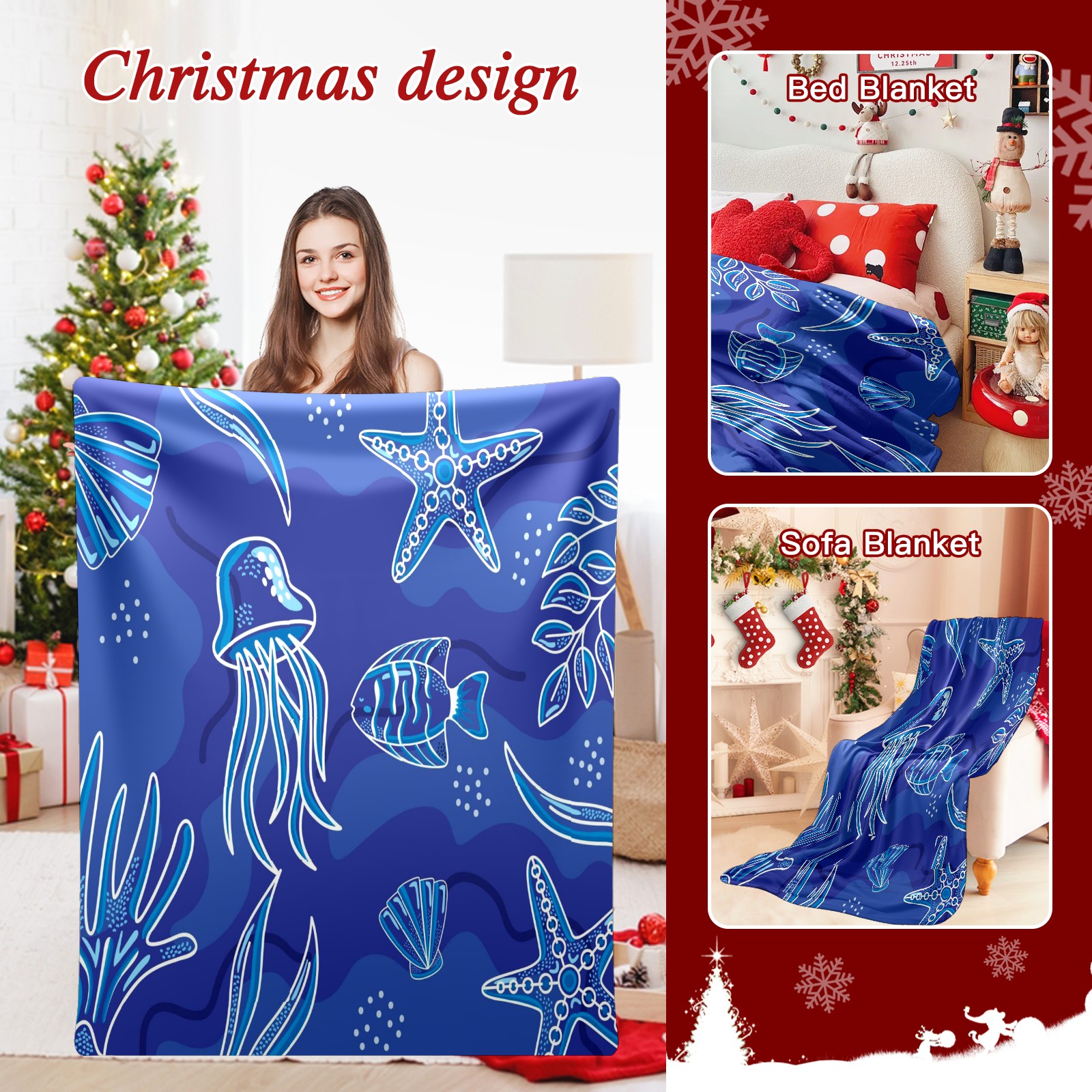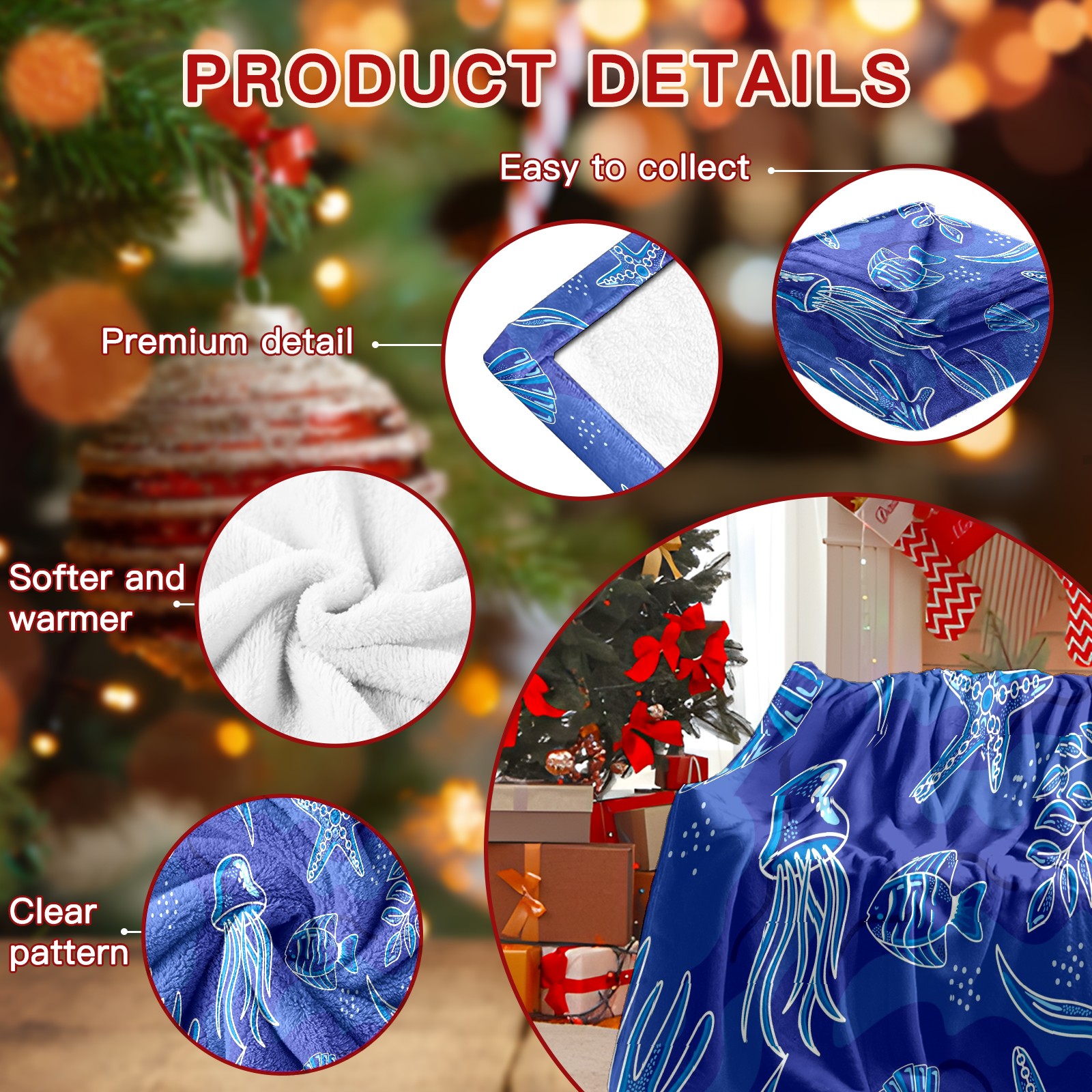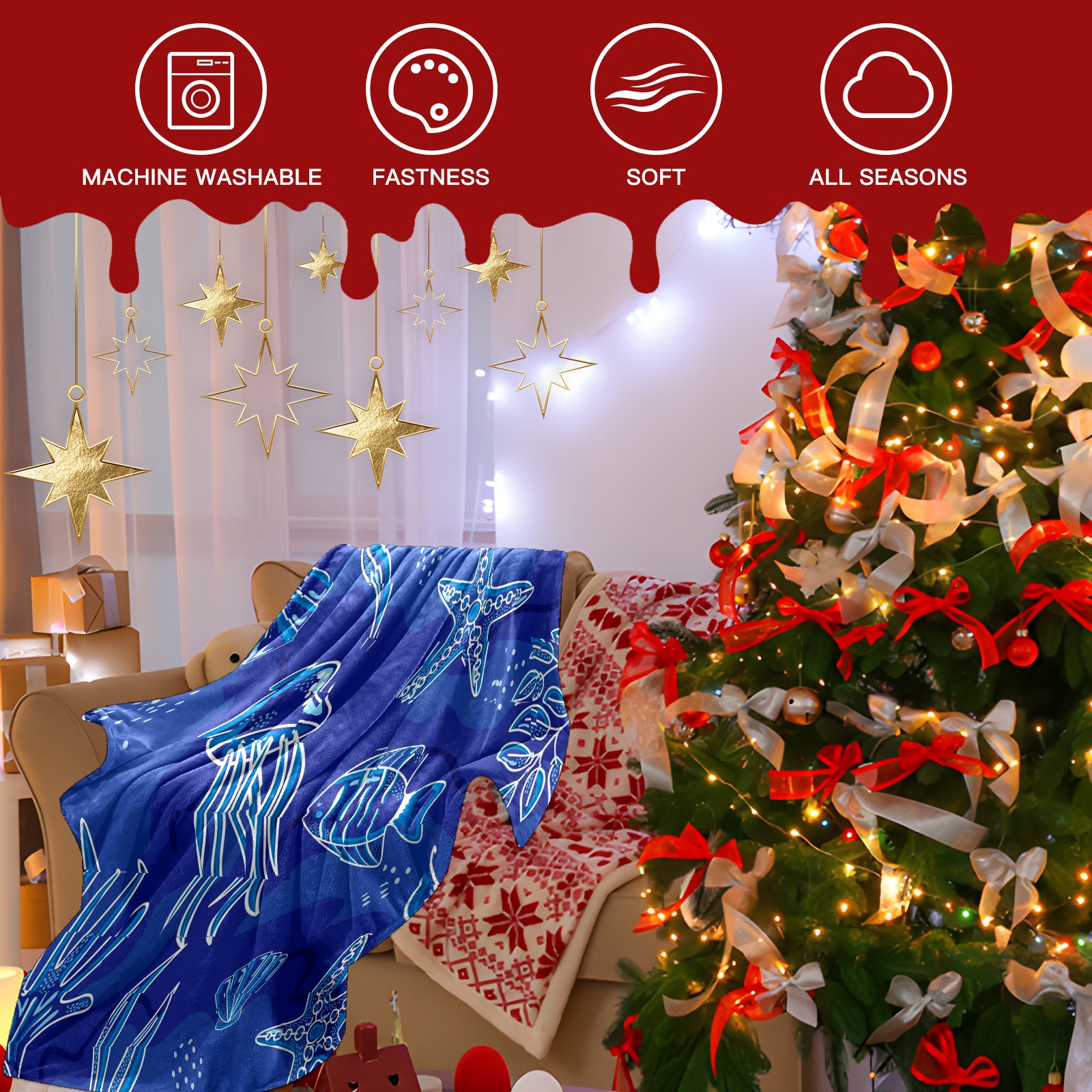 Премиальная фланелевая одеяло Blue Sea Life Animals