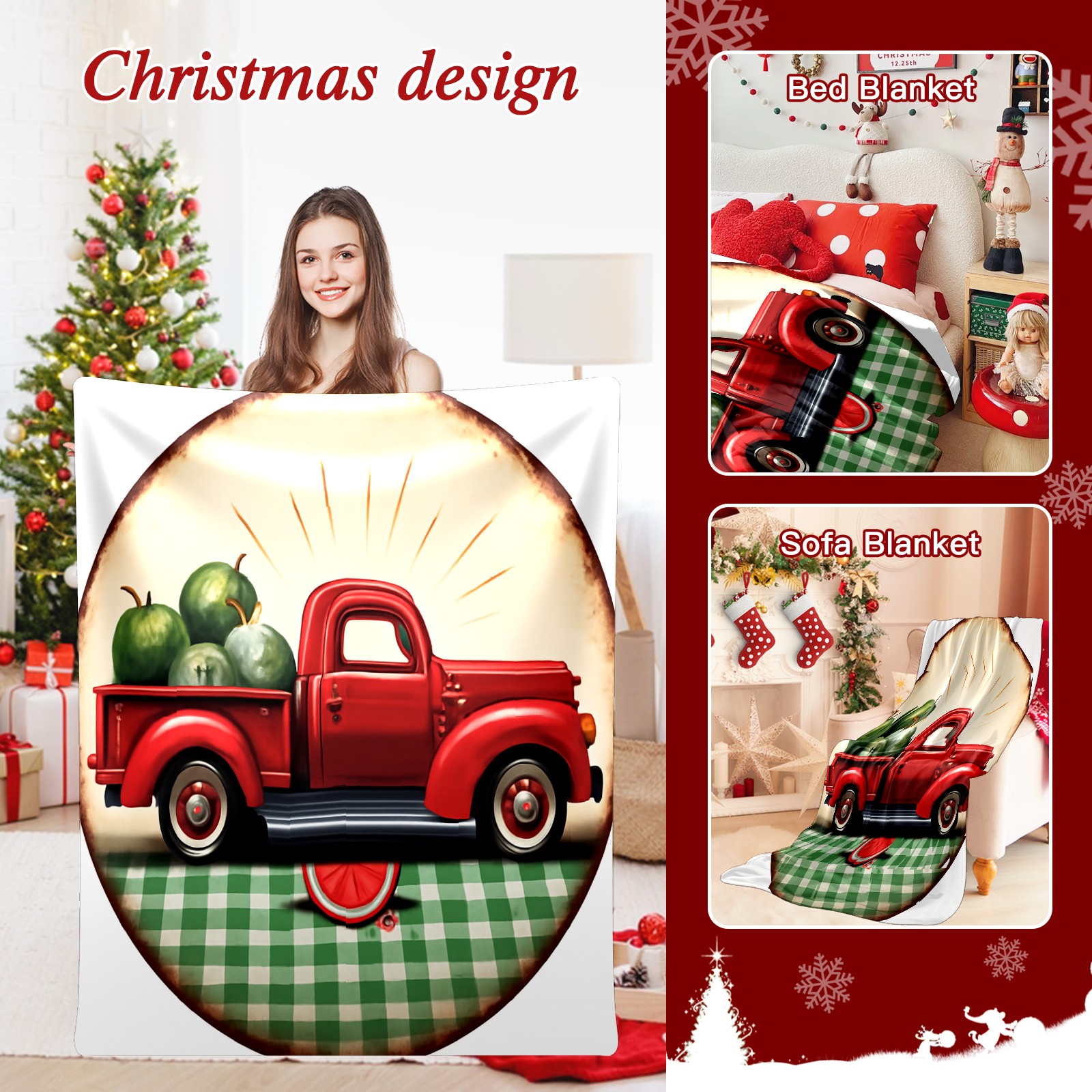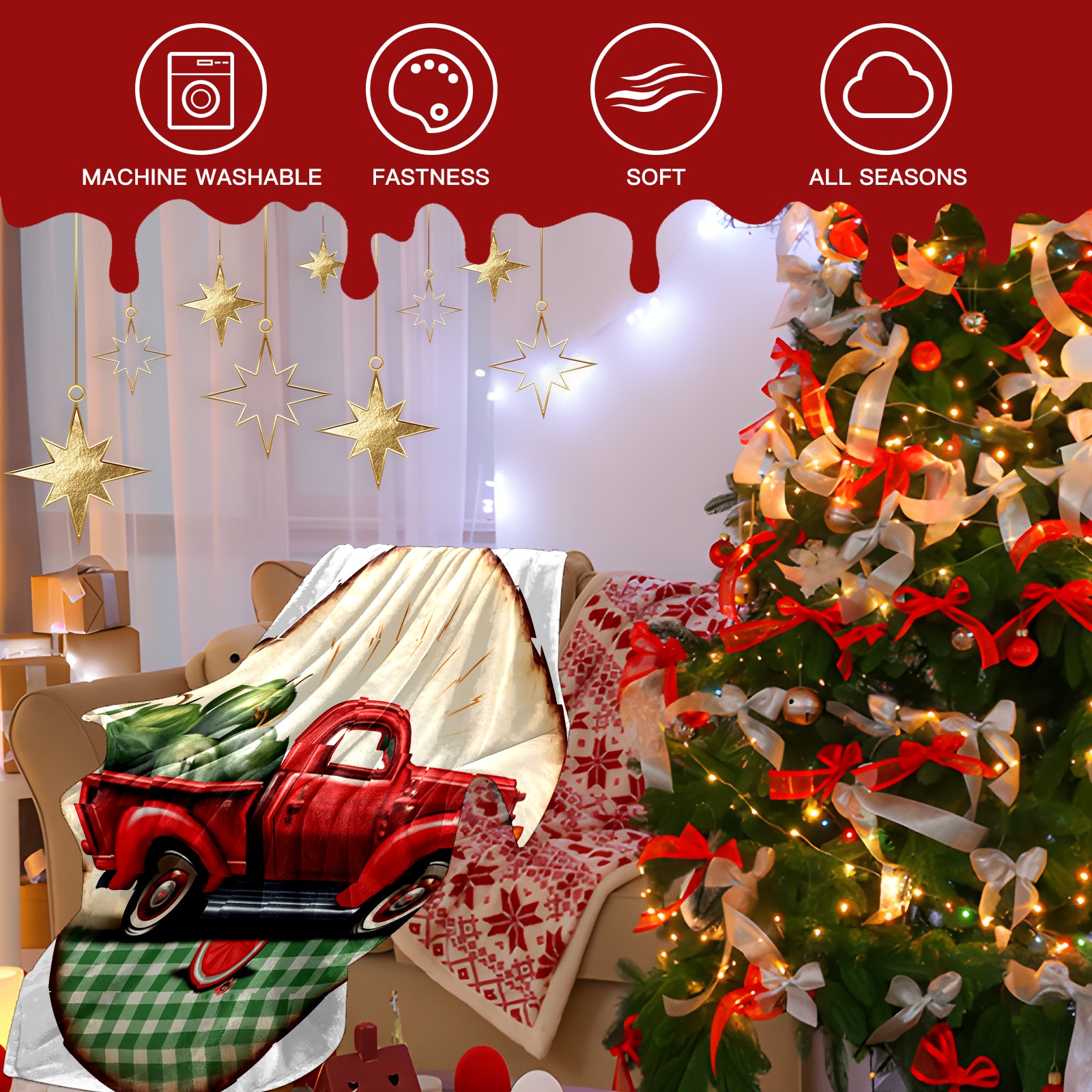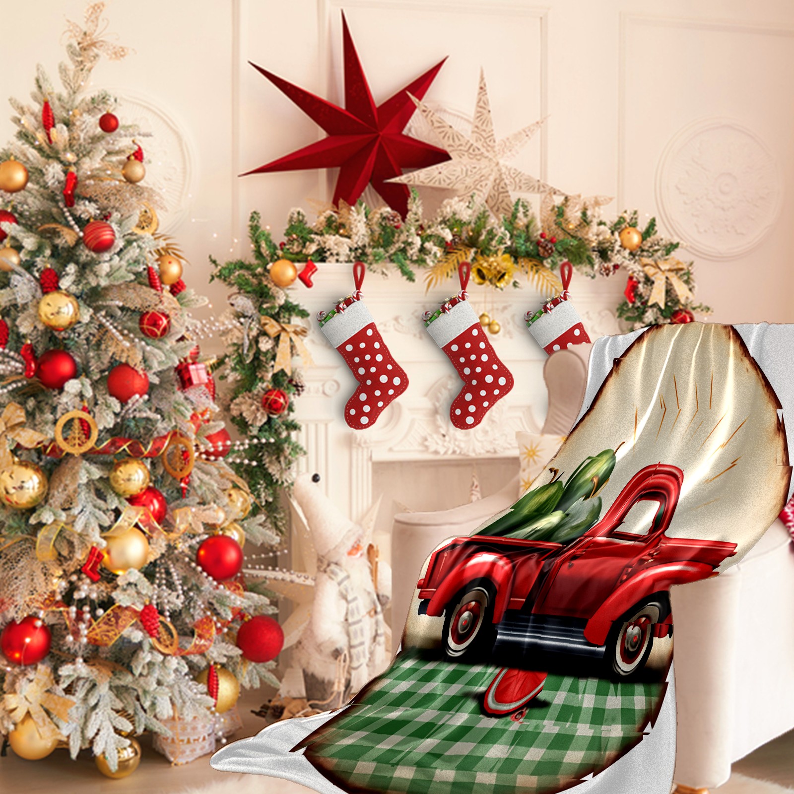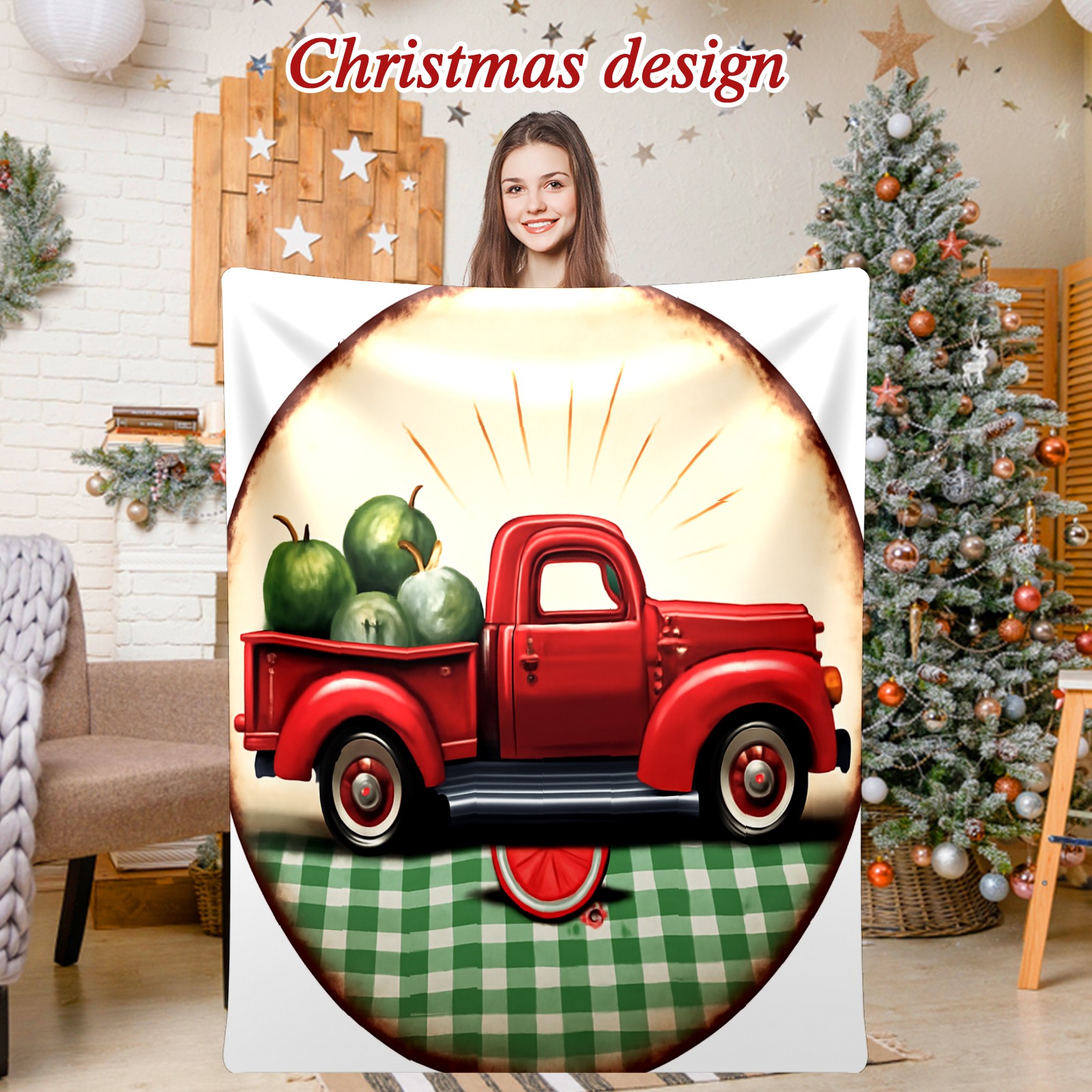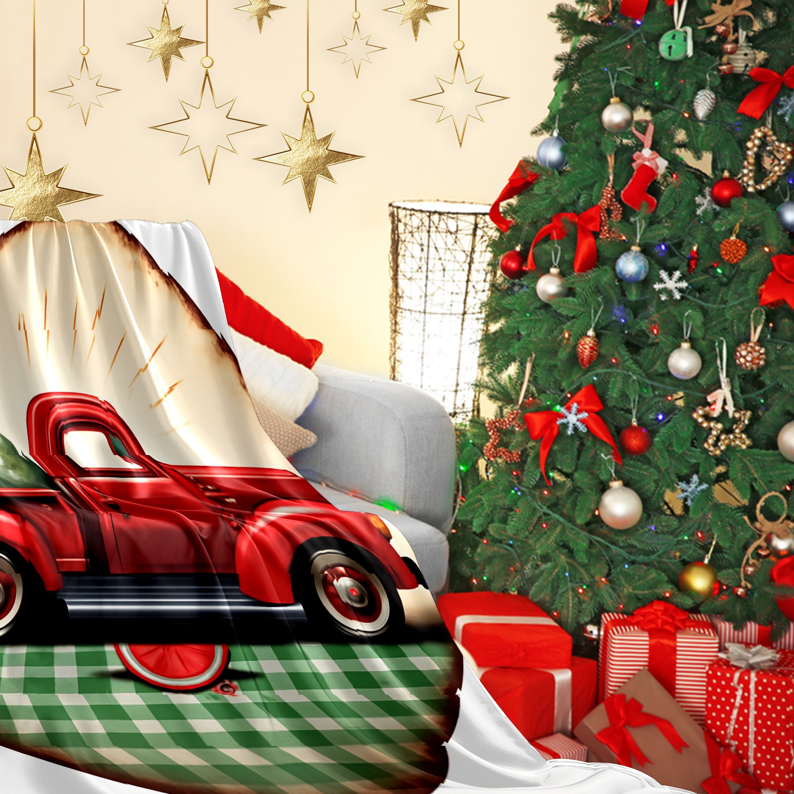 Премиальная фланелевая одеяло Red Truck