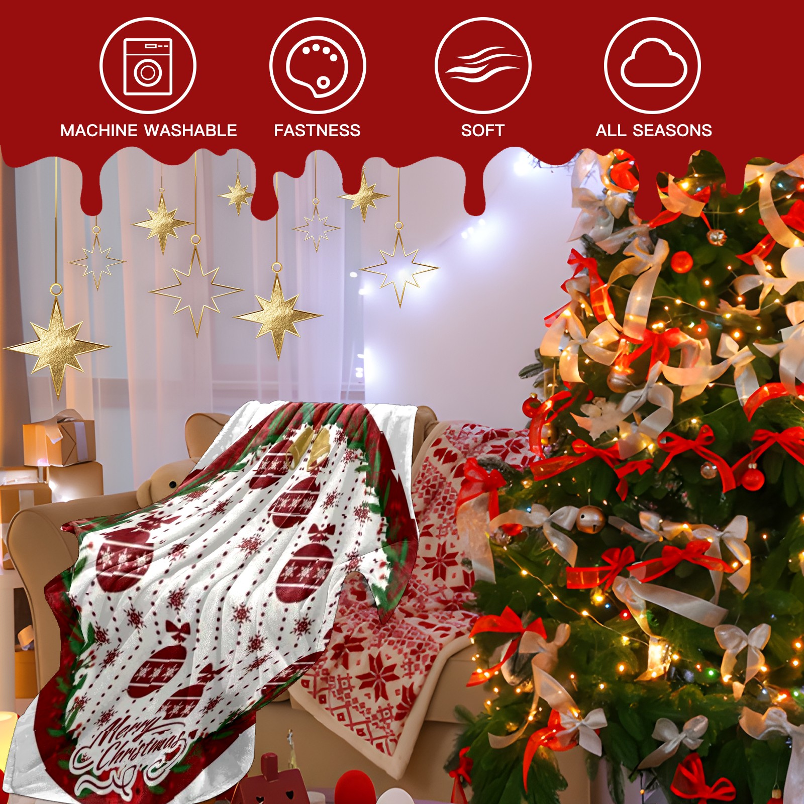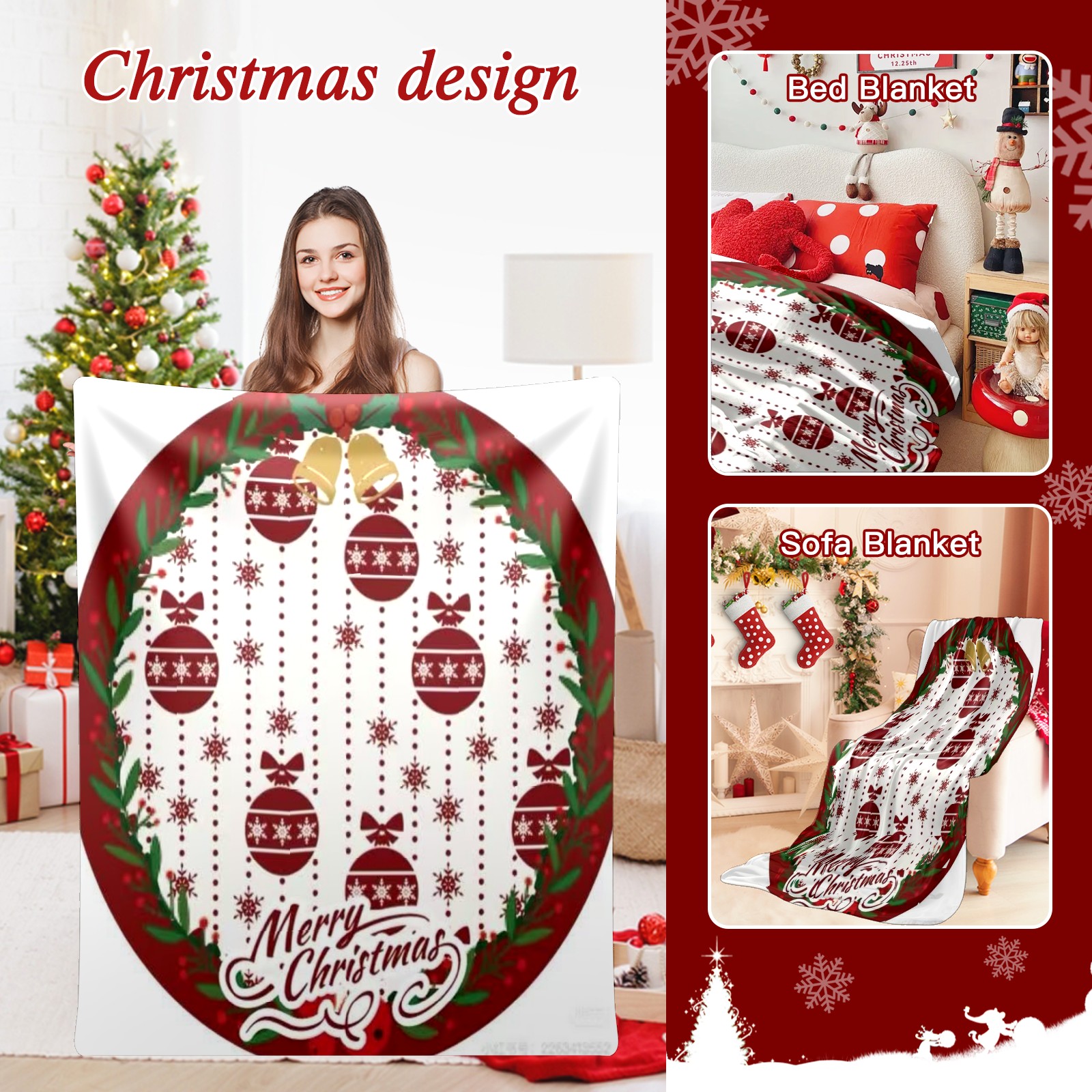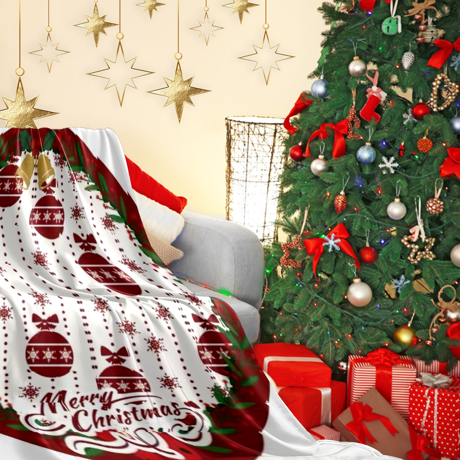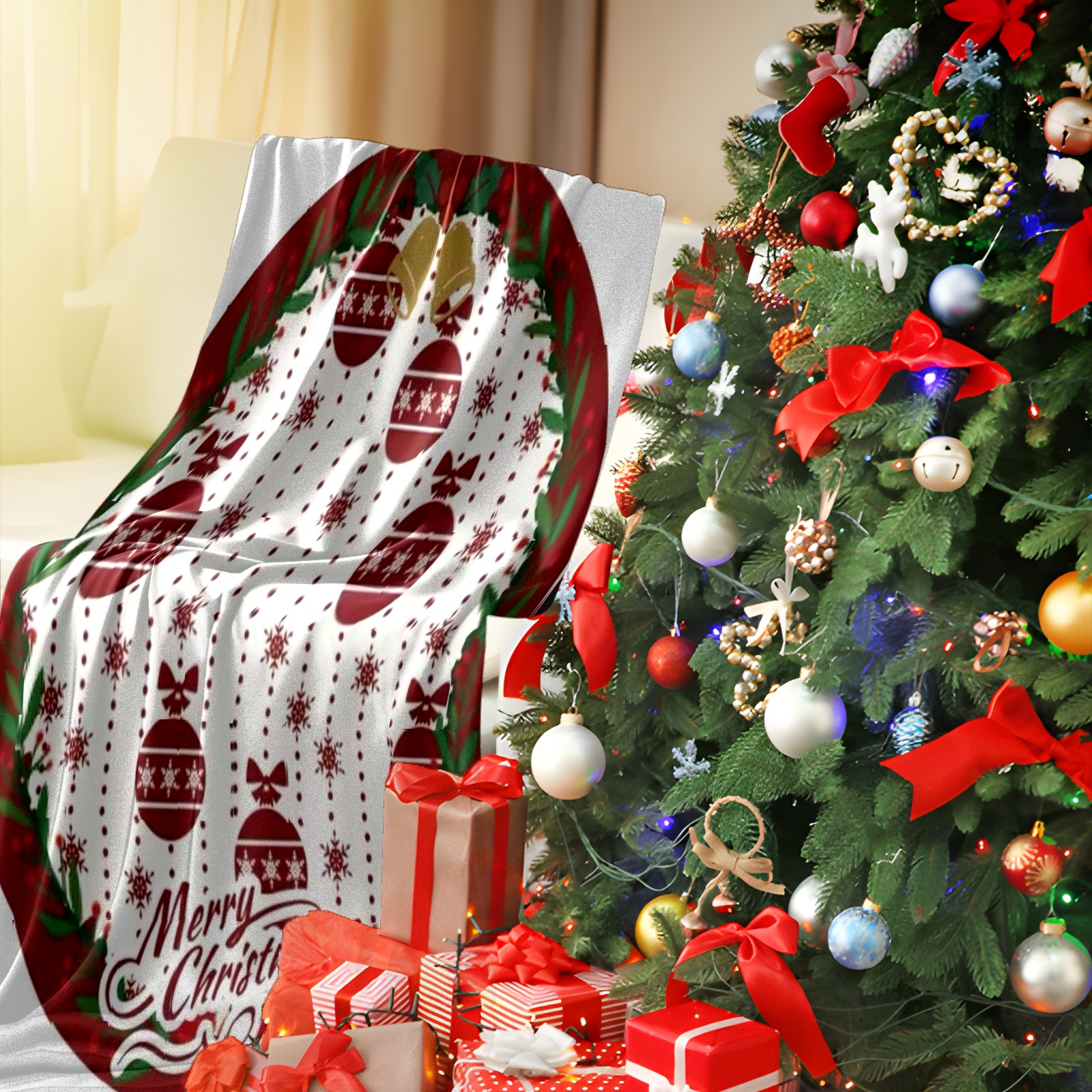 Премиальная фланелевая одеяло Ornament Cheer