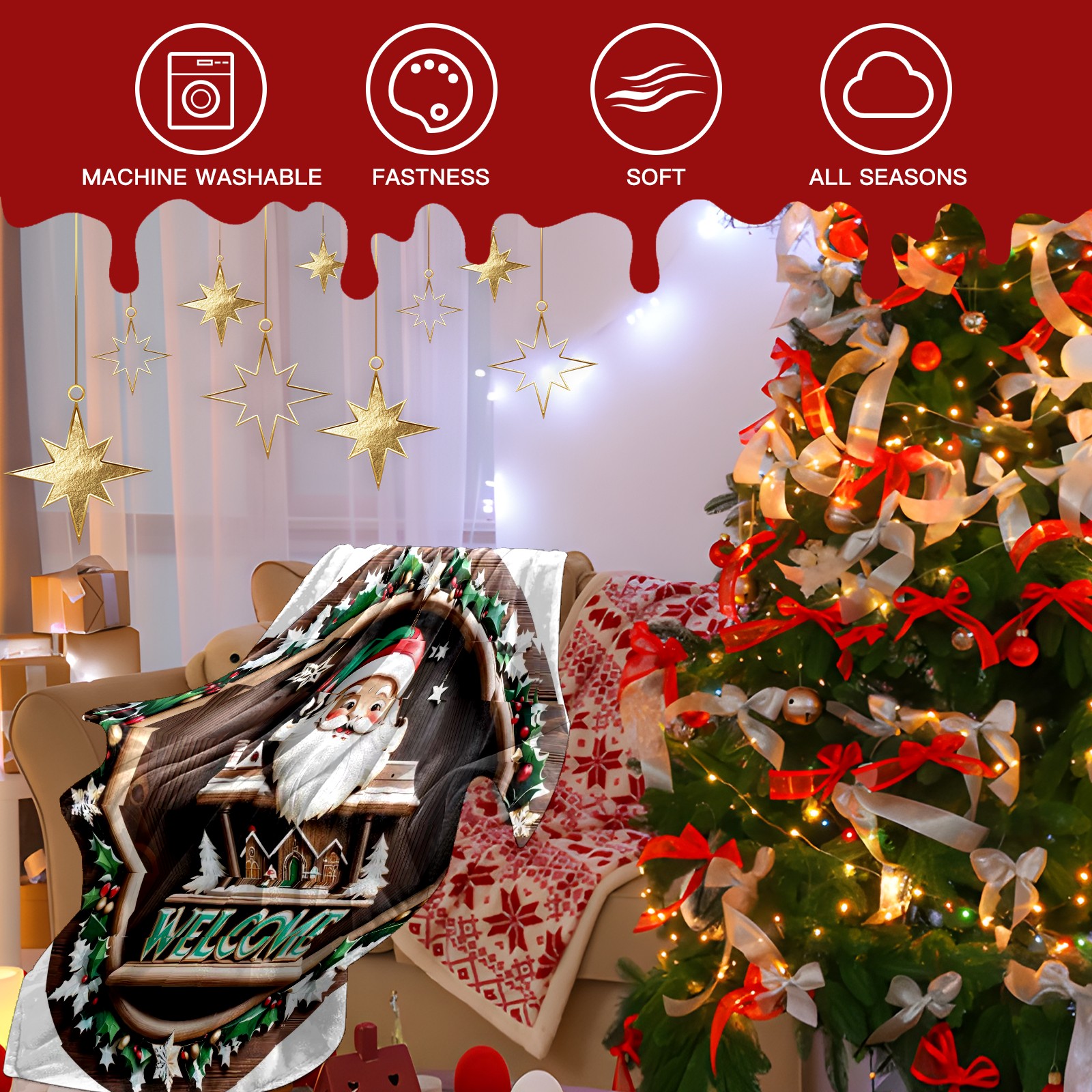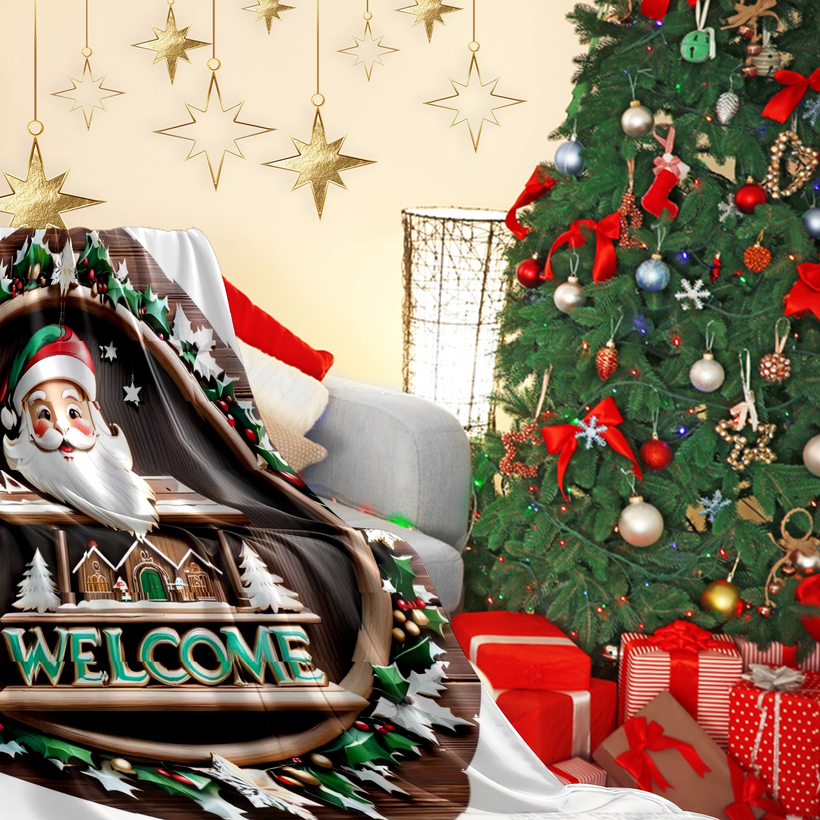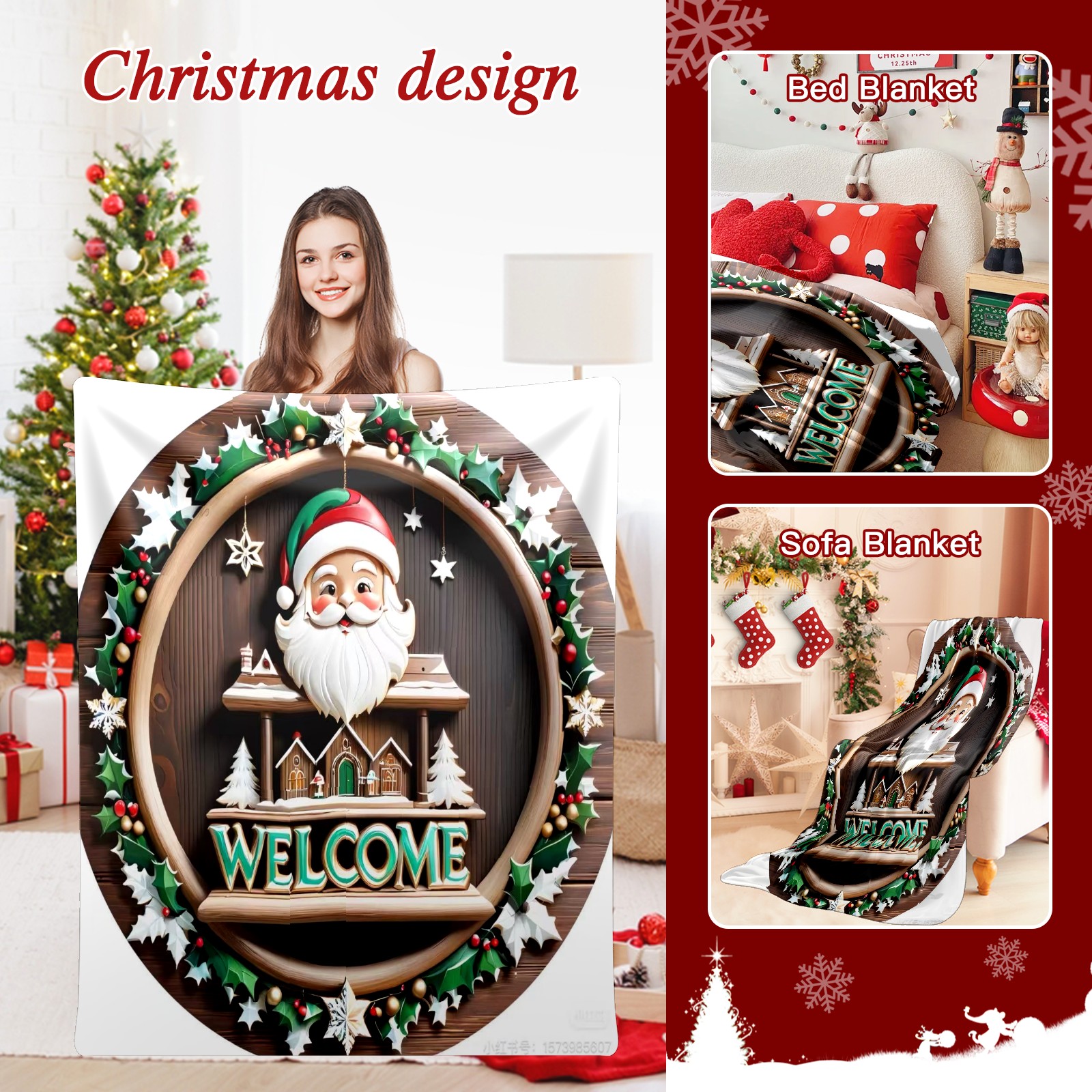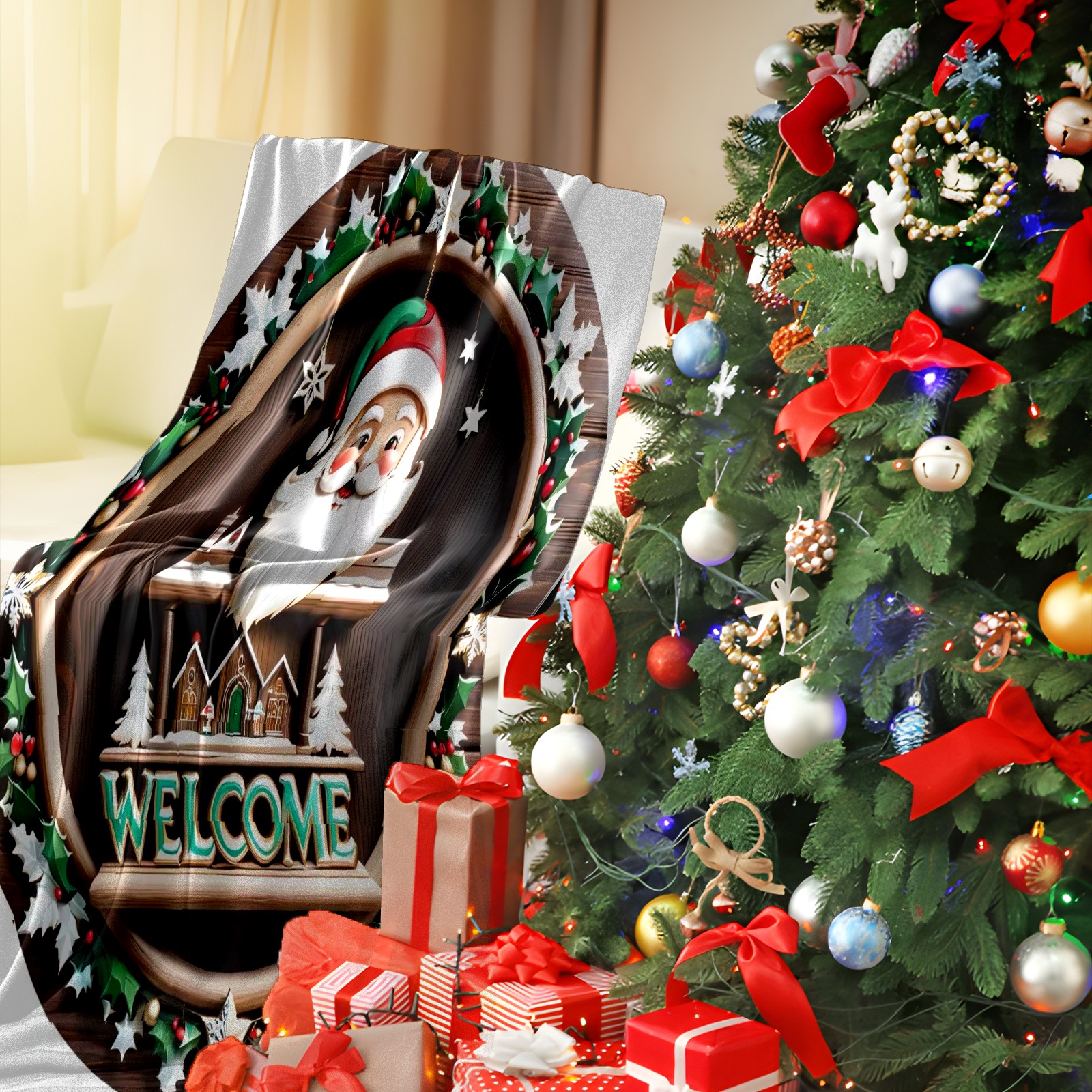 Премиальная фланелевая одеяло Santa Claus