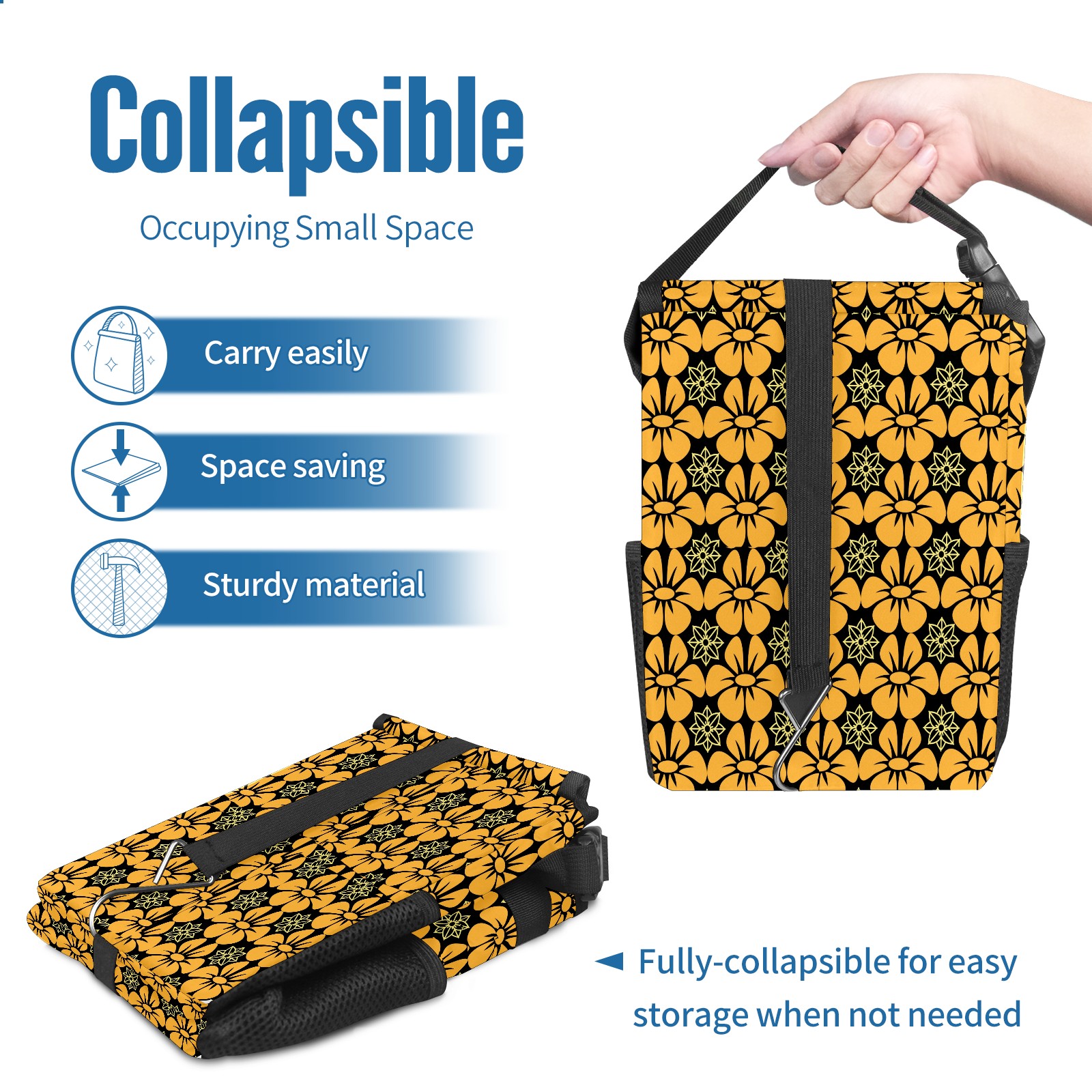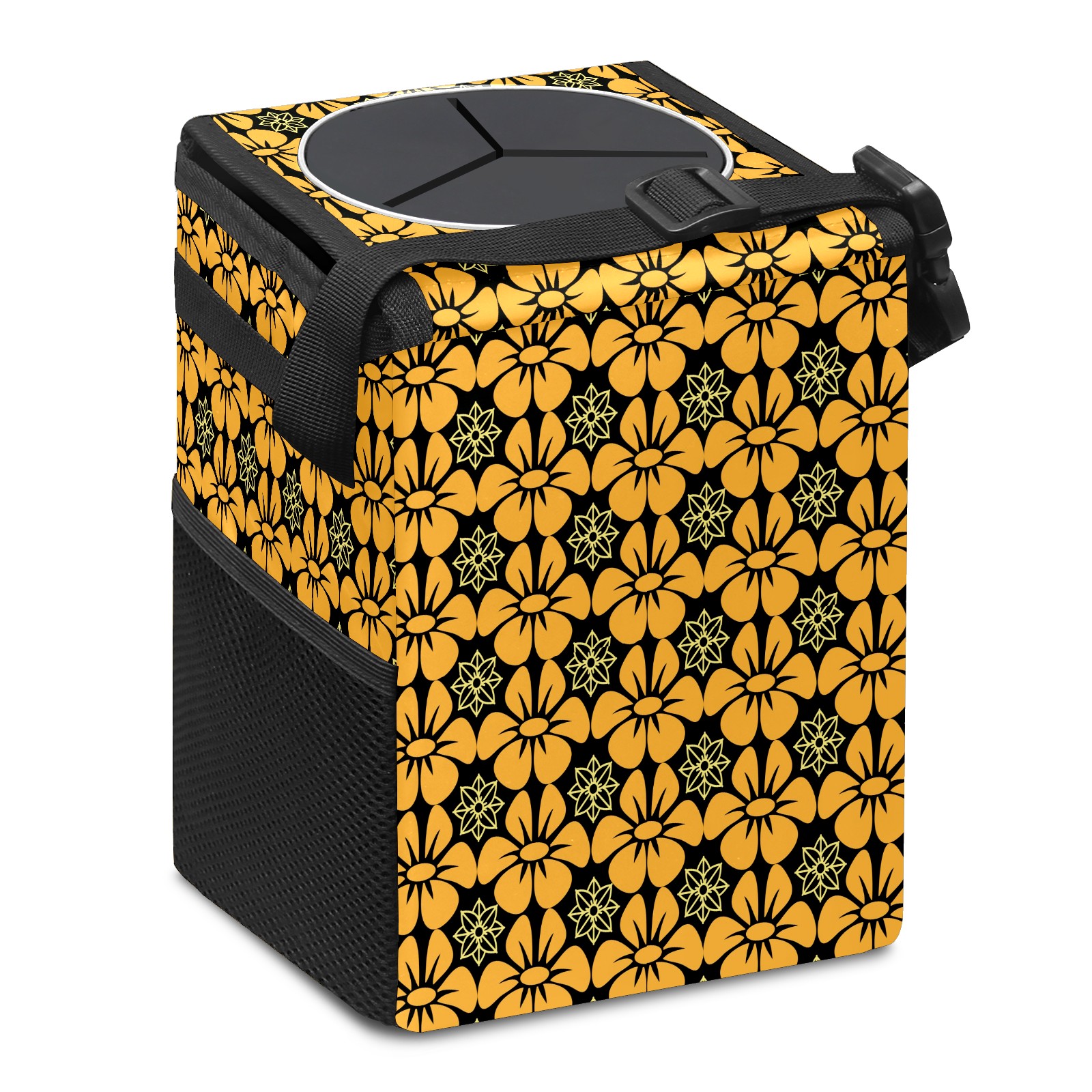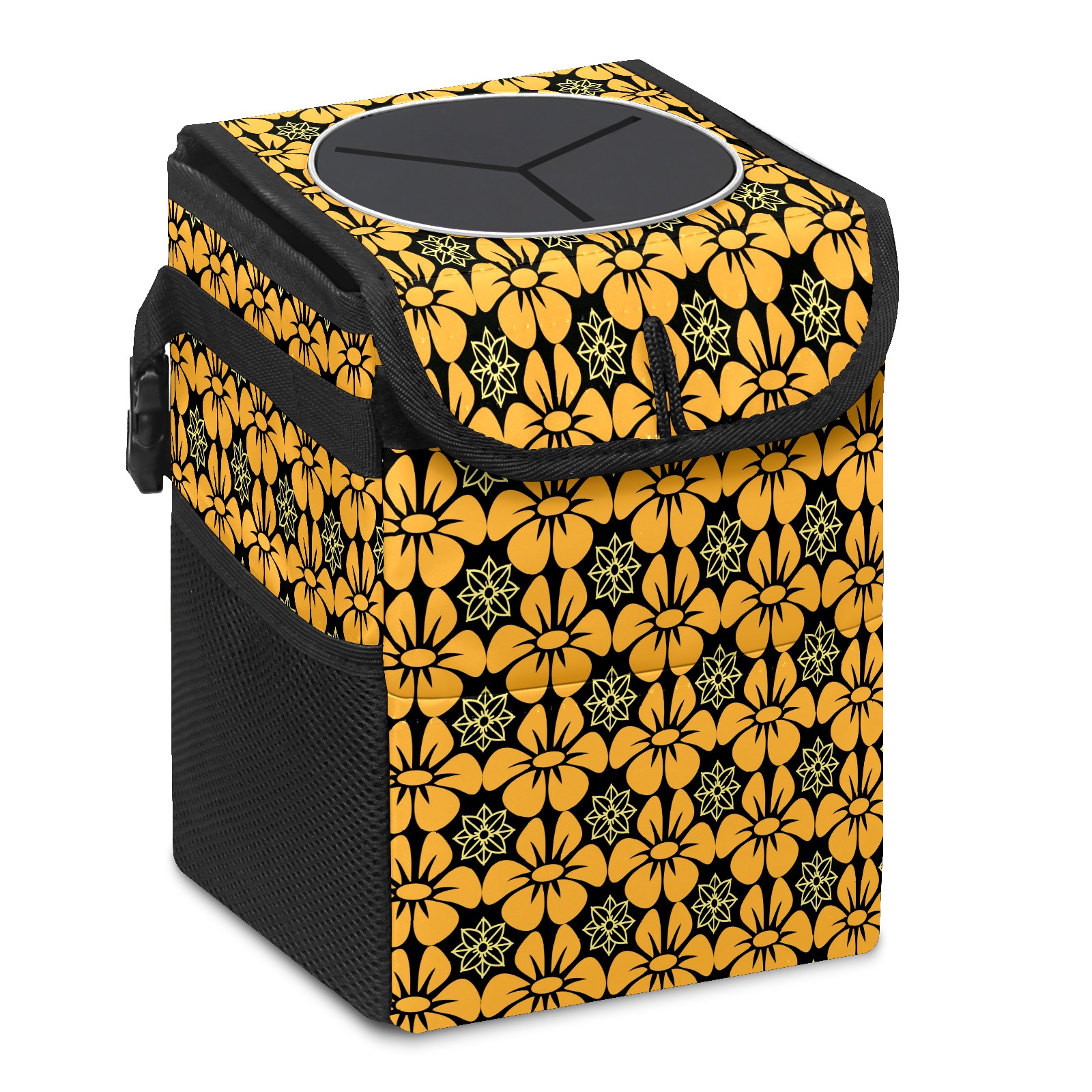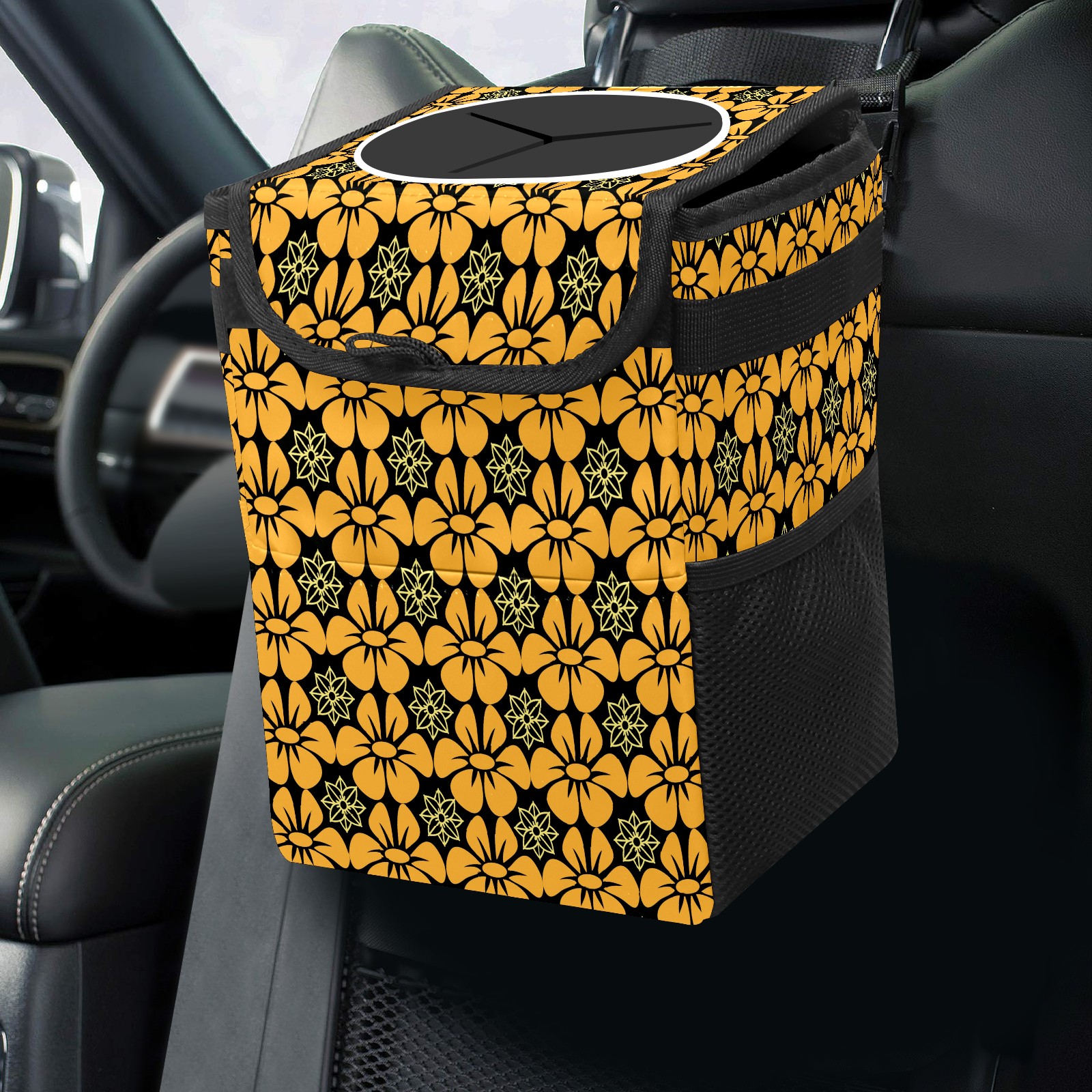 • Эта многофункциональная автомобильная мусорная корзина отличается стильным принтом, сочетающим в себе практичность и эстетику. Изготовленная из высококачественной саржевой ткани с плетеными ремнями, она прочная, долговечная и износостойкая. Размеры корзины составляют 24×17×16 см (9,5×6,7×6,3 дюйма). Верхнее отверстие имеет прорезиненное покрытие для удобной утилизации мусора; боковые сетчатые карманы и передний карман обеспечивают удобное хранение закусок, телефонов и других мелких предметов.
