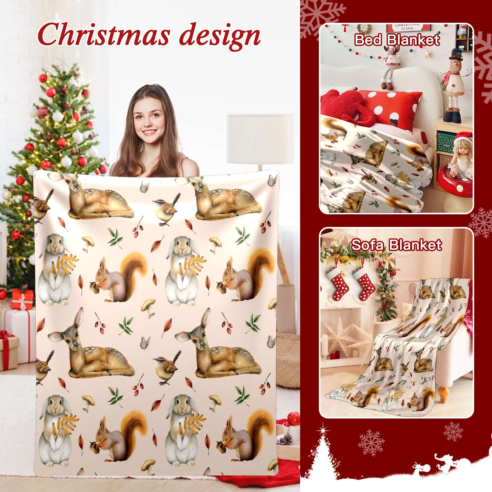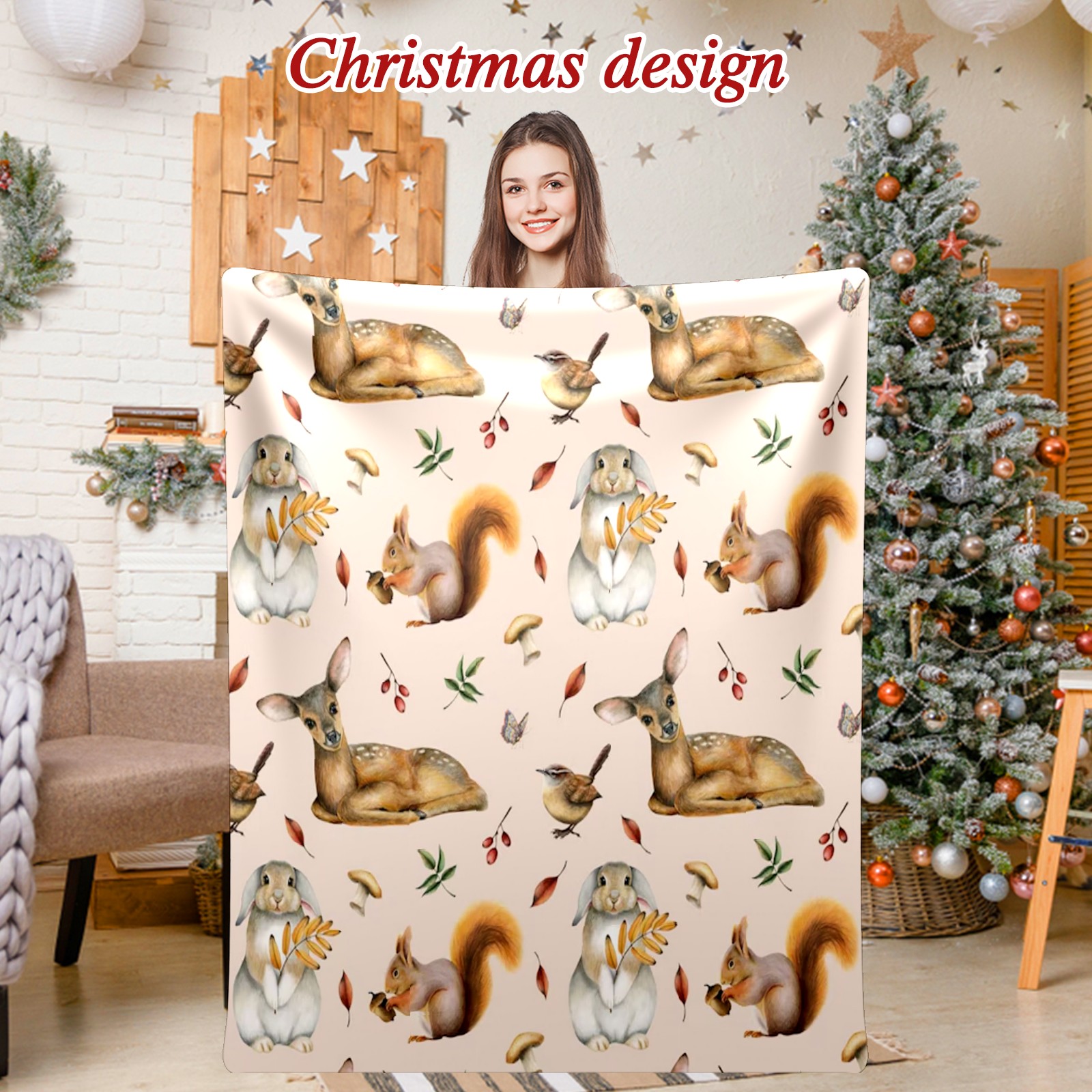 Премиальная фланелевая одеяло Yellow Deer Rabbit Animals