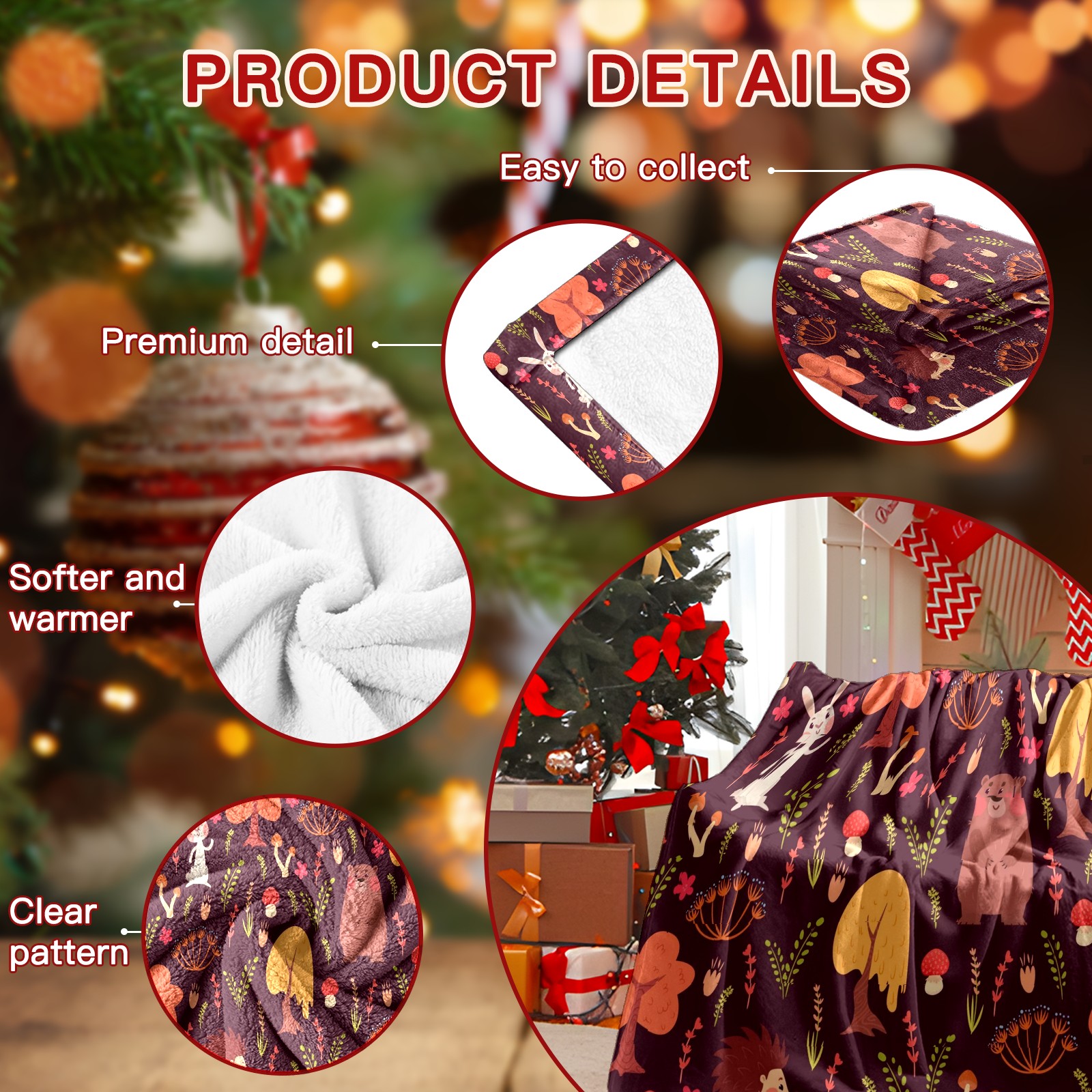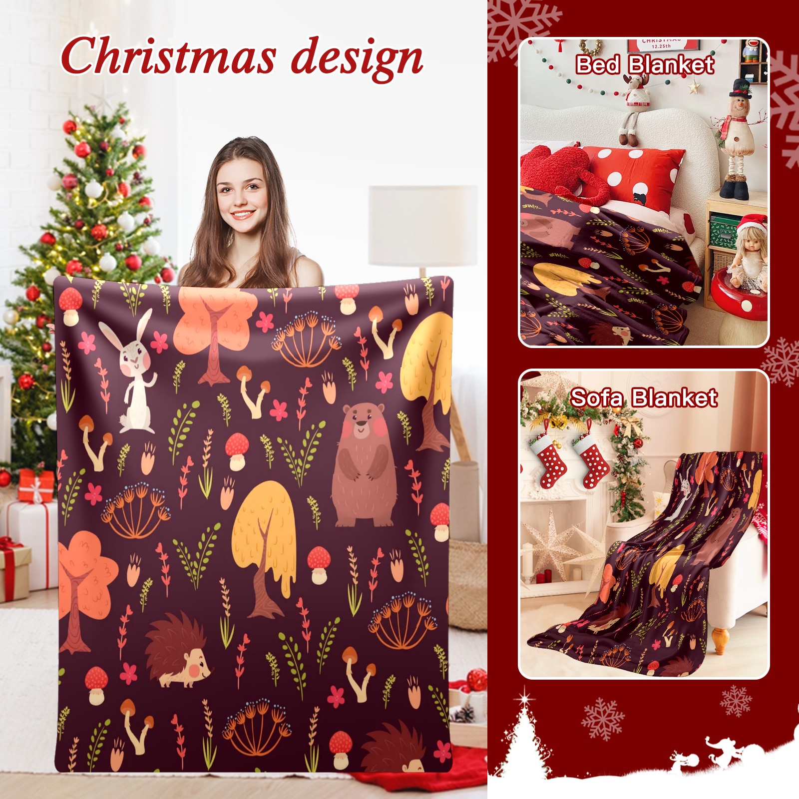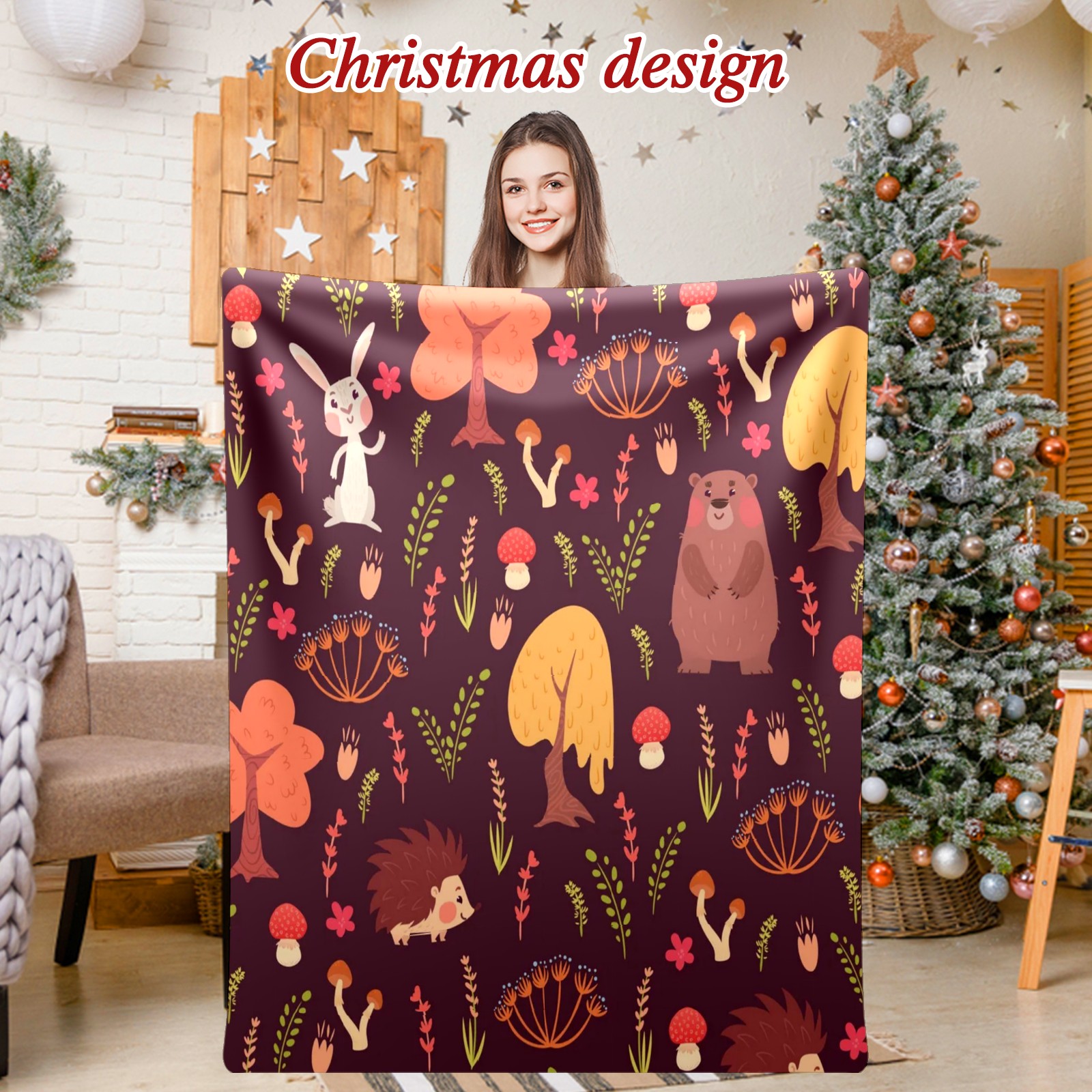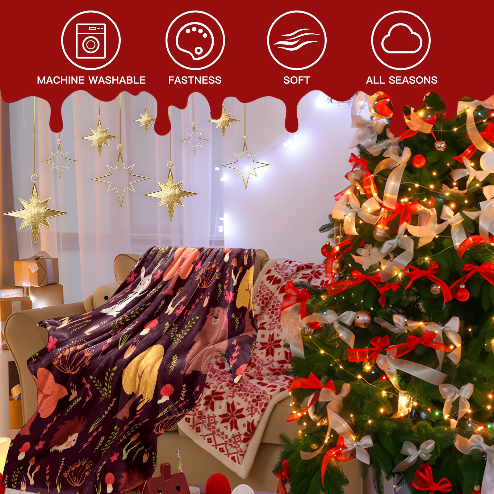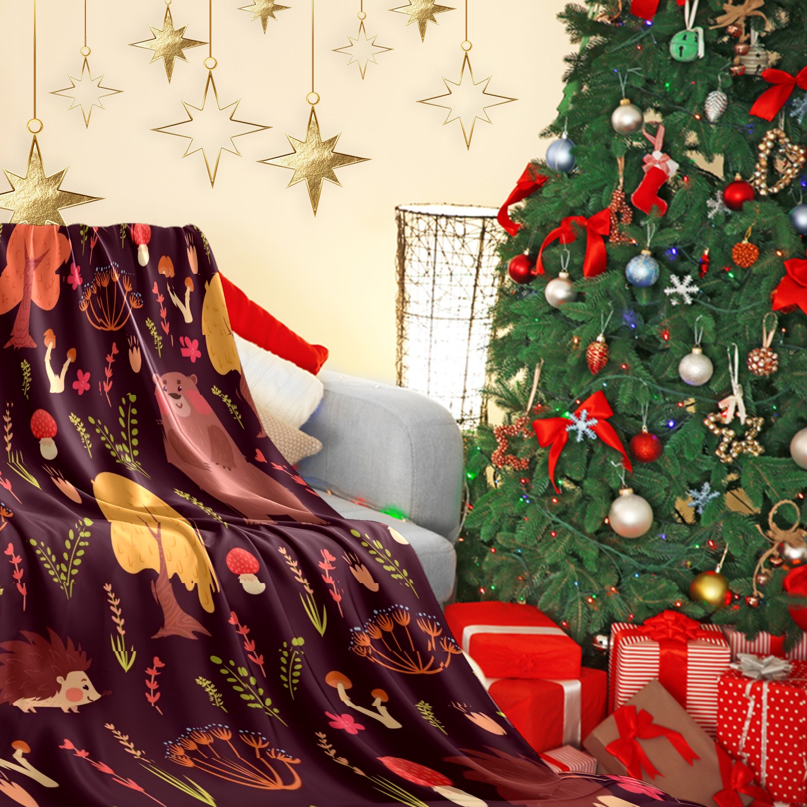 Премиальная фланелевая одеяло Red Forest Animals