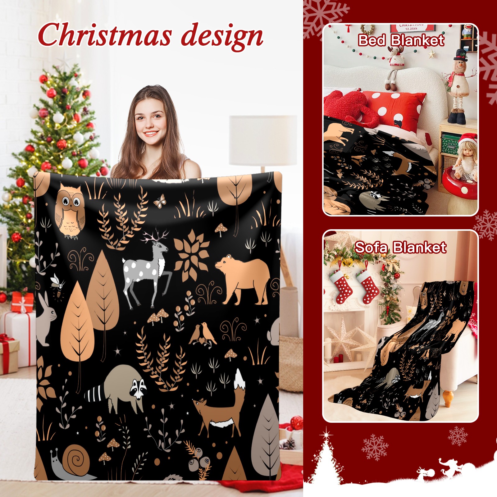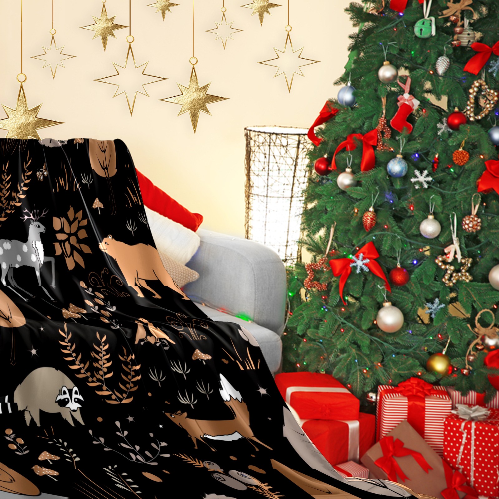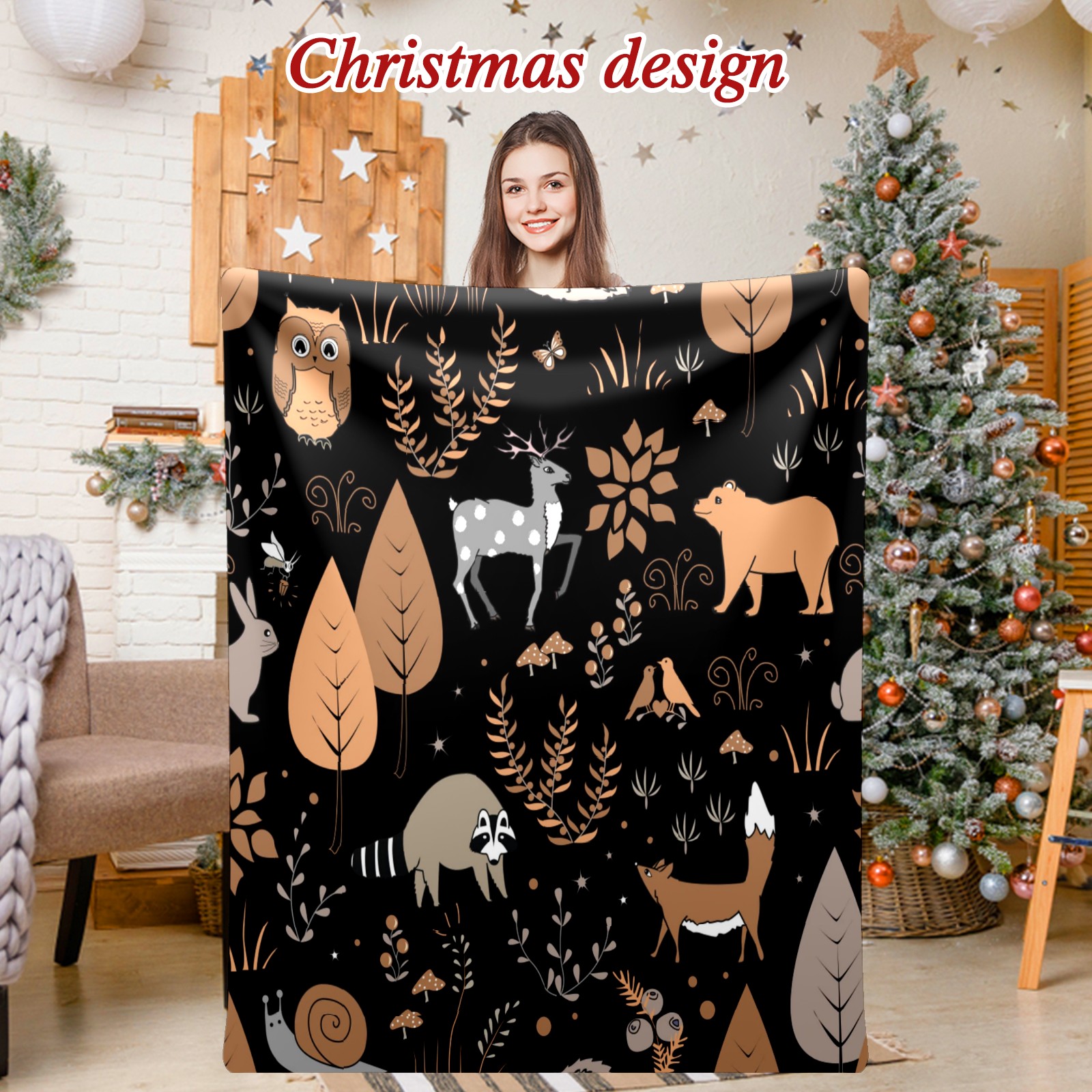 Премиальная фланелевая одеяло Black Brown Animals