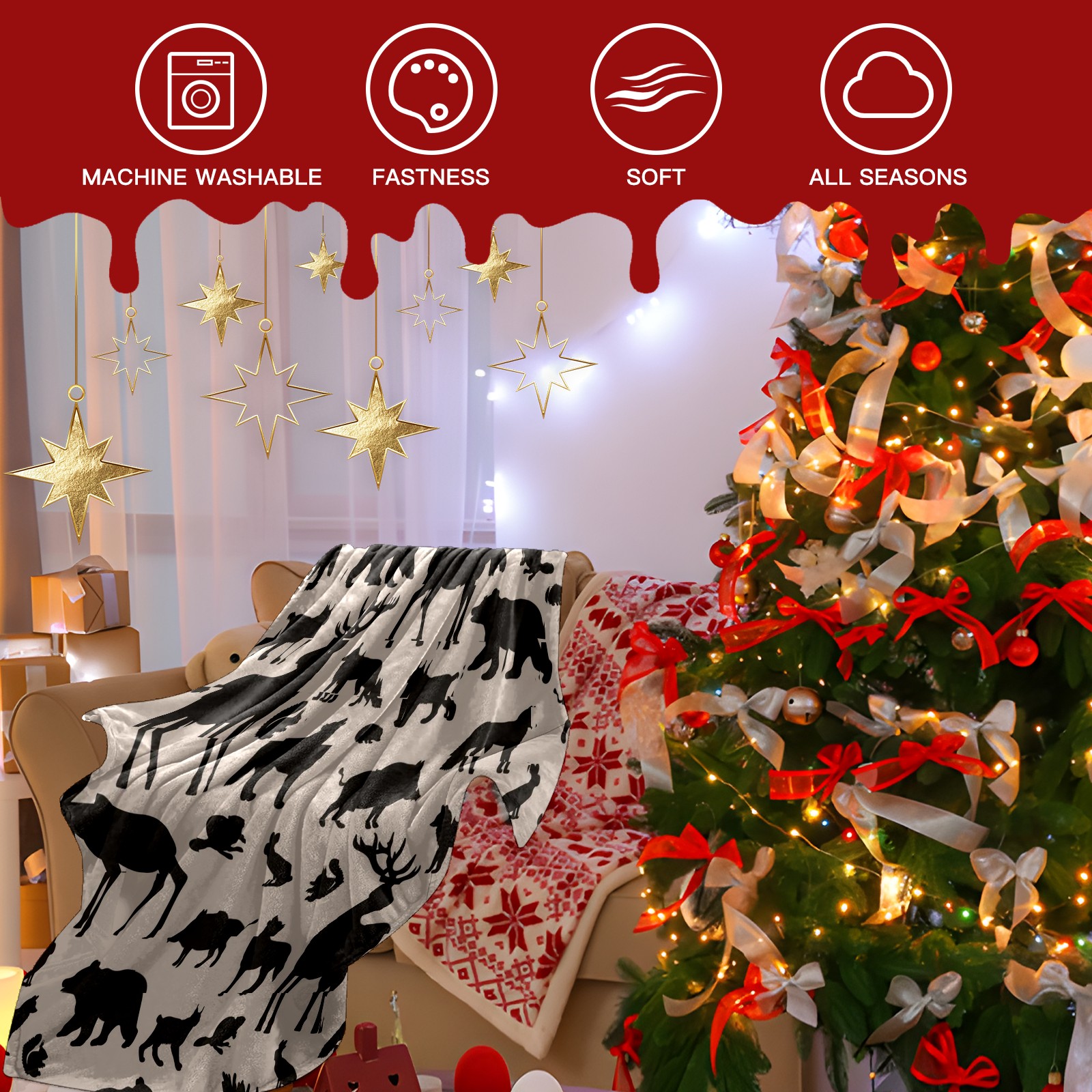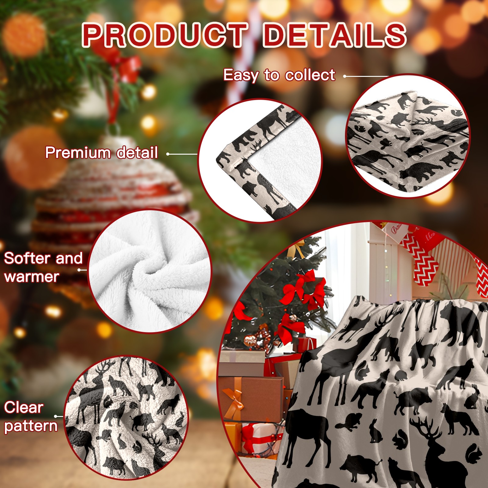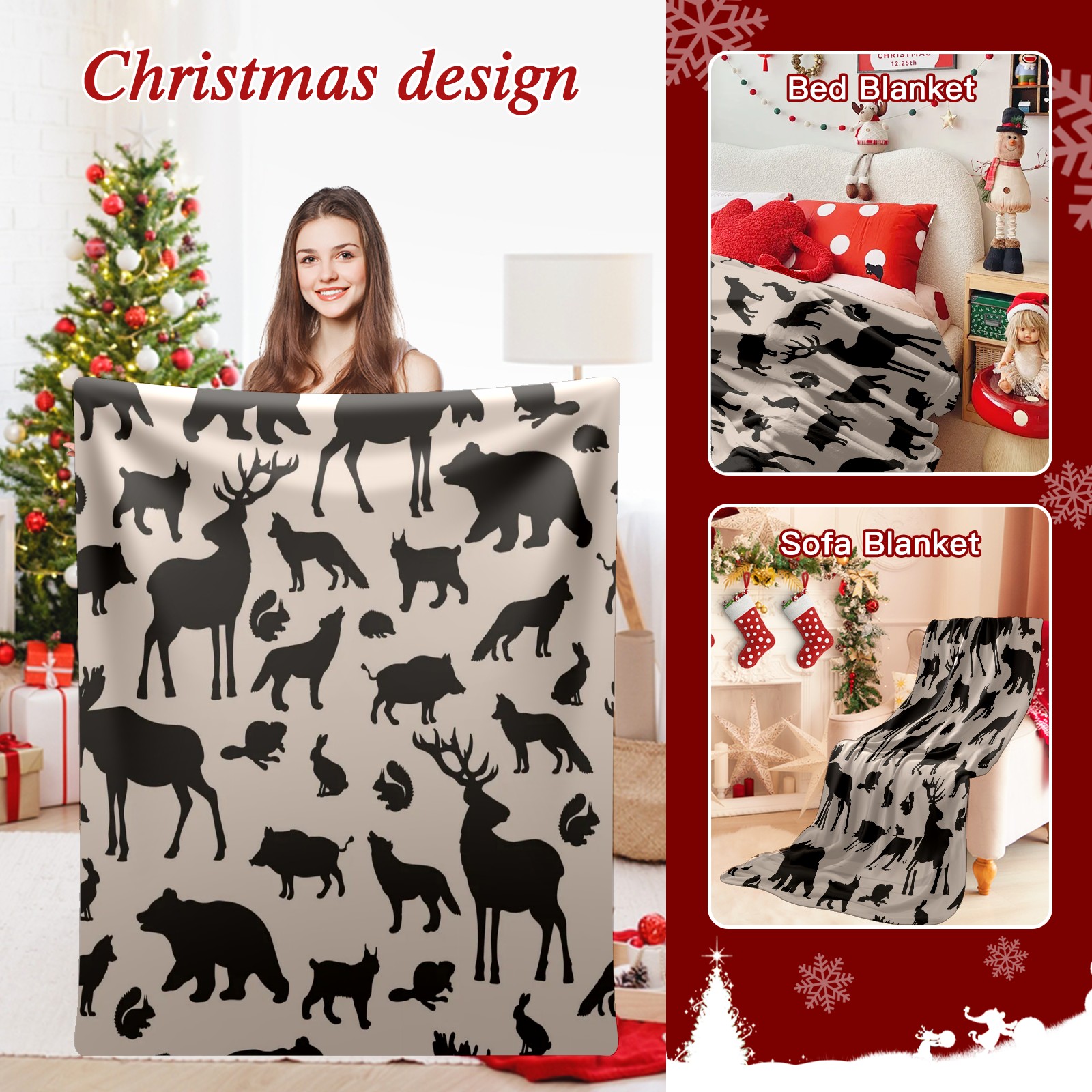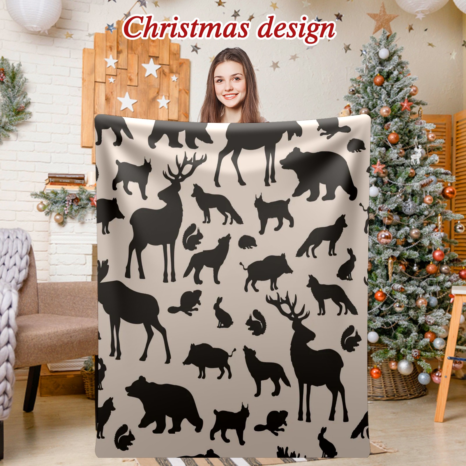 Премиальная фланелевая одеяло Black Forest Animals