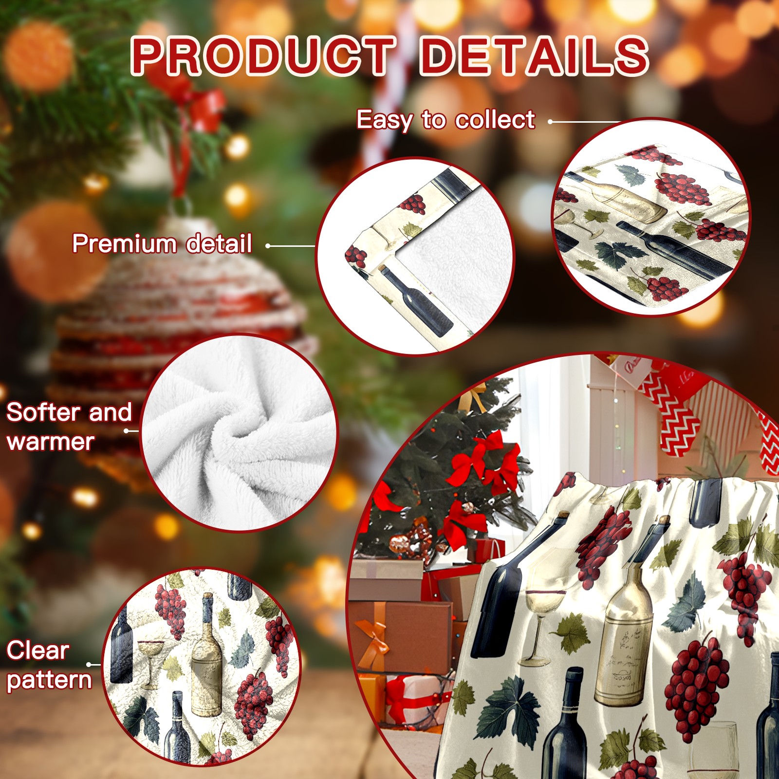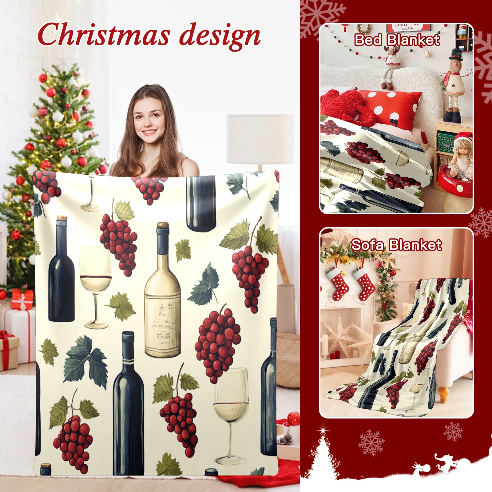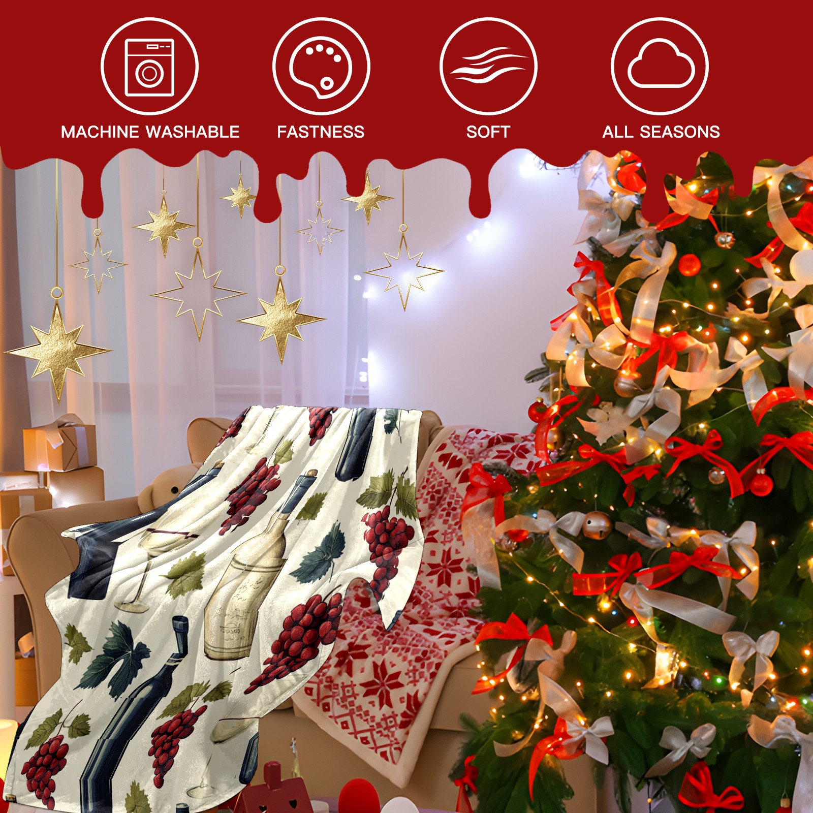 Премиальная фланелевая одеяло Wine Glass