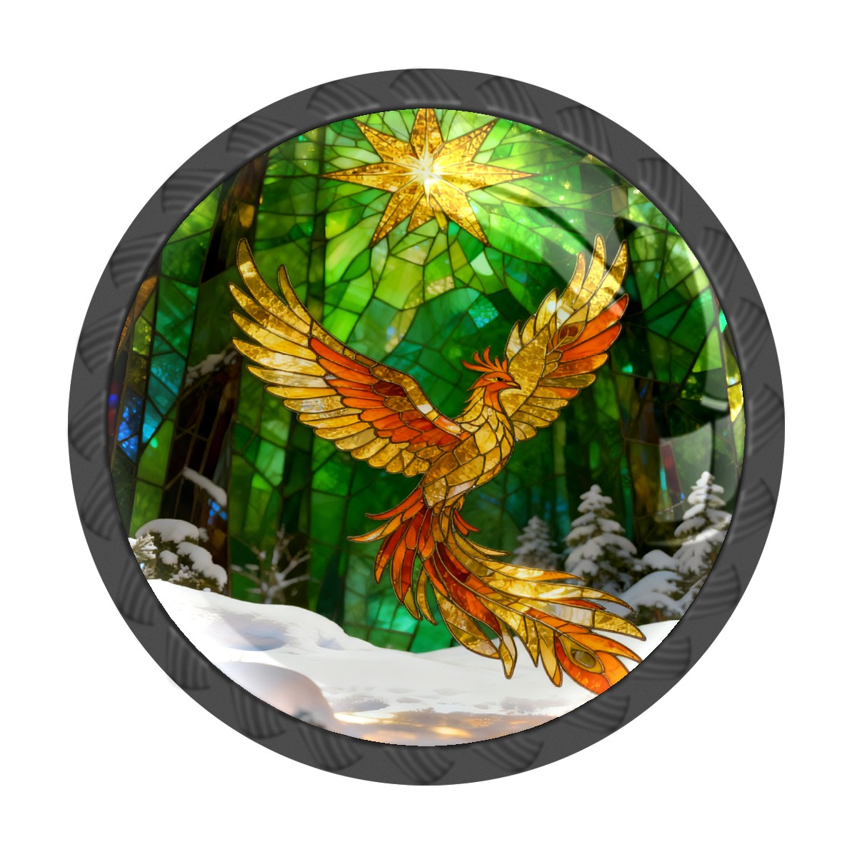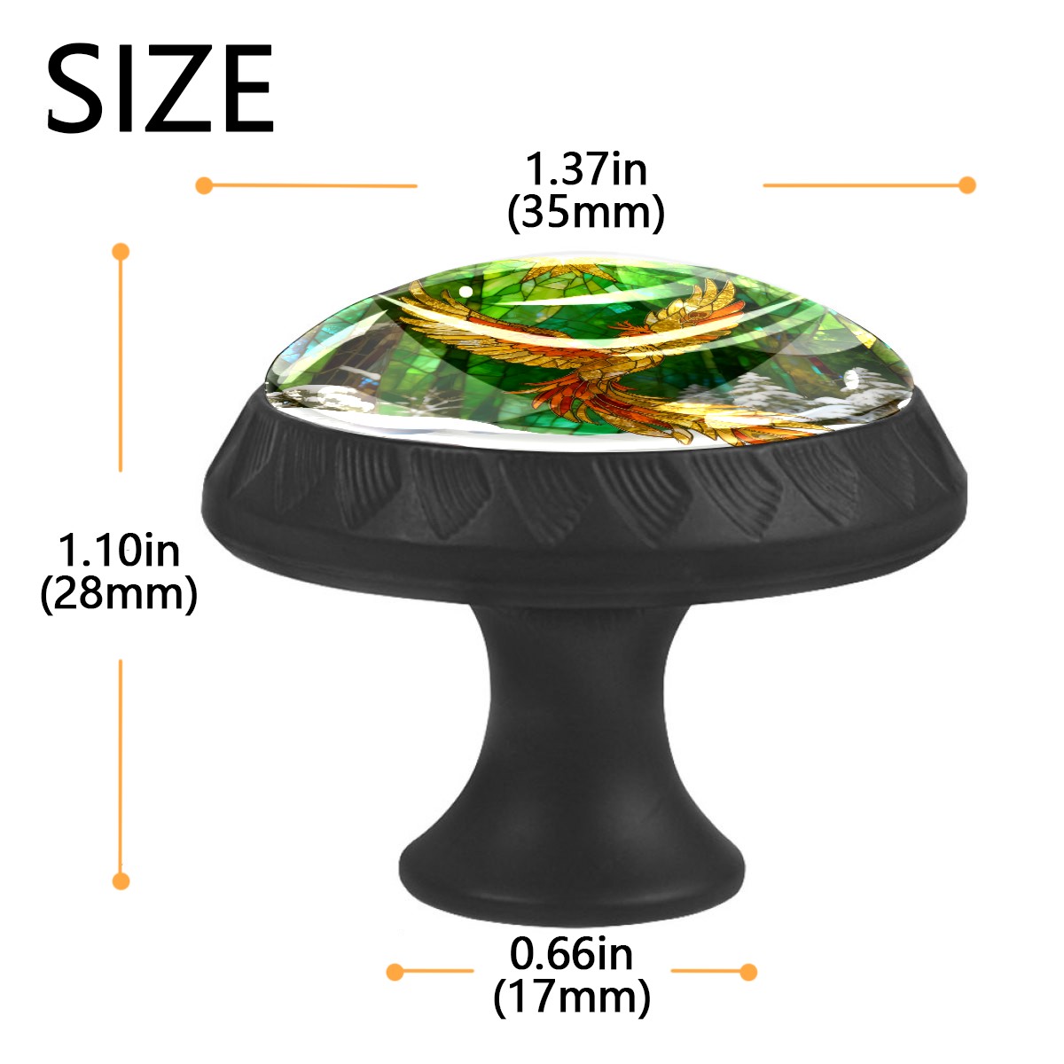 4 Pack Cabinet Knobs Phoenix Green Drawer Pulls Crystal Glass Round Knobs Handles for Dressers Drawer Bathroom Kitchen Cupboards Wardrobes Hardware Furniture Knobs