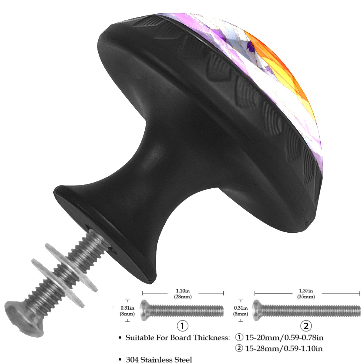 • <p>Decorative Drawer Knobs Pulls Cabinet&nbsp;Handles</p> <p>Package Contents:</p> <p>4 x Cabinet&nbsp; Handles</p> <p>4 x 1.1’’ &nbsp; M ounting Screws &nbsp;</p> <p>4 x 1.37’’ &nbsp;Matching Screws </p> <p>Material:</p> <p>Crafted with a crystal glass surface, combined with ABS plastic and quality materials for durability and aesthetics.</p> <p>Size:</p> <p>Each knob measures 1.37 inches in width by 1.10 inches in height, fitting most standard drawers and cabinet doors.</p> <p>Screw Lengths:</p> <p>Available in two lengths: 1.1 inches and 1.37 inches, to accommodate various board thicknesses.</p> <p>Easy to Install:</p> <p>Each drawer knob comes with a fitting screw, making installation easy without the need for additional accessories.</p> <p>Wide Application:</p> <p>These drawer pulls are versatile for use in various home settings, including cabinets, dressers, drawers, wardrobes, nightstands, closets, bookshelves, kitchens, bathrooms, bedrooms, living rooms, and more,&nbsp; adding consistency and sophistication to your home decor.</p>