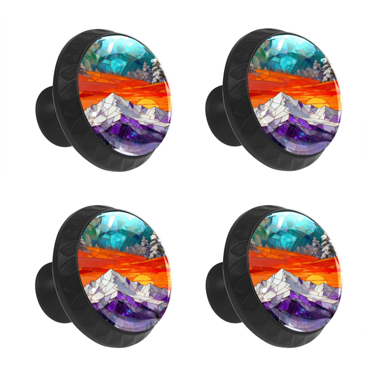 4 Pack Cabinet Knobs Colorful Mountains Drawer Pulls Crystal Glass Round Knobs Handles for Dressers Drawer Bathroom Kitchen Cupboards Wardrobes Hardware Furniture Knobs
