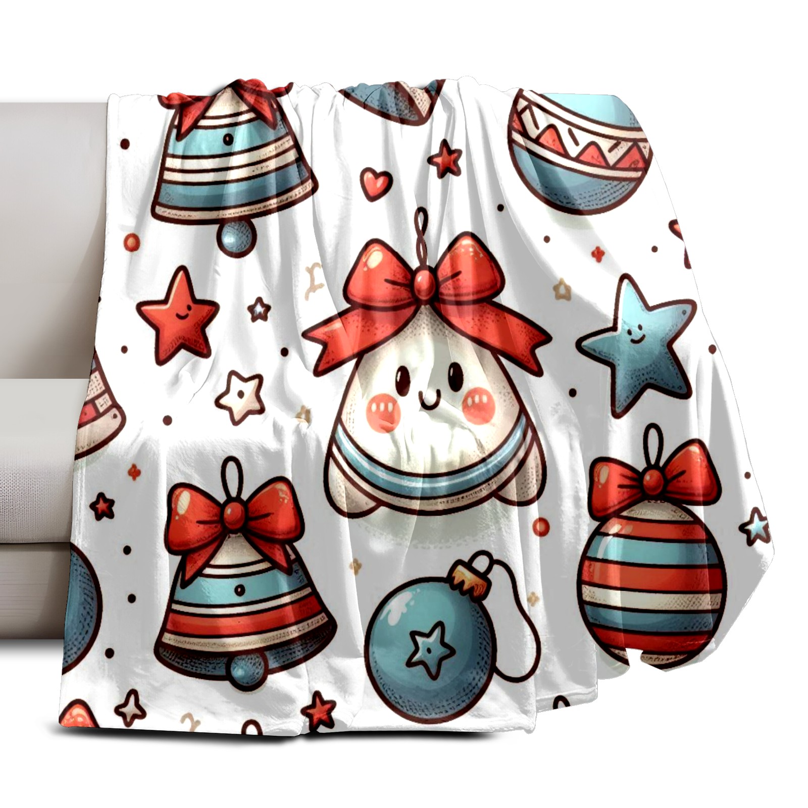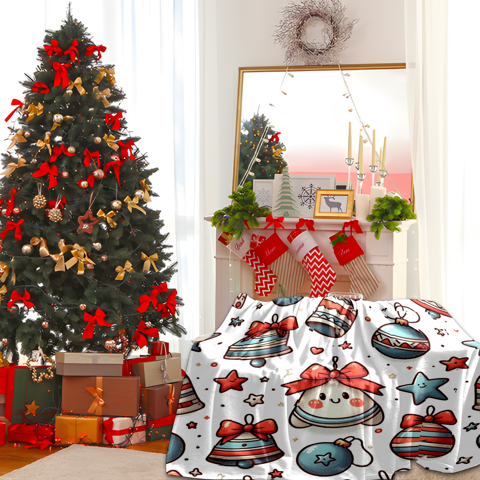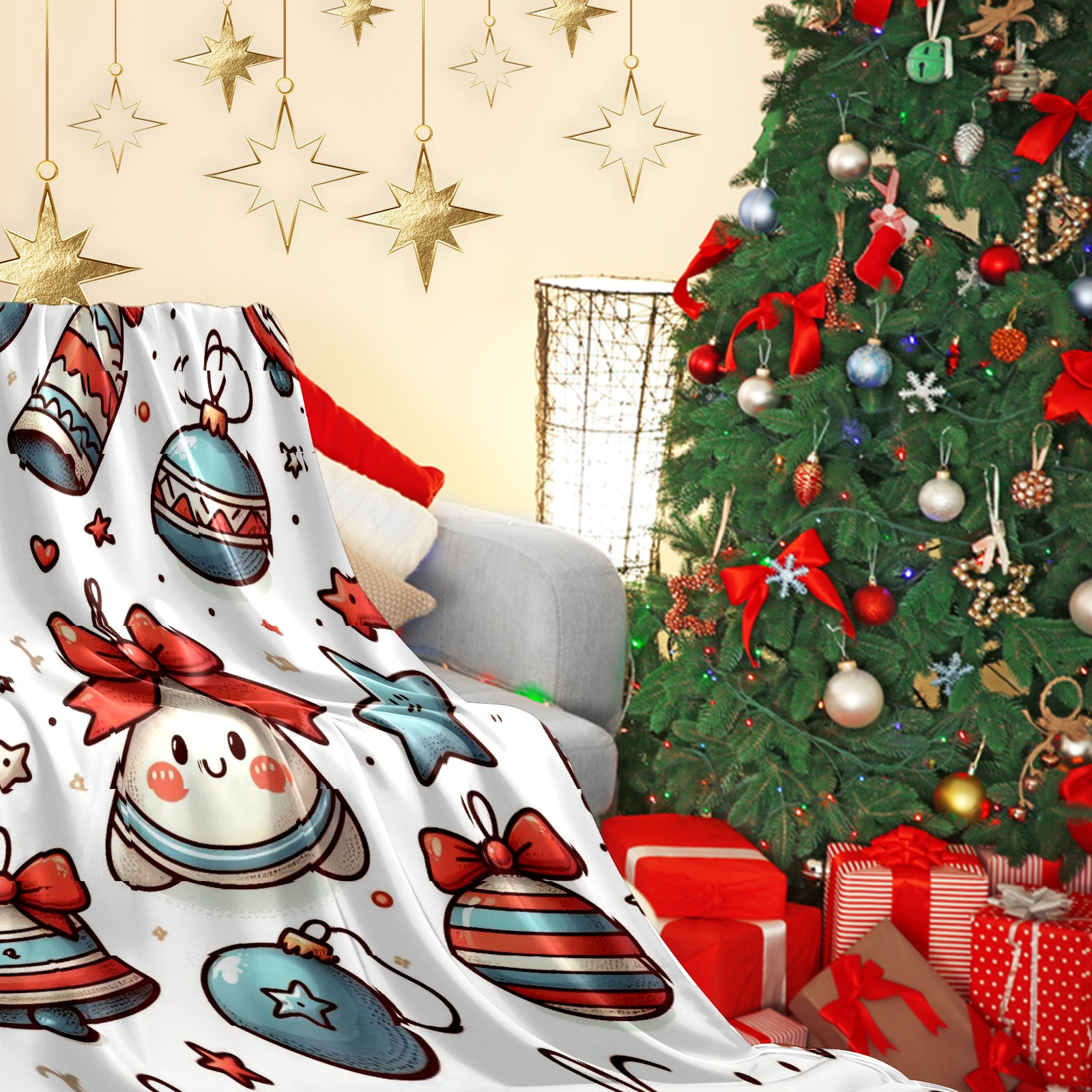 Премиальная фланелевая одеяло Red White Christmas Ornaments