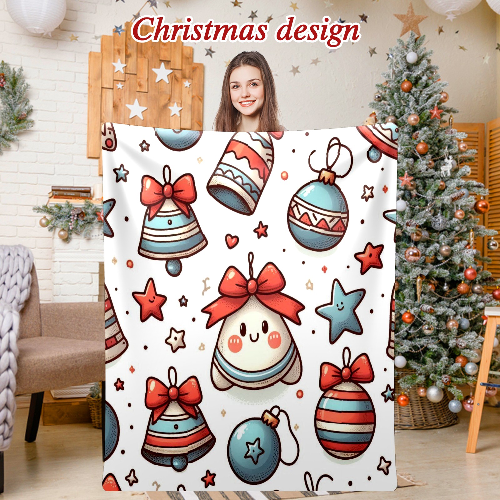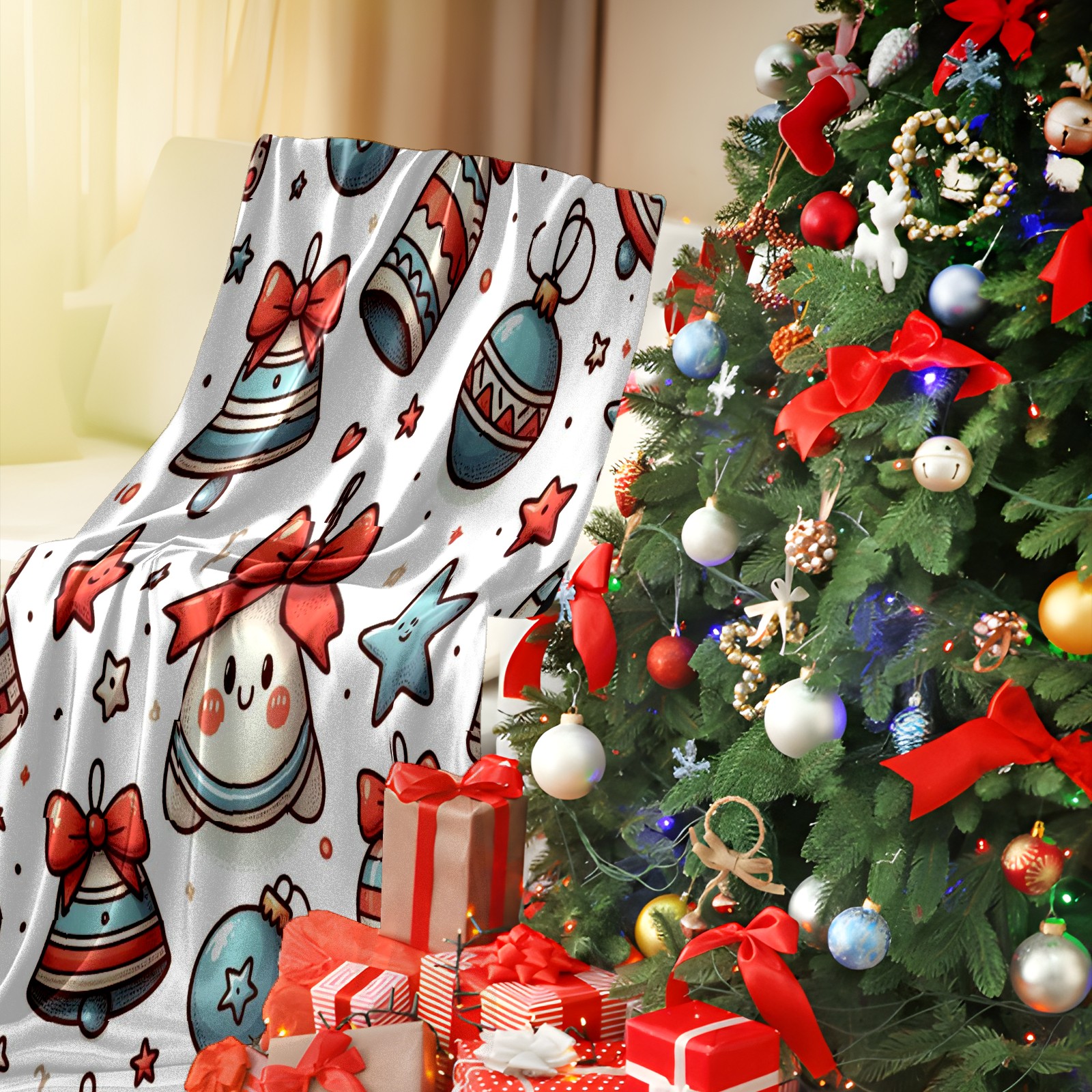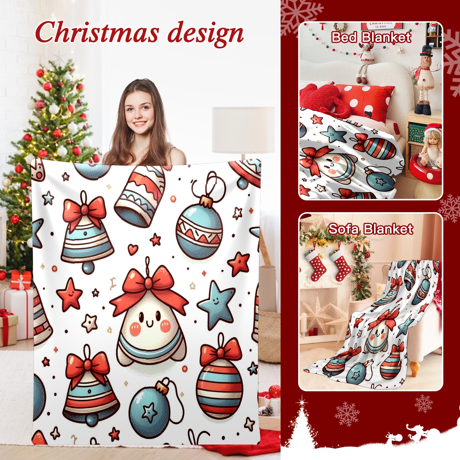 Премиальная фланелевая одеяло Red White Christmas Ornaments
