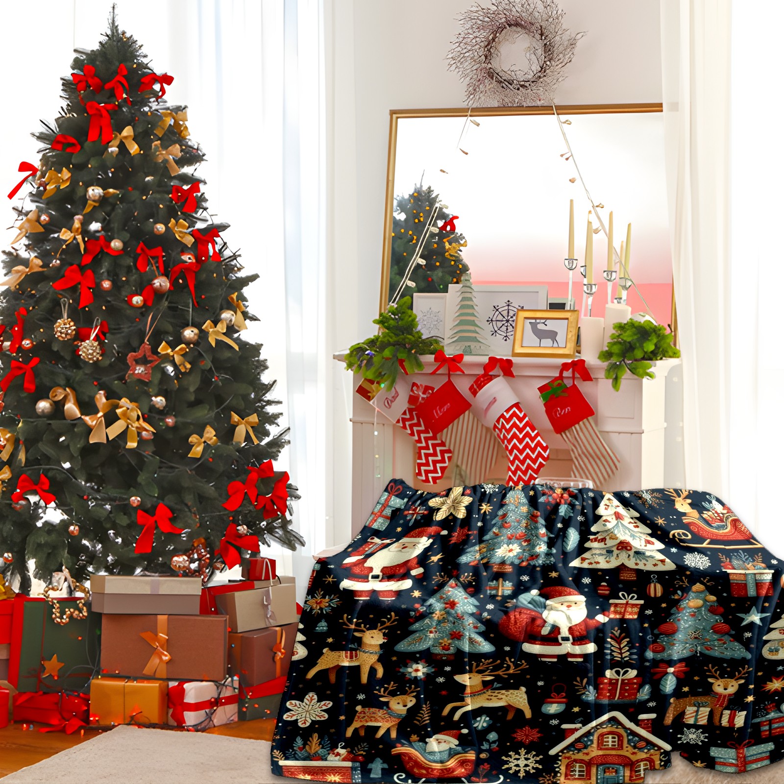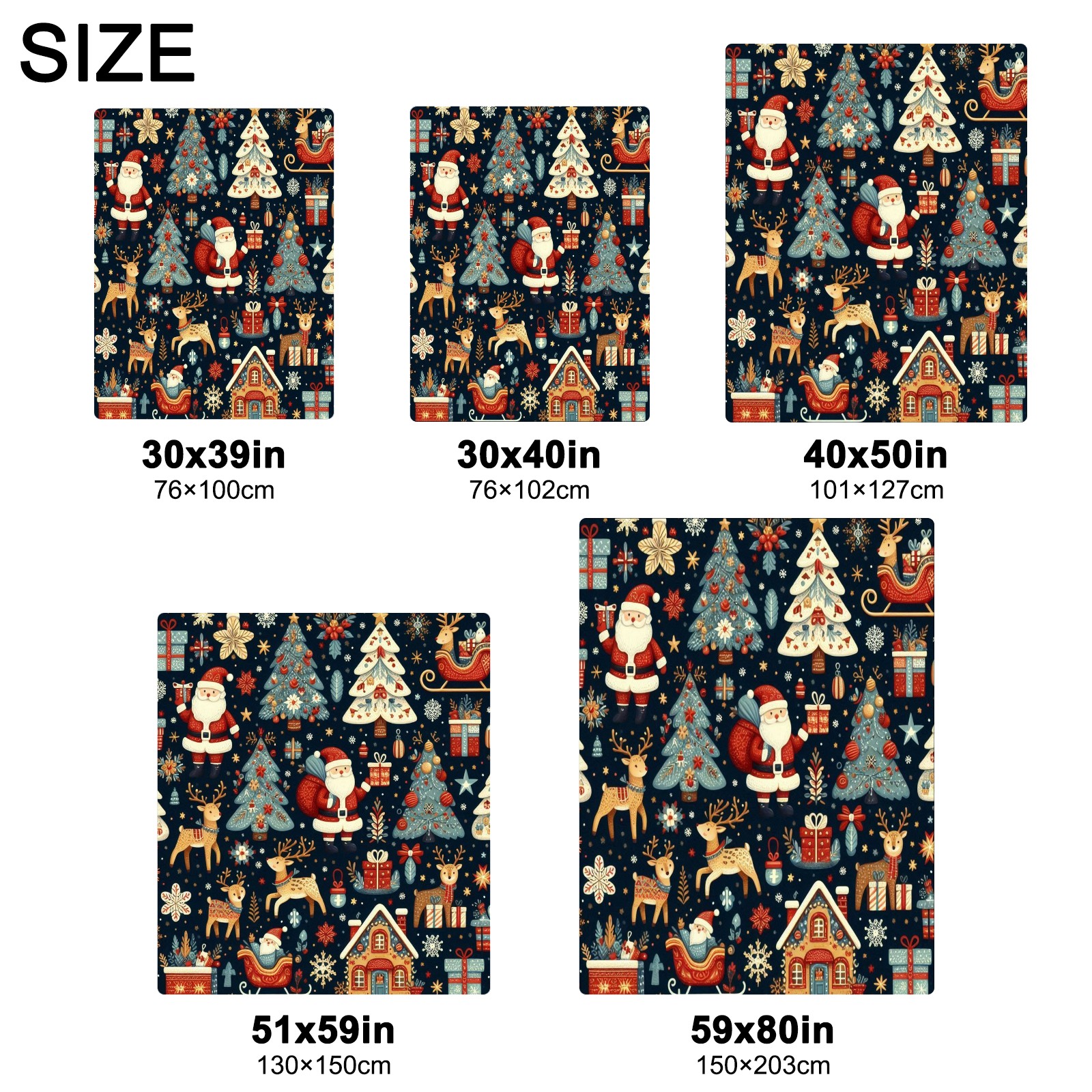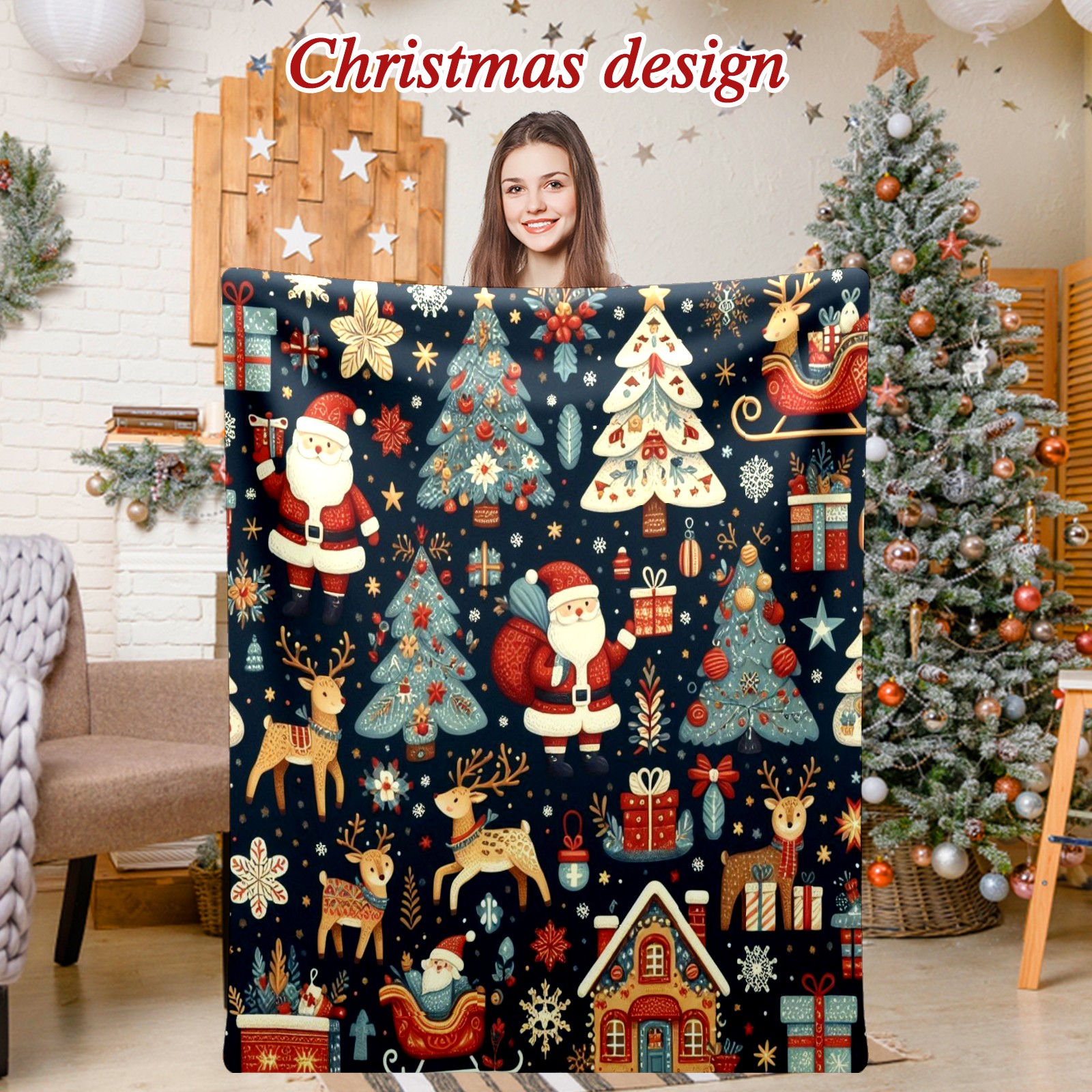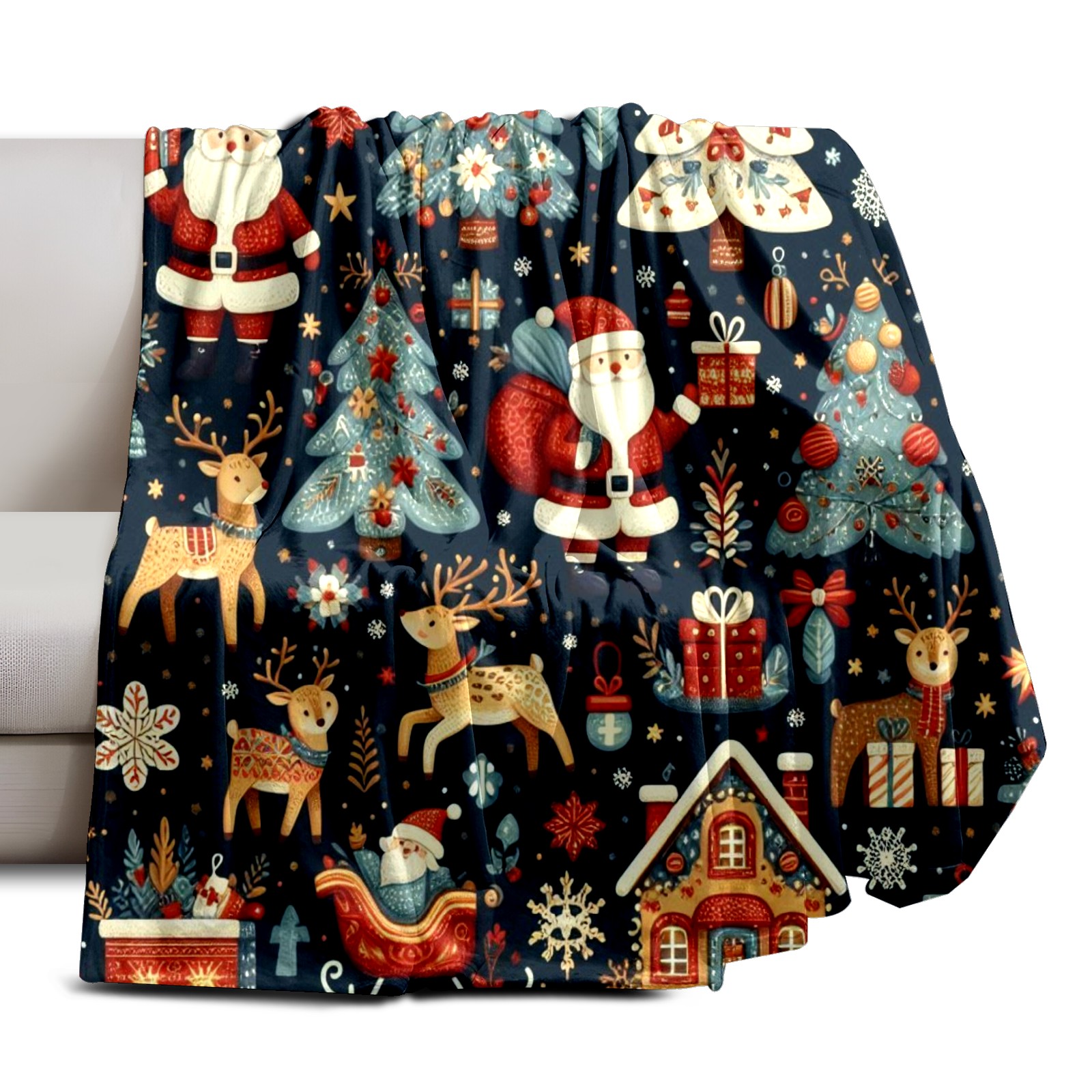Премиальная фланелевая одеяло Dark Blue Christmas Santa Scenes